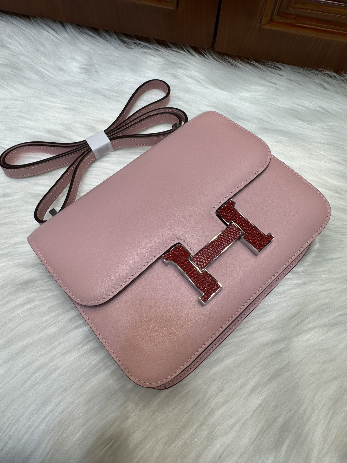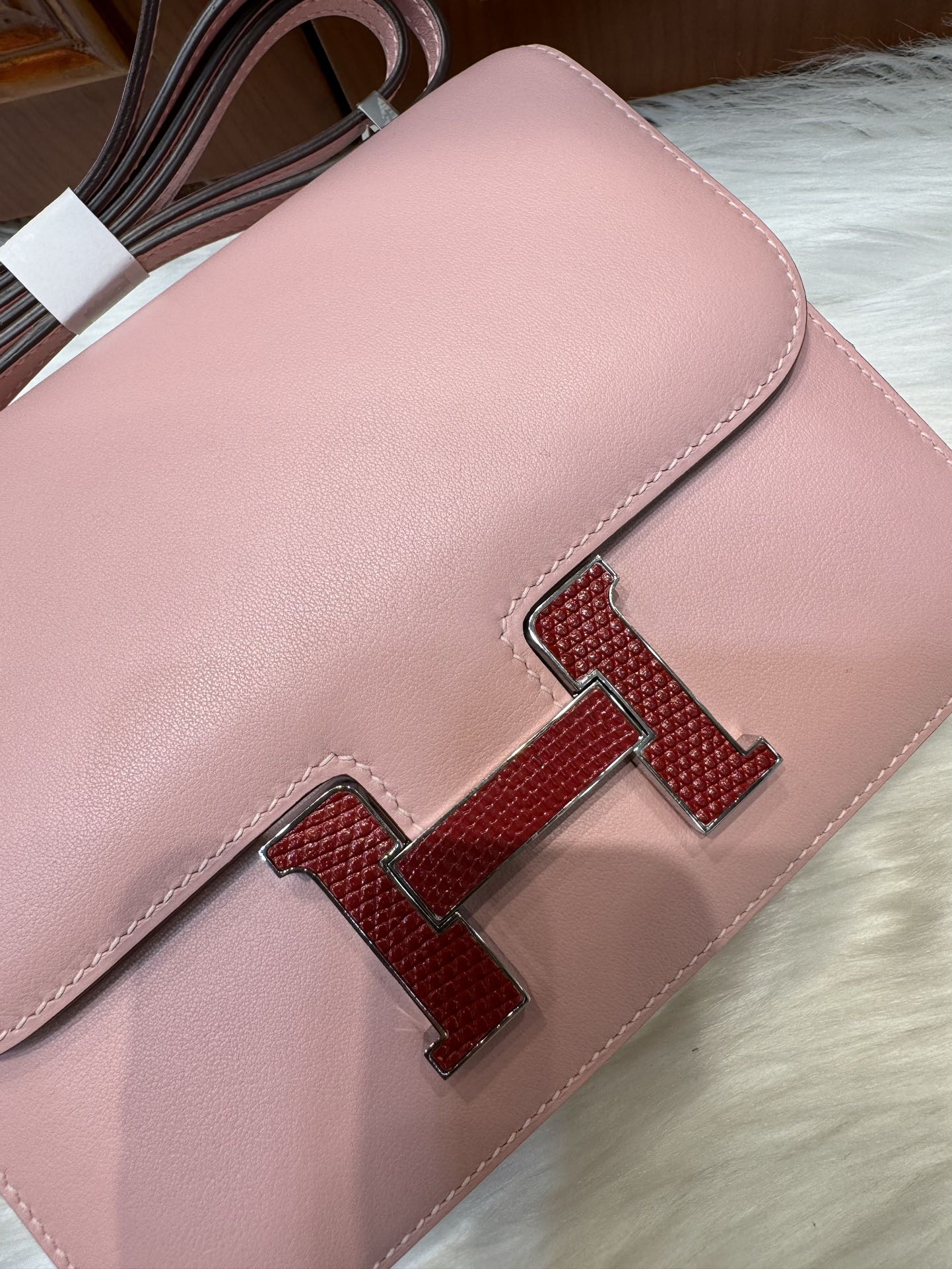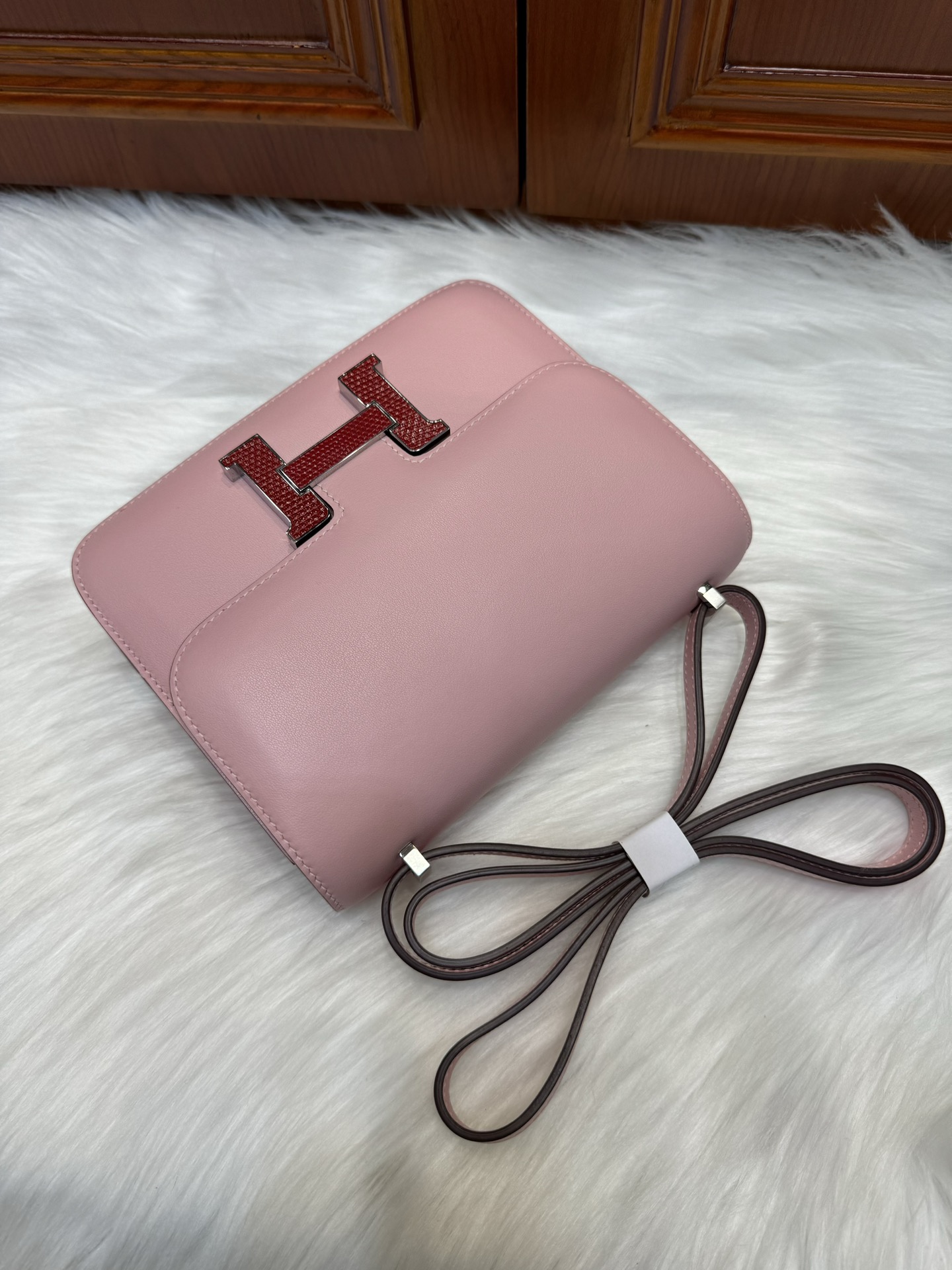 제품 이름: Constance 사이즈: 19*15*4 가죽 종류: Swift 색상: Rose Sakura