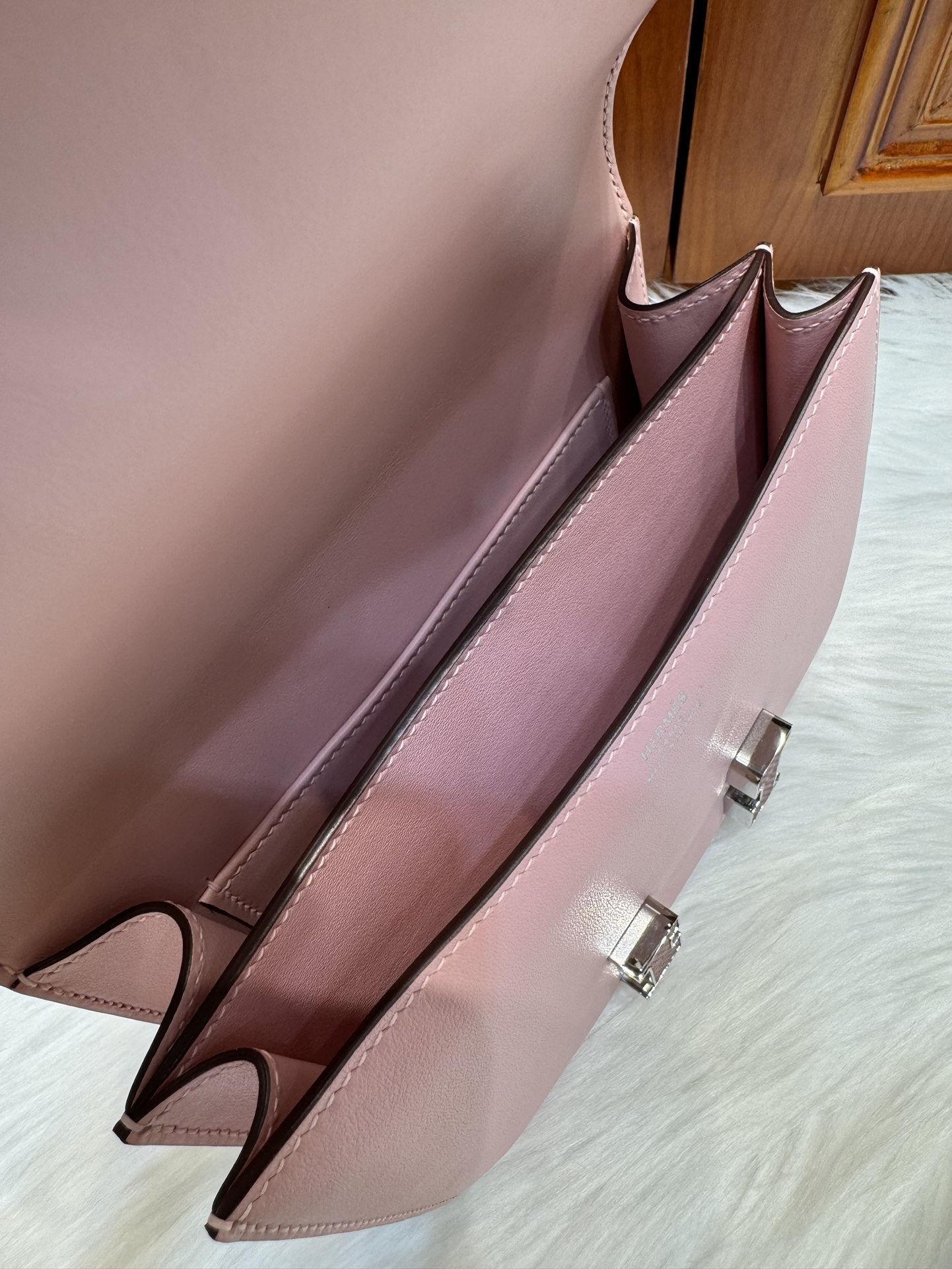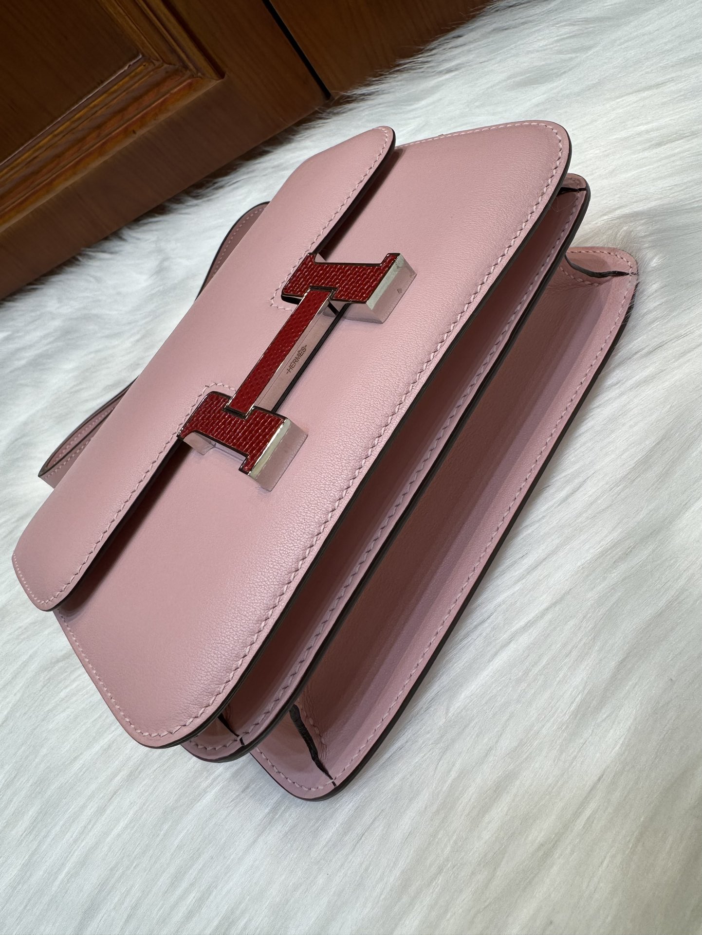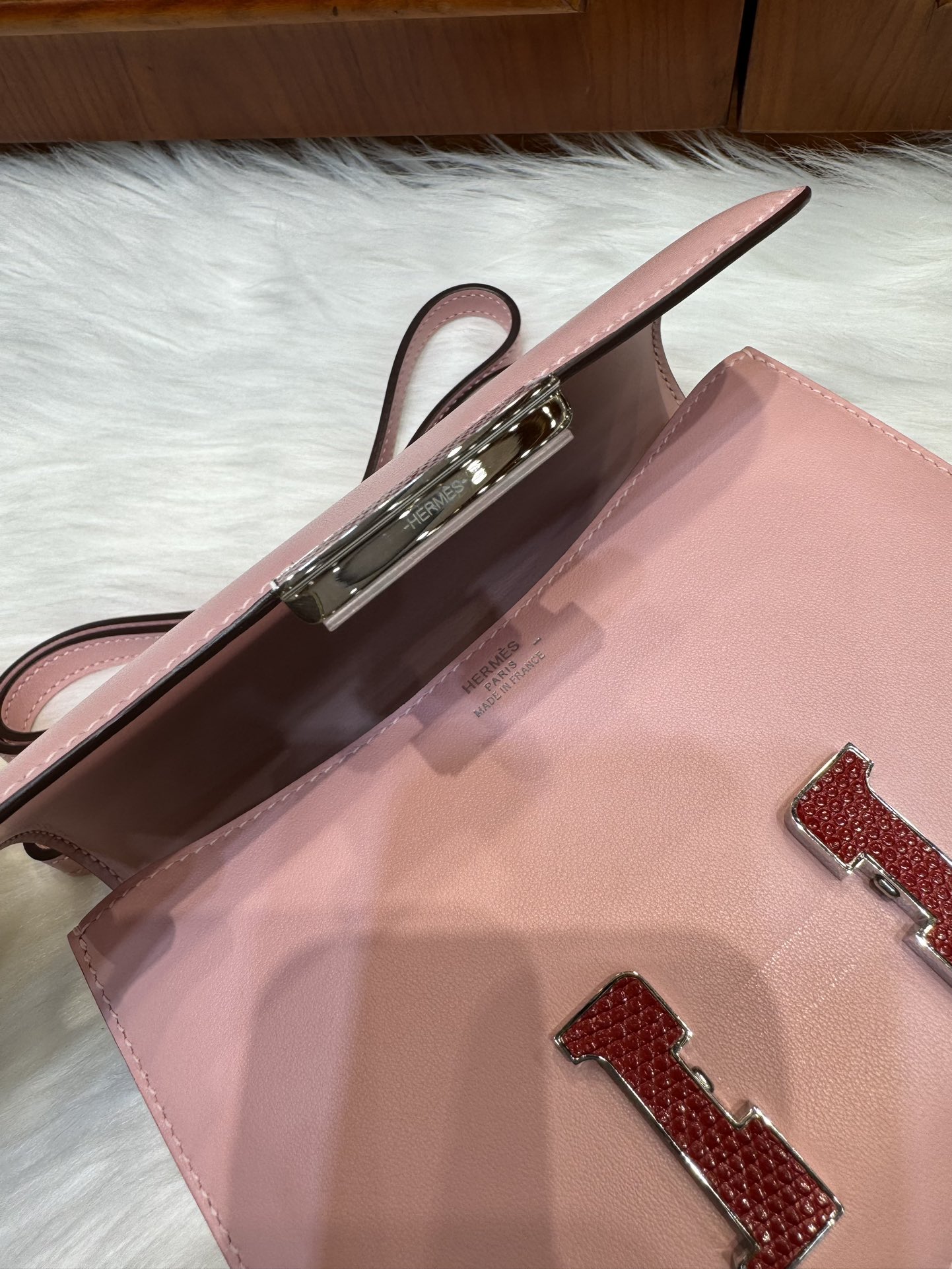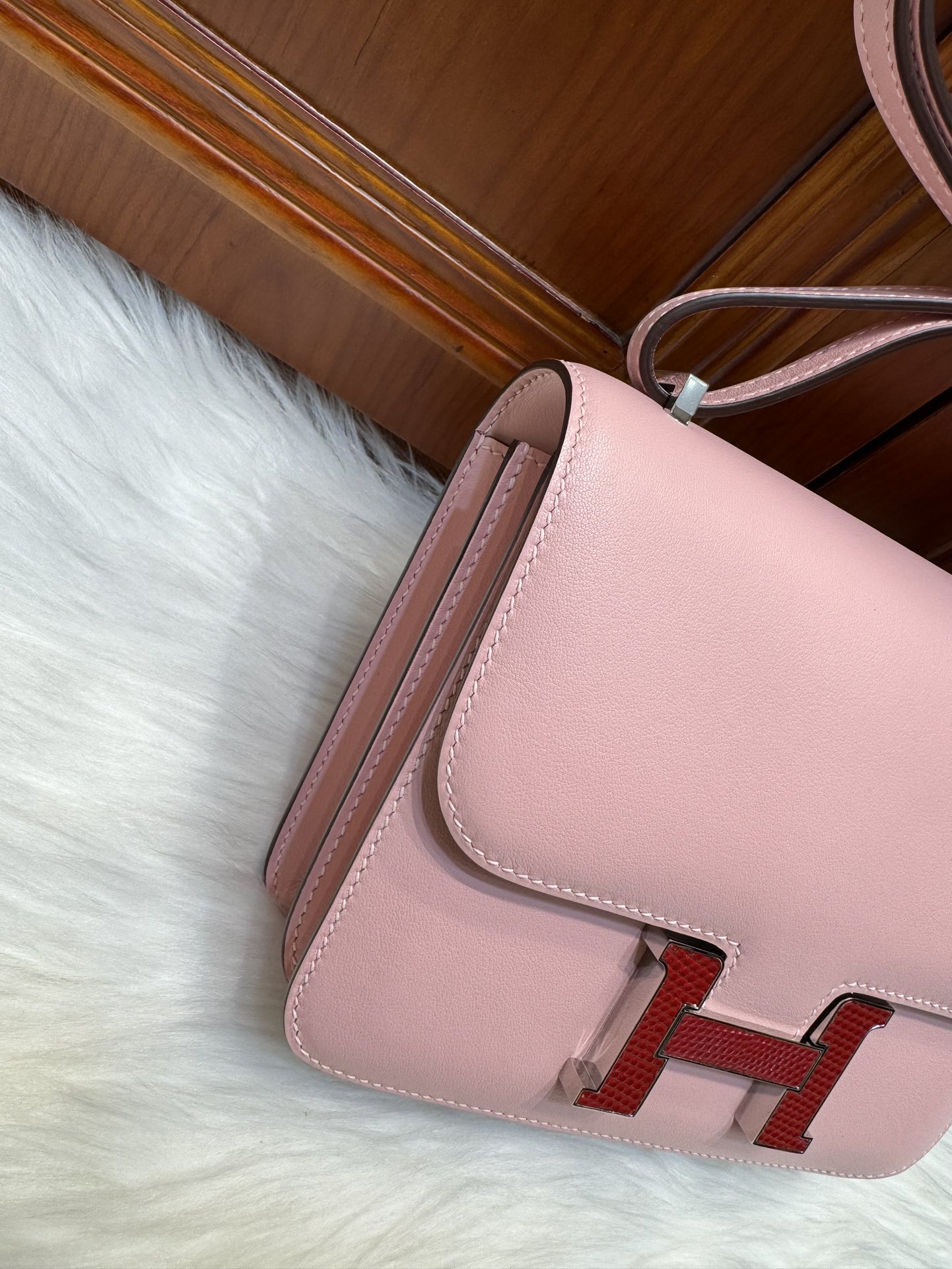 제품 이름: Constance 사이즈: 19*15*4 가죽 종류: Swift 색상: Rose Sakura