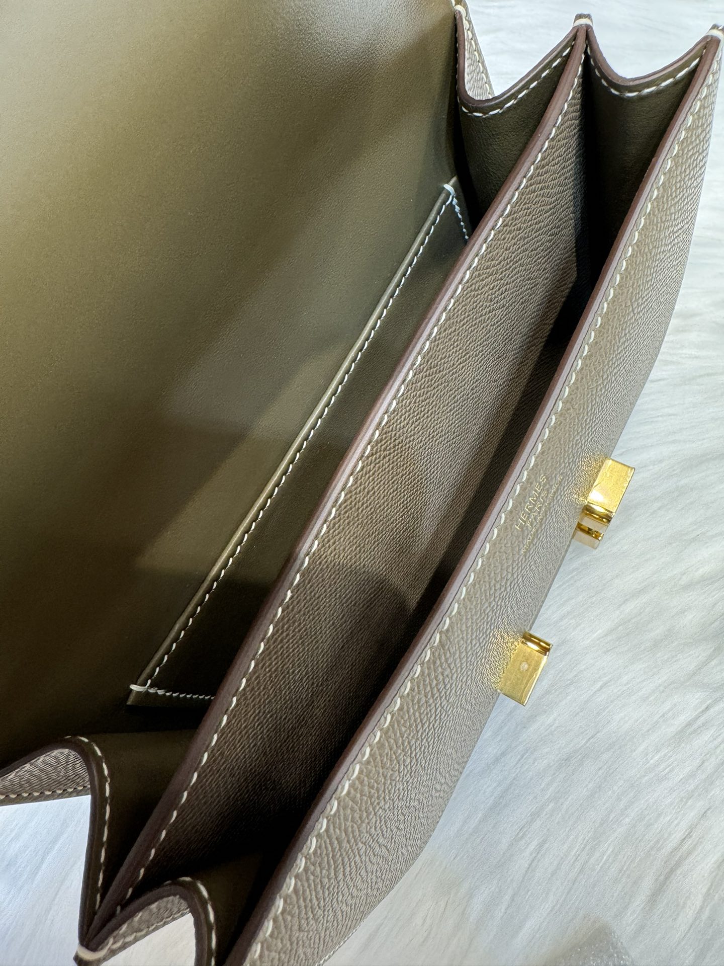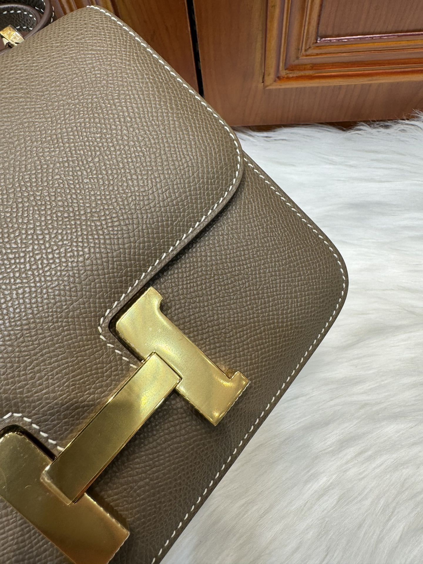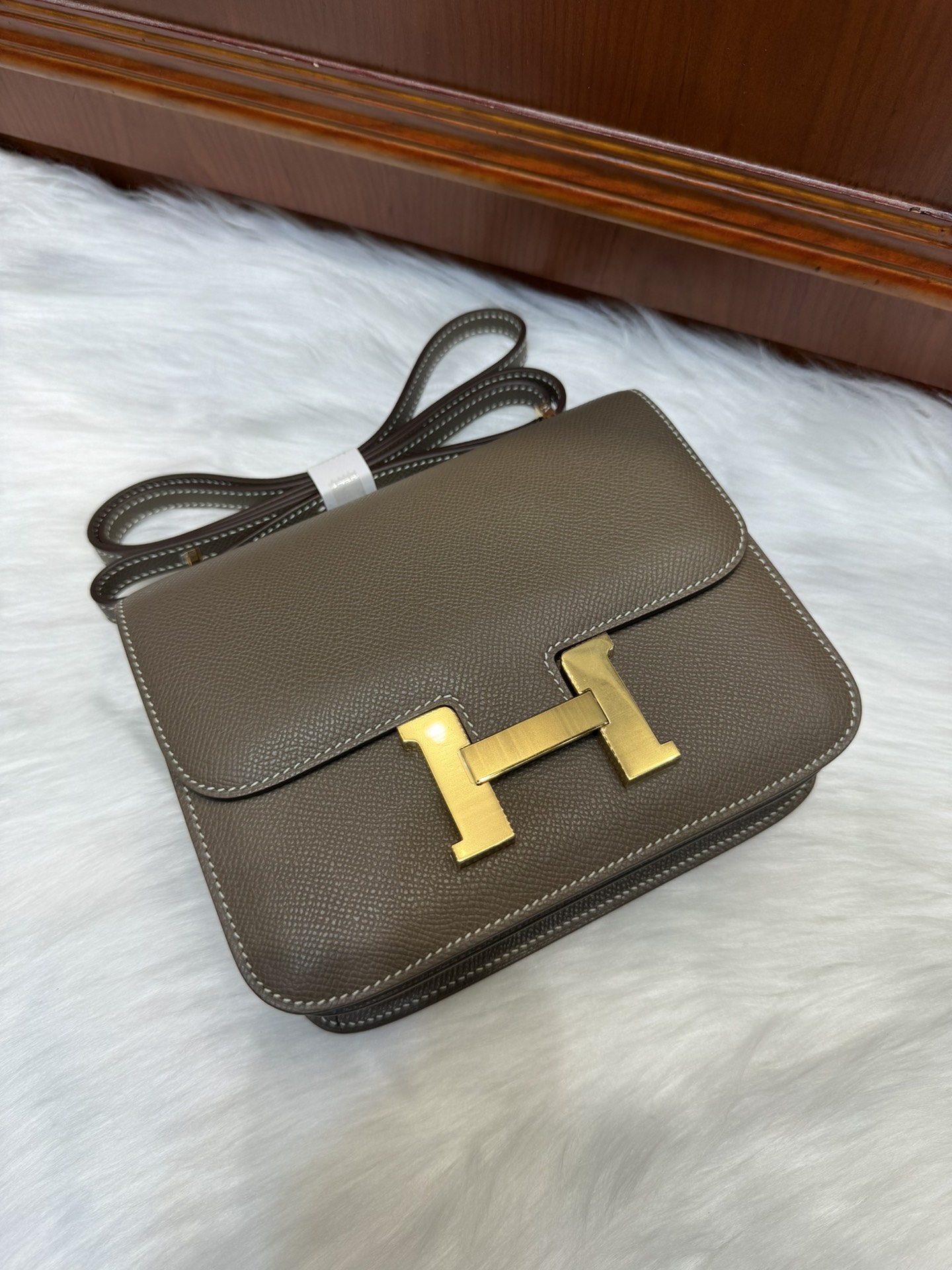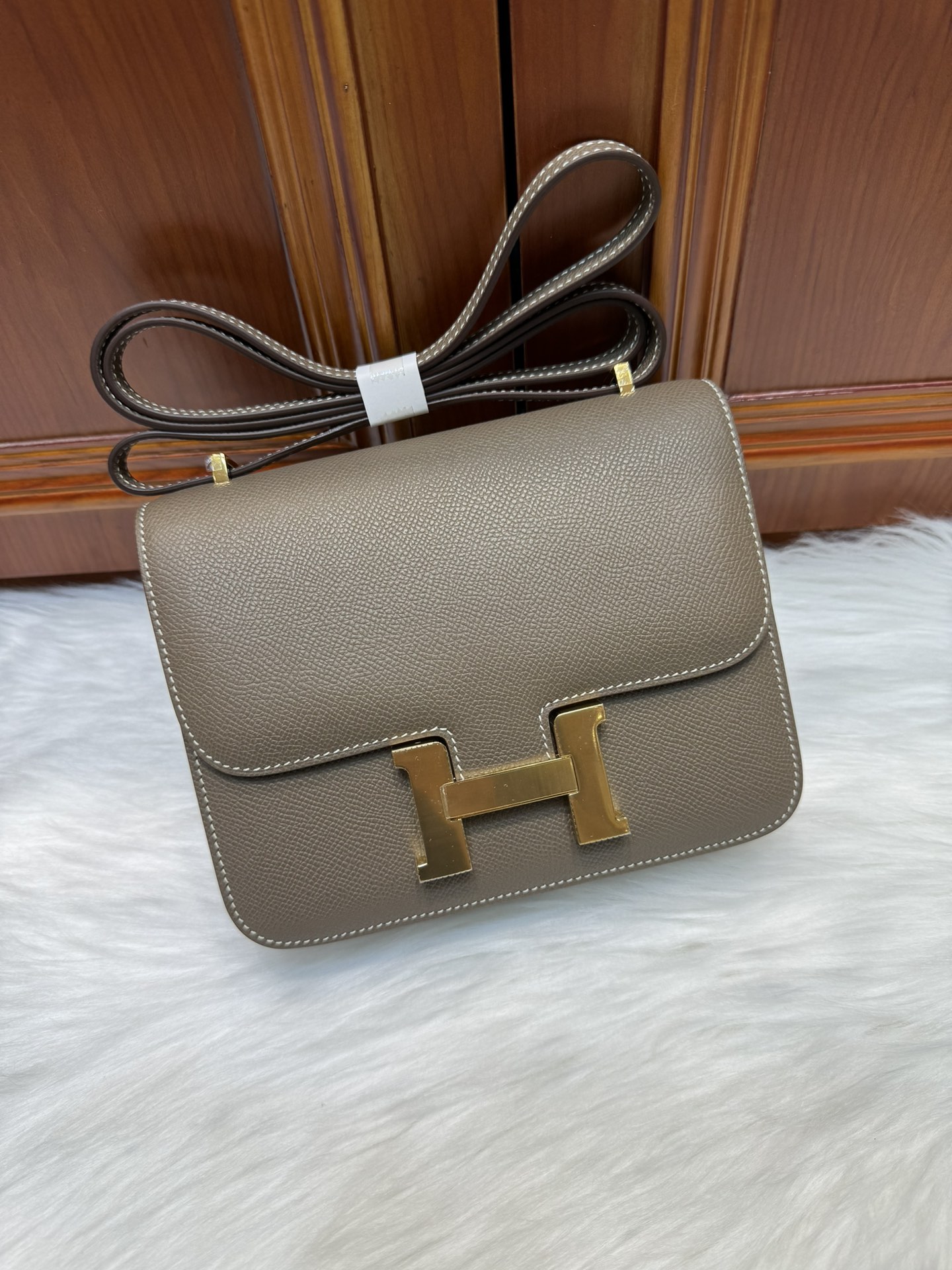 제품 이름: Constance 사이즈: 24*18*8 가죽 종류: Epsom 색상: Etoupe