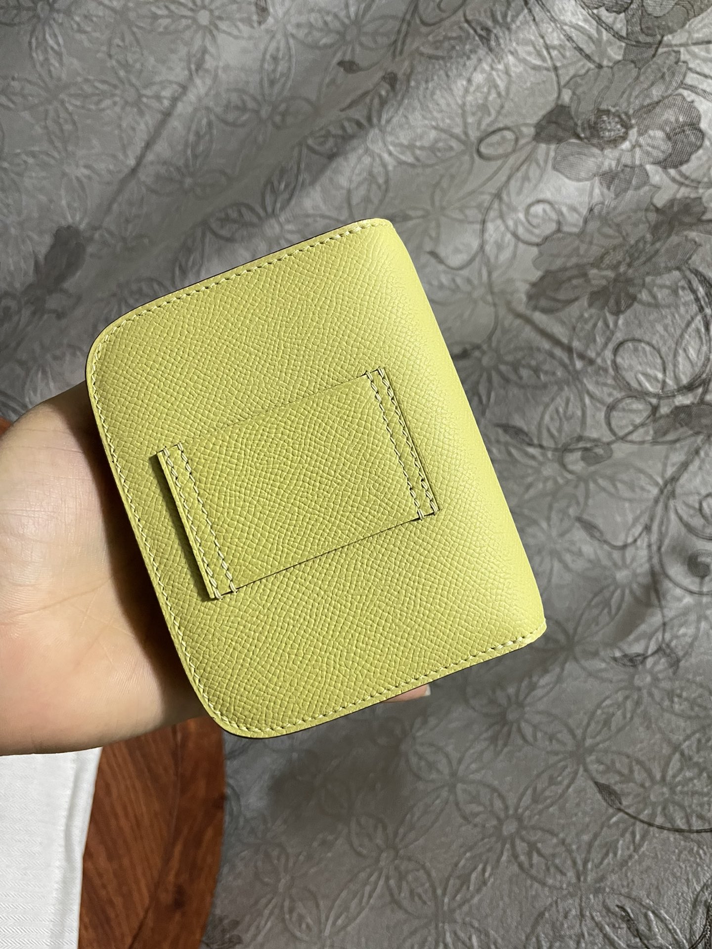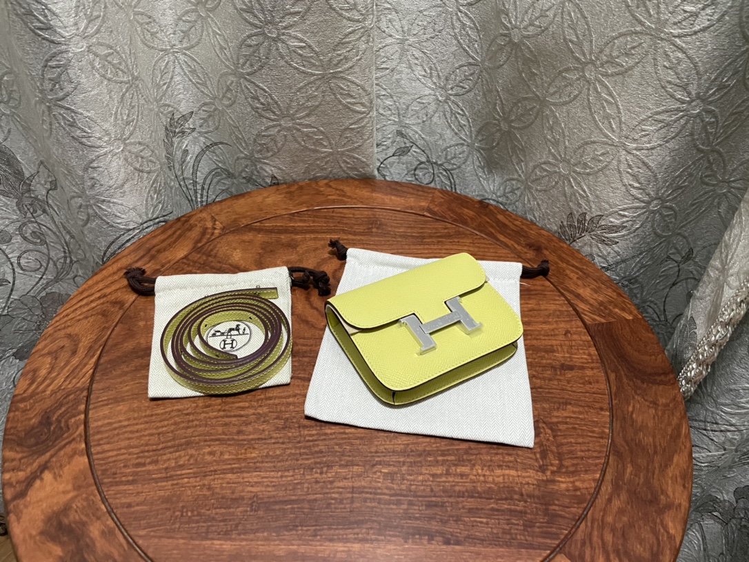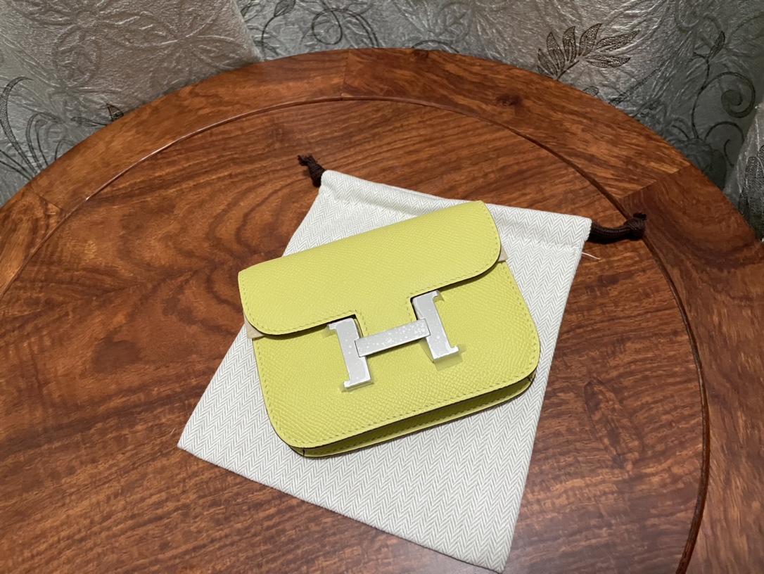 제품 이름: Constance Slim Wallet 사이즈: 12.4*10.2*3 가죽 종류: Epsom 색상: Limecello