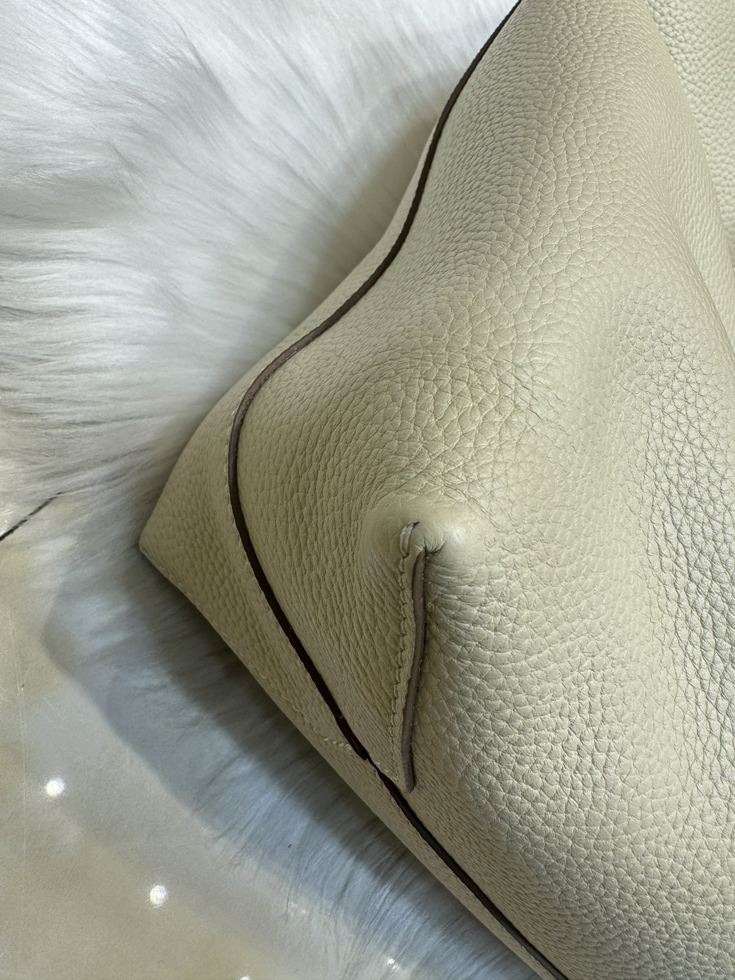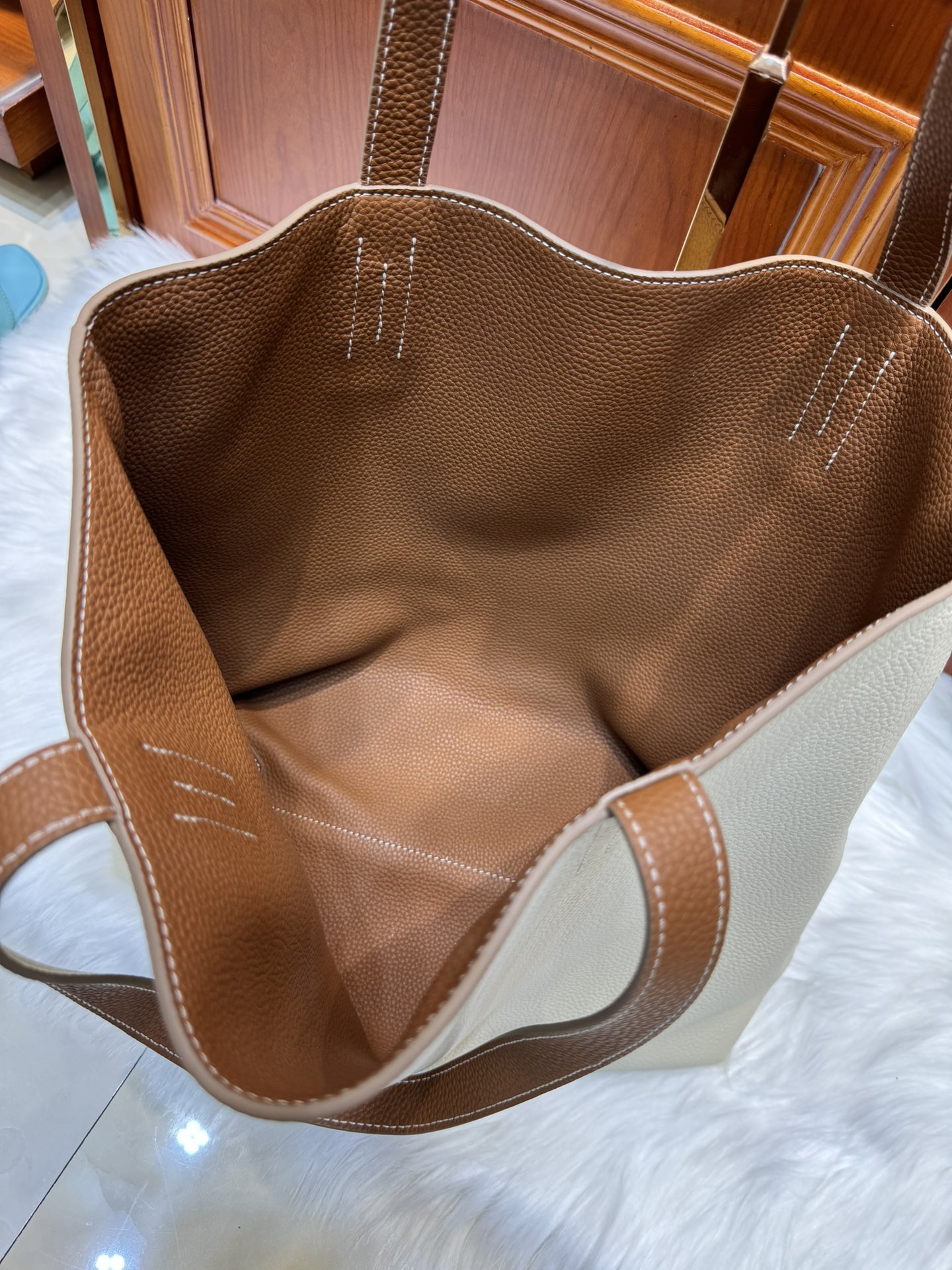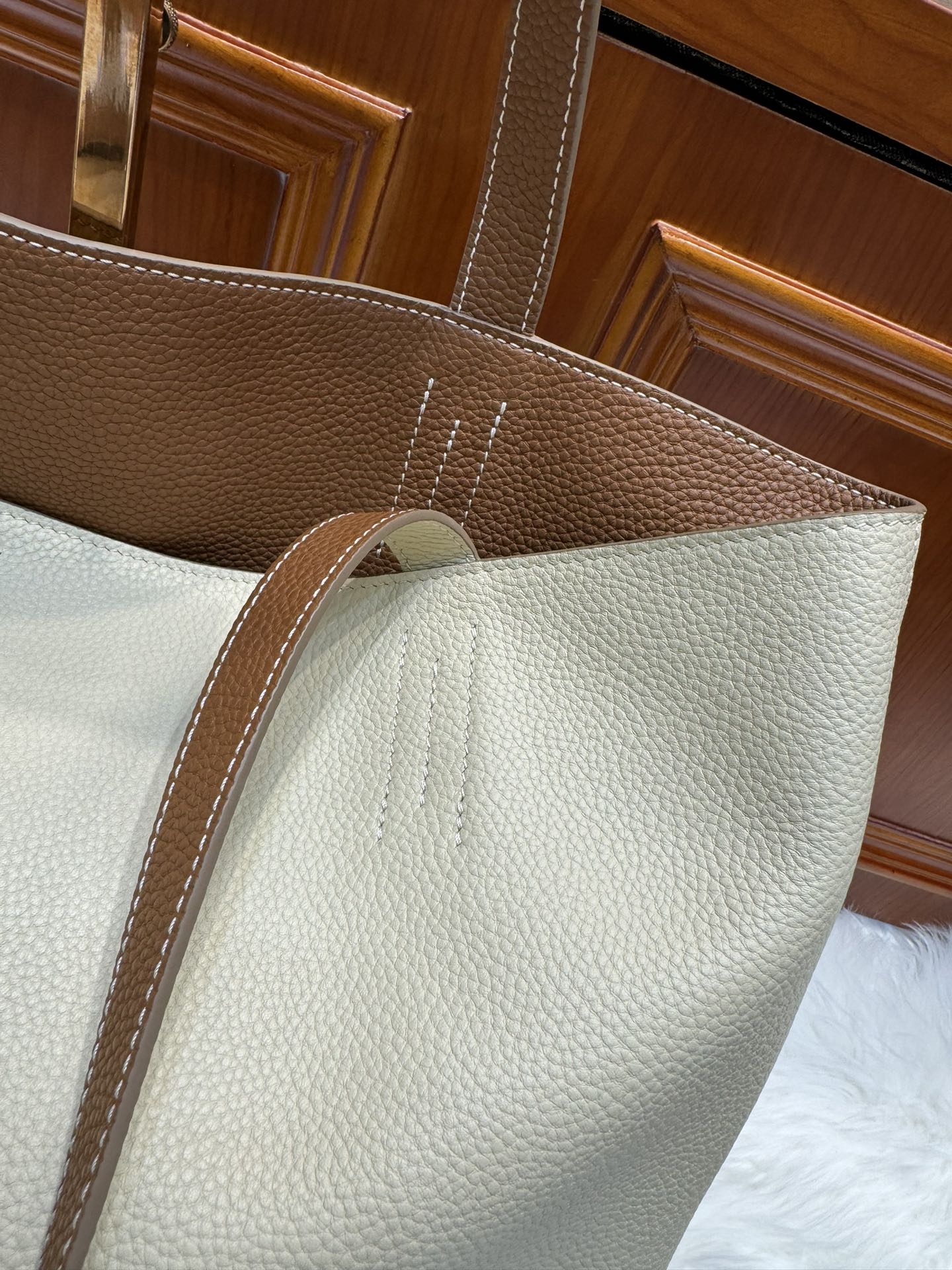 제품 이름: Double Sense 사이즈: 37*32*6 가죽 종류: Togo 색상: Nata / Jaune Sable