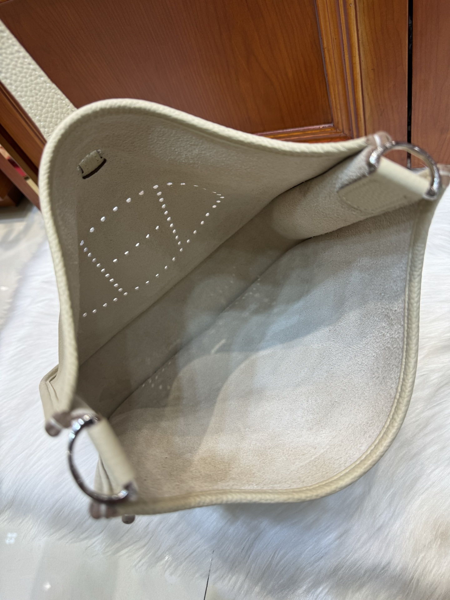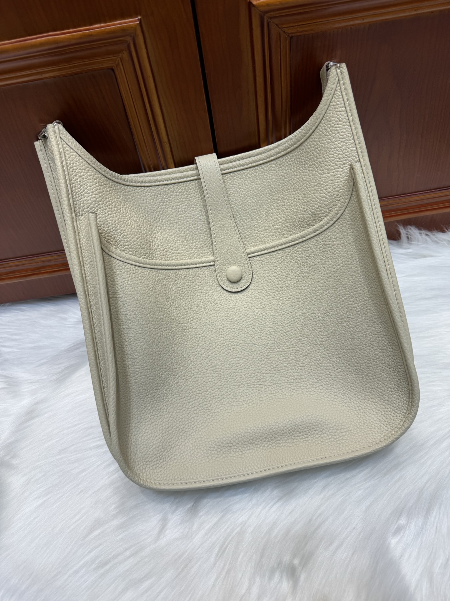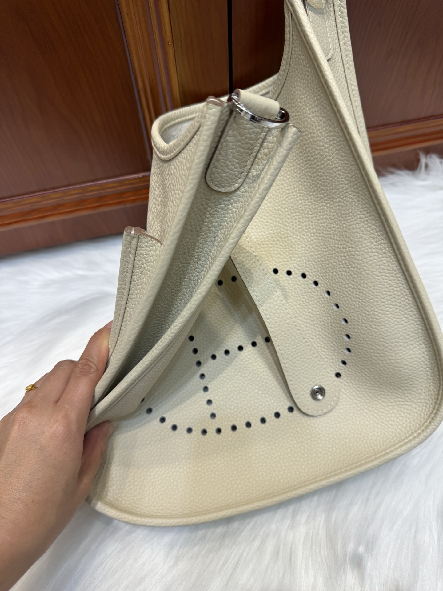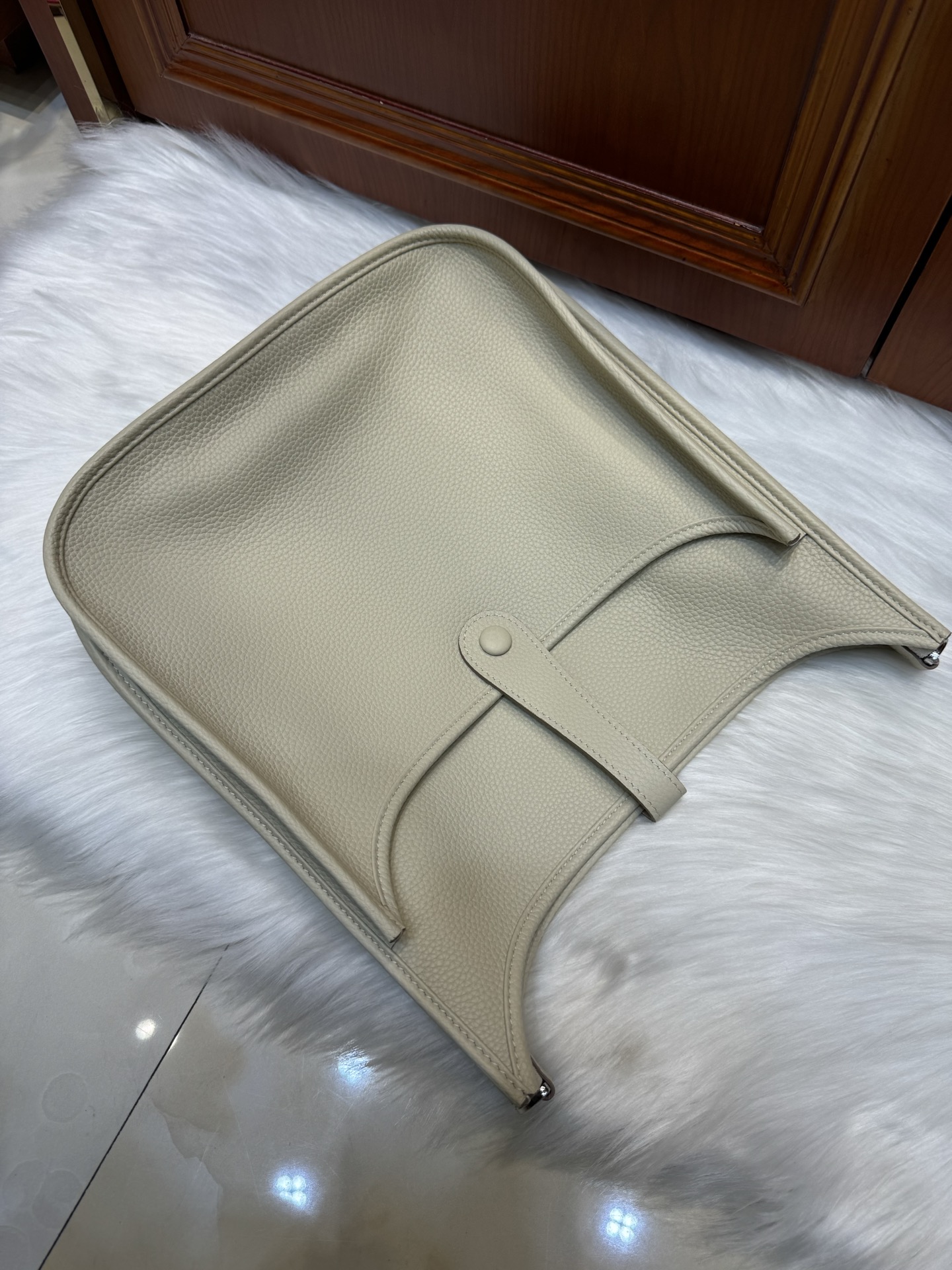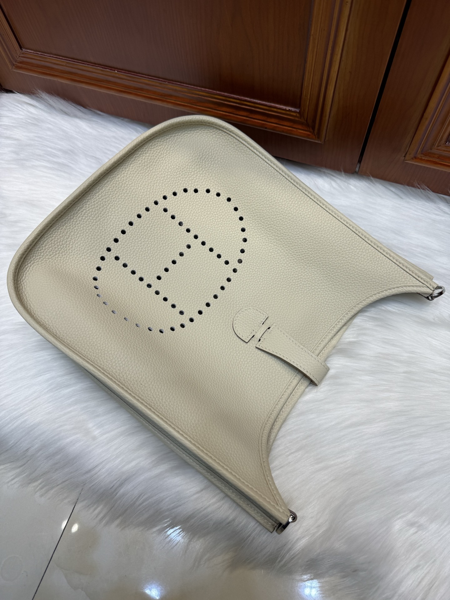 제품 이름: Evelyne 사이즈: 29*30*8 가죽 종류: Clemence 색상: Nata