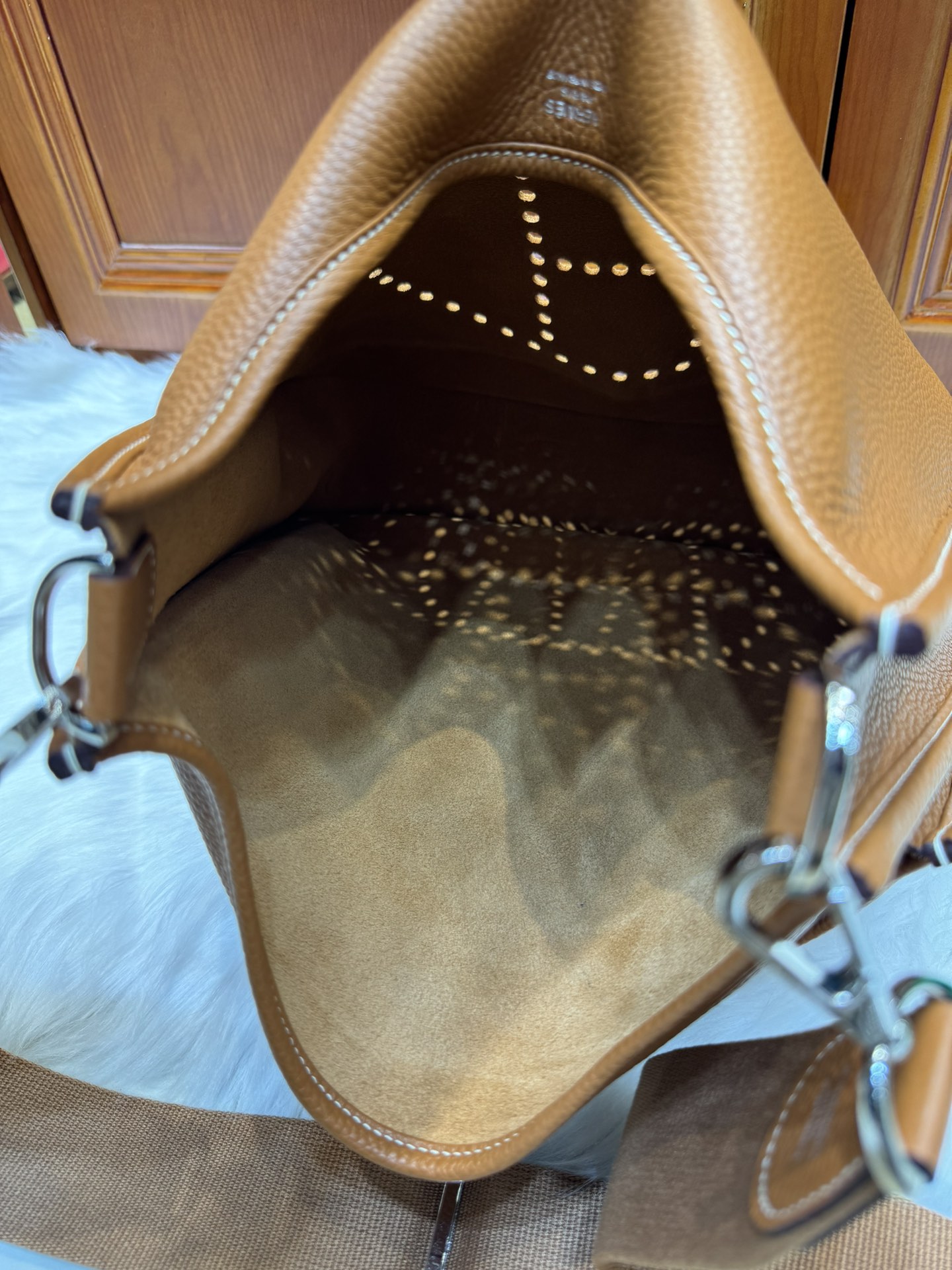 제품 이름: Evelyne 사이즈: 33*31*8 가죽 종류: Clemence 색상: Gold