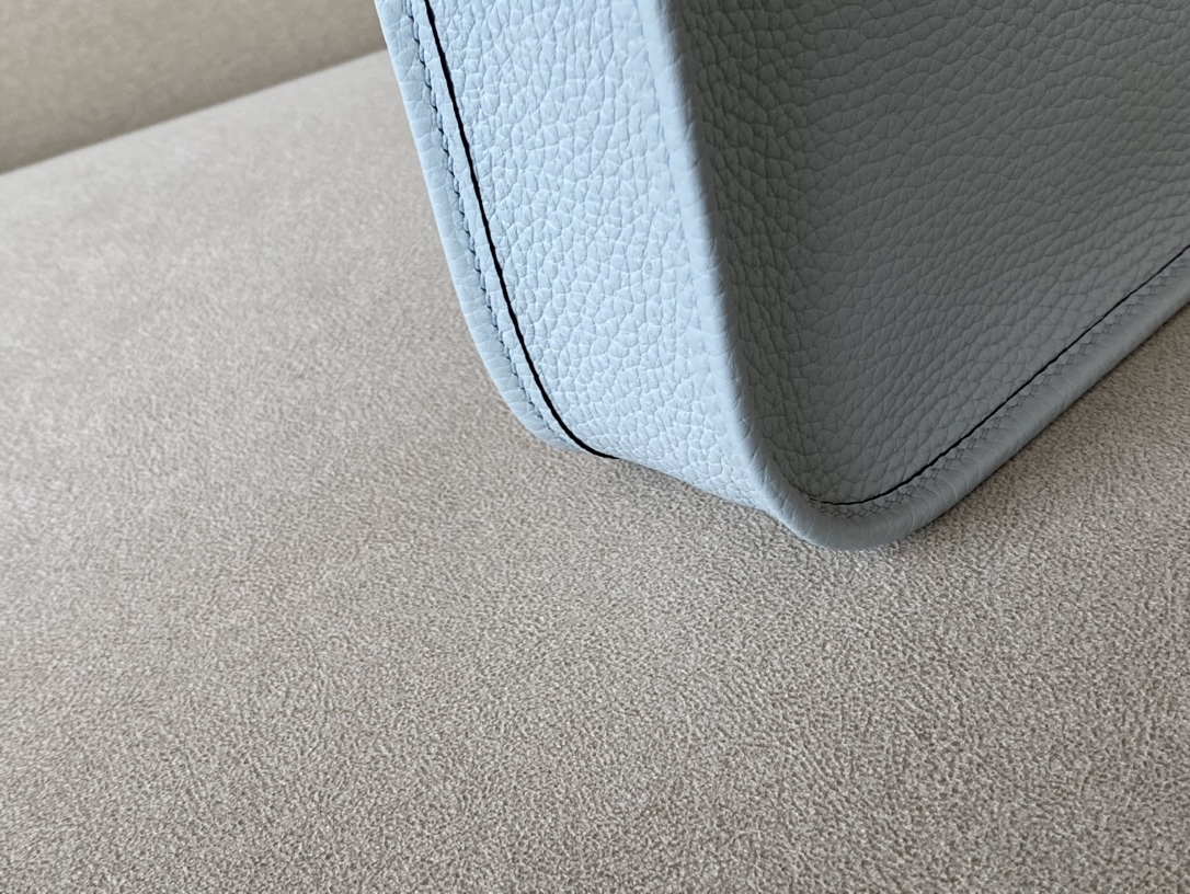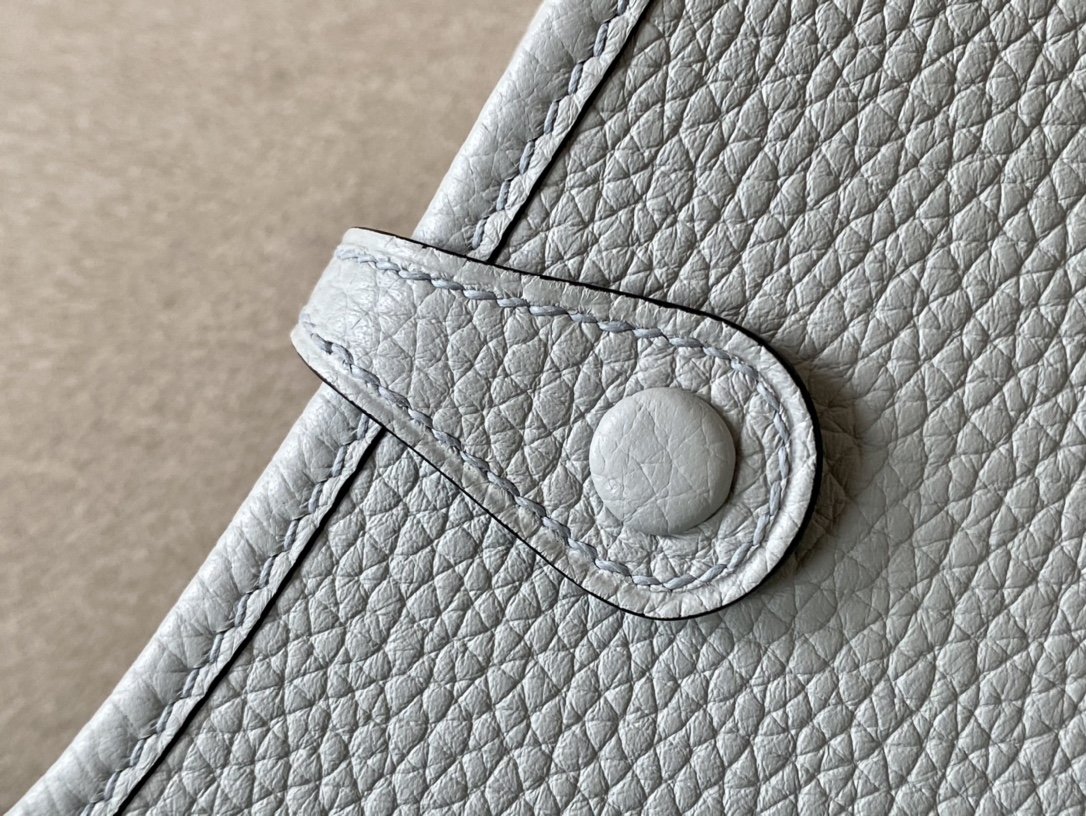 제품 이름: Evelyne mini 사이즈: 17*16*5.5 가죽 종류: Taurillon Clemence 색상: Gris Perle