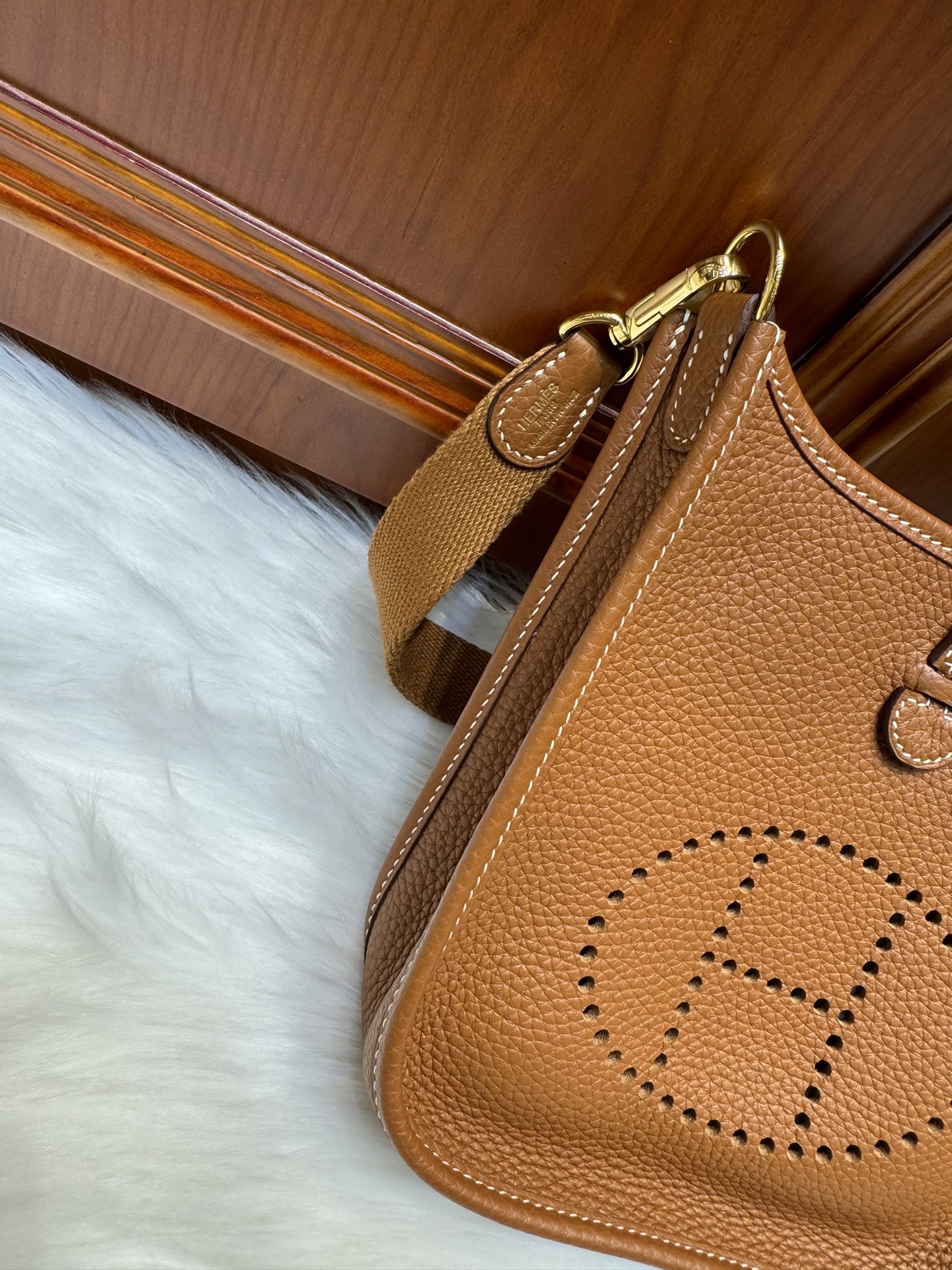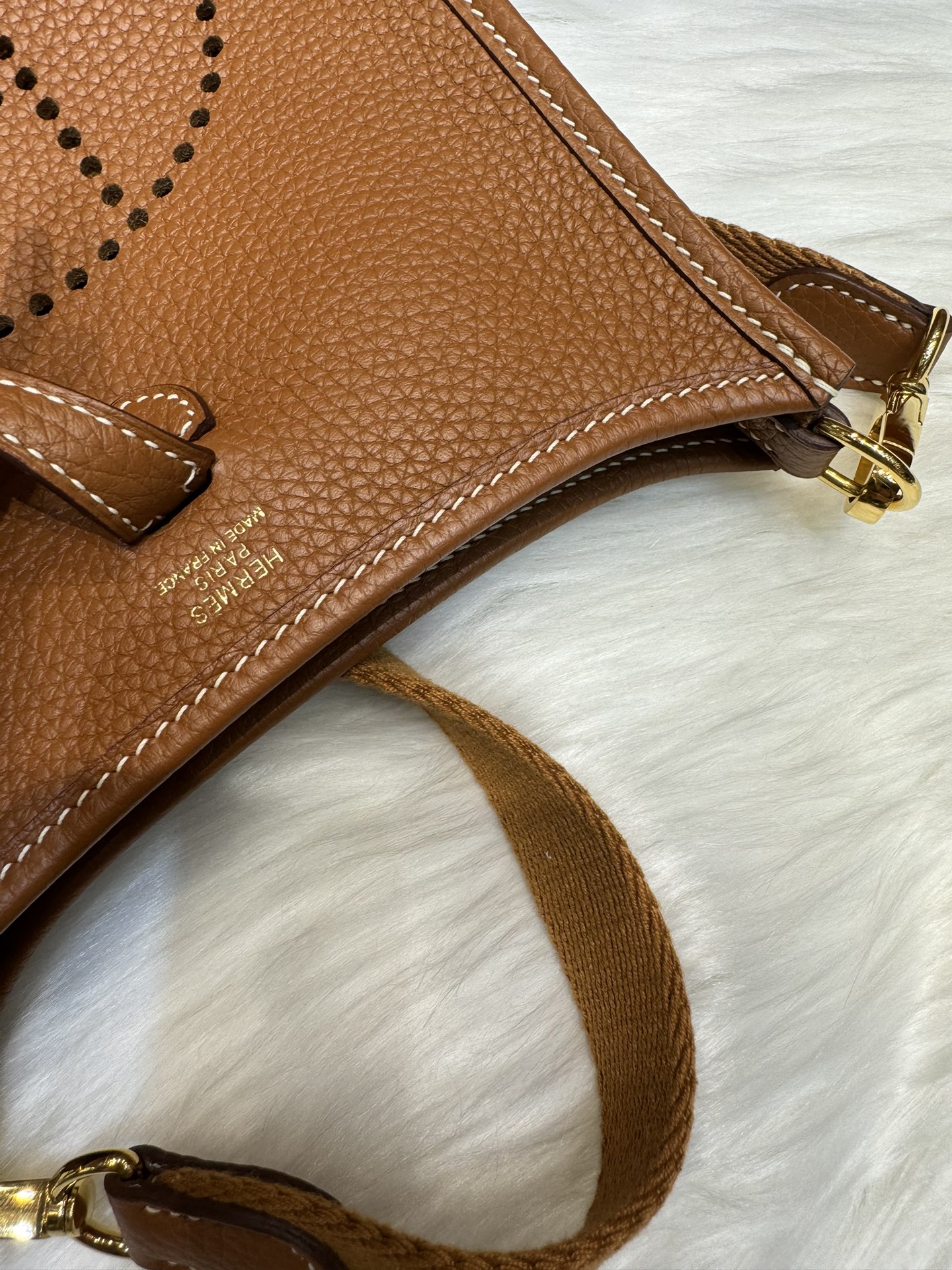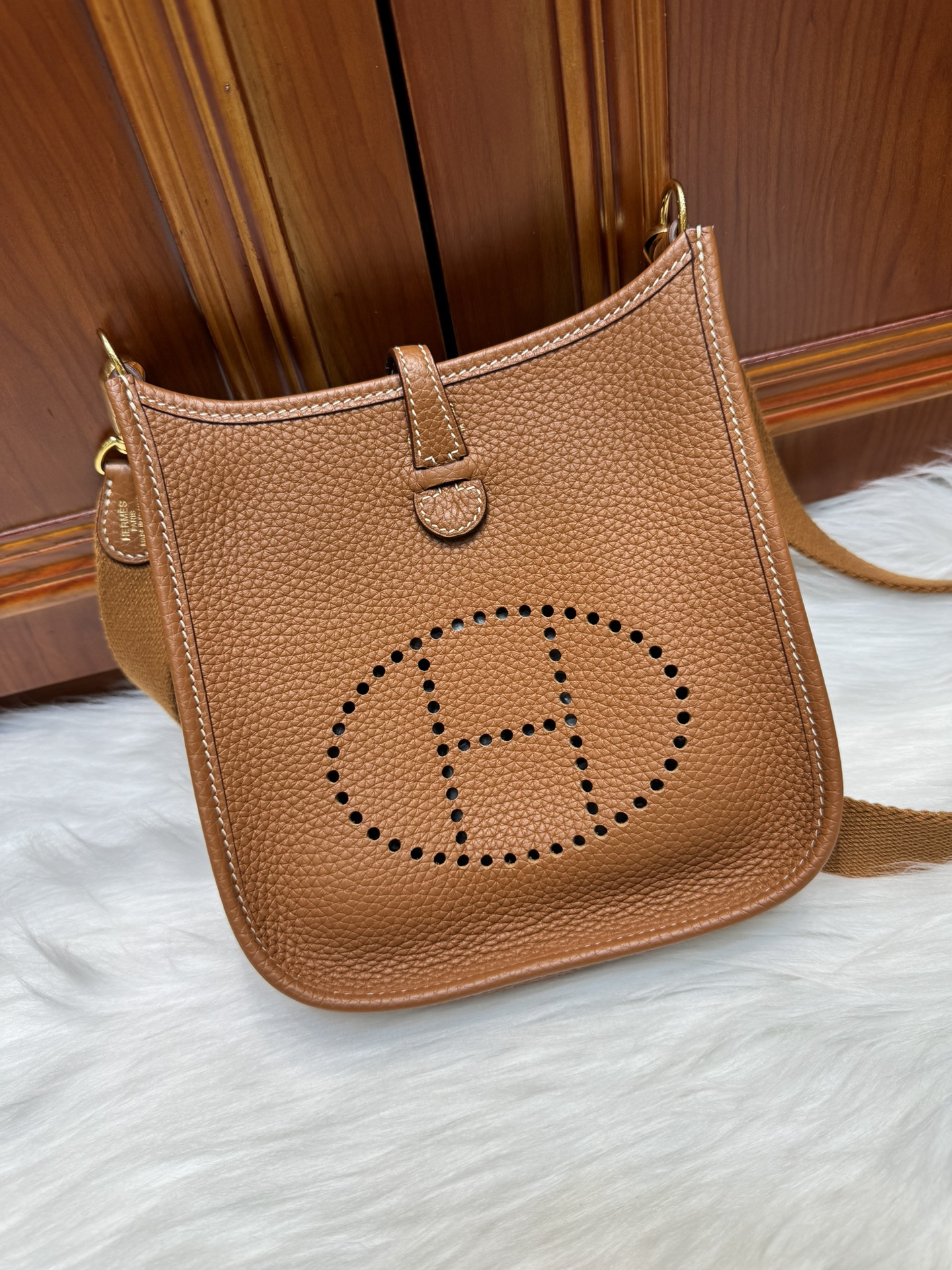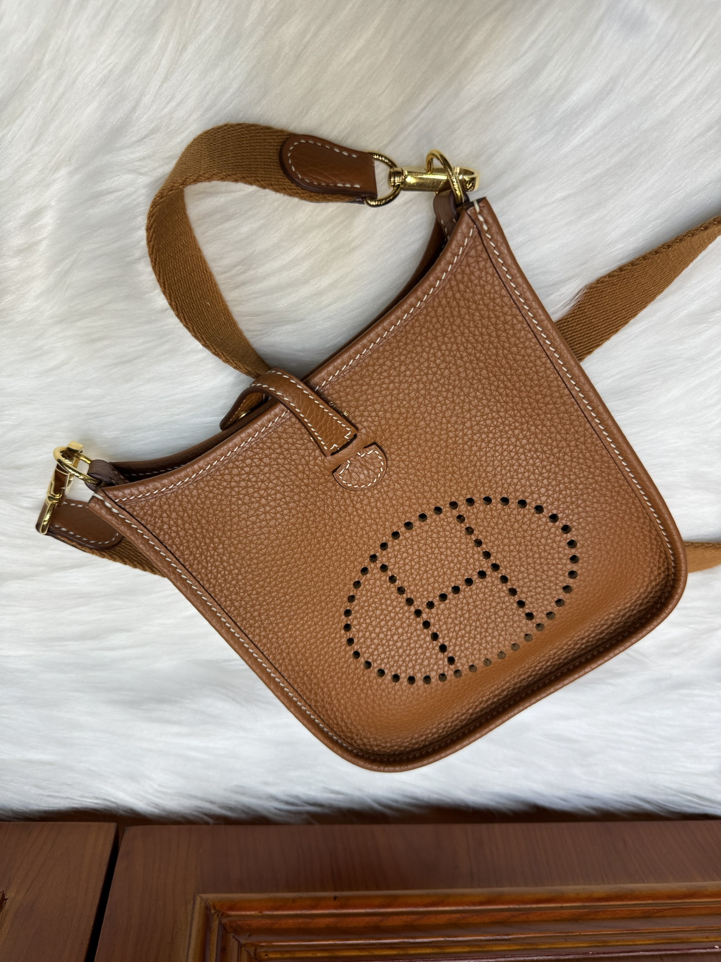 제품 이름: Evelyne mini 사이즈: 17*16*5.5 가죽 종류: Clemence 색상: Gold
