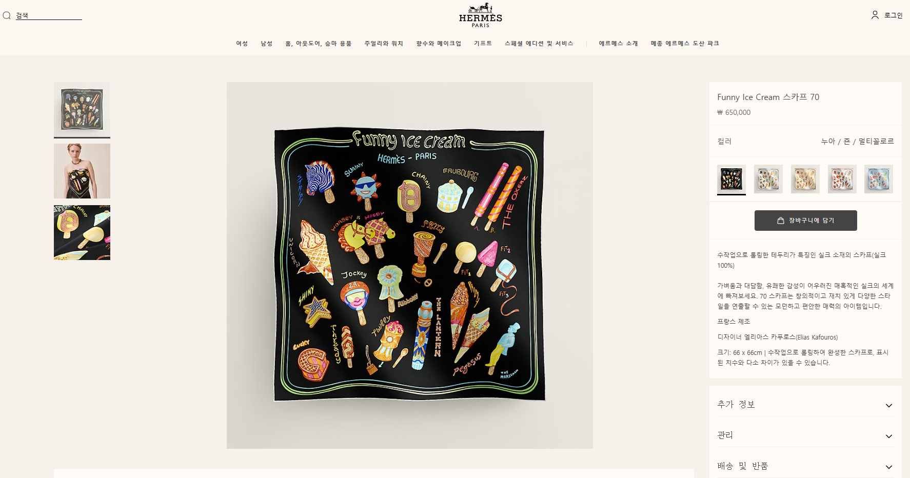 [에르메스] Funny Ice Cream 스카프 90 H984109S02 (3 COLORS)