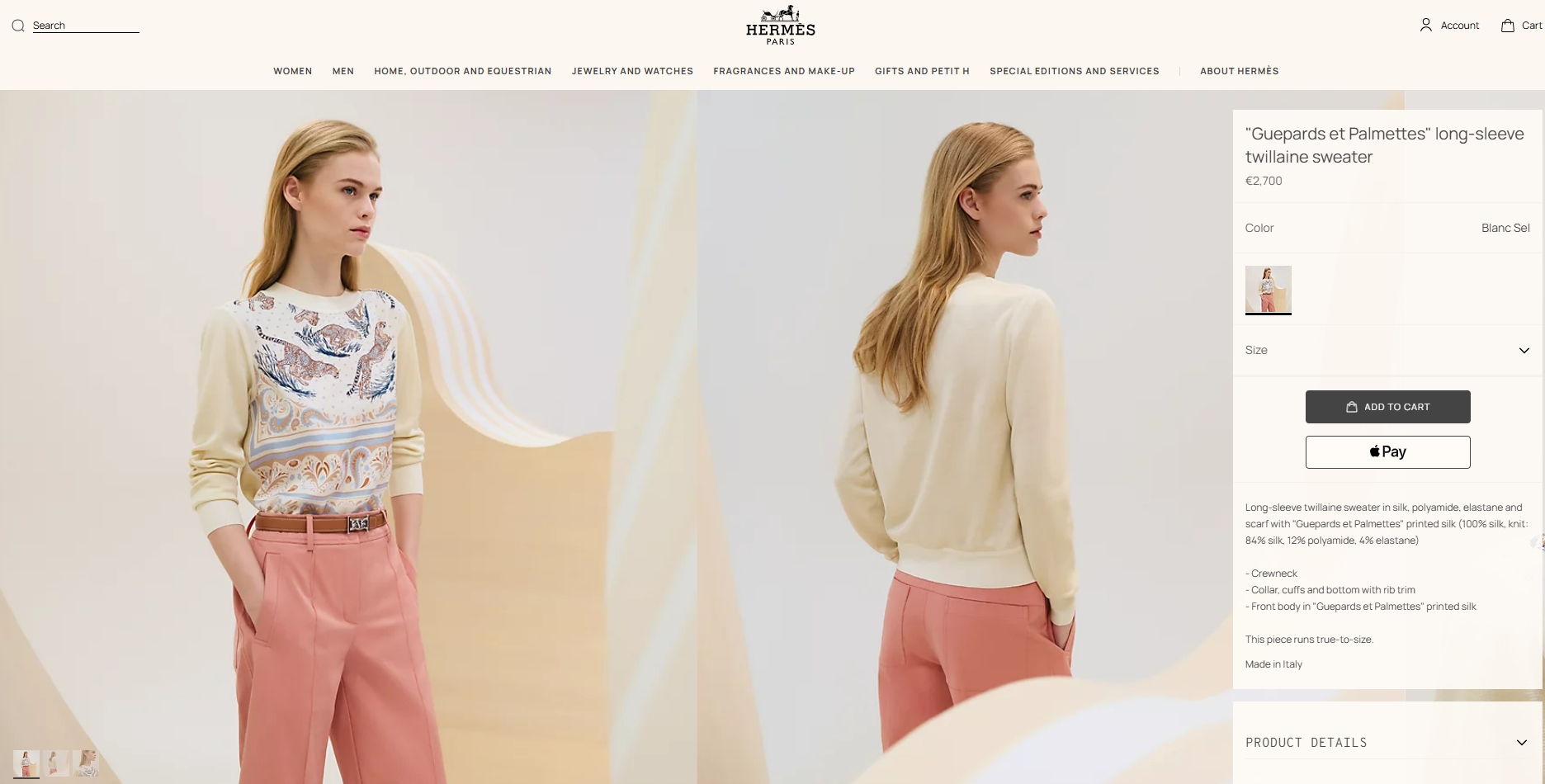 [에르메스] “Guepards et Palmettes” 롱 슬리브 트윌렌 스웨터 H5E2823DSDE36