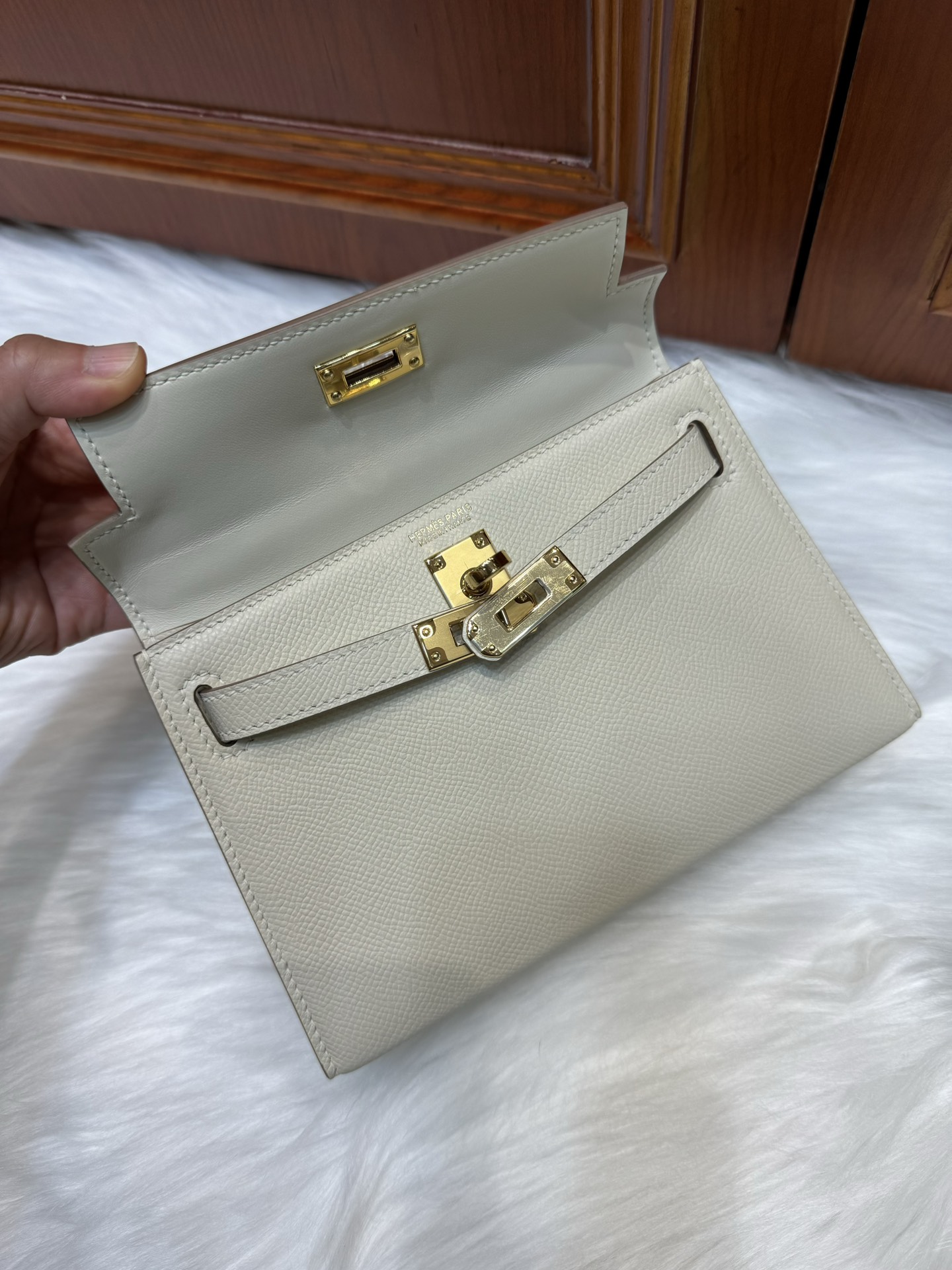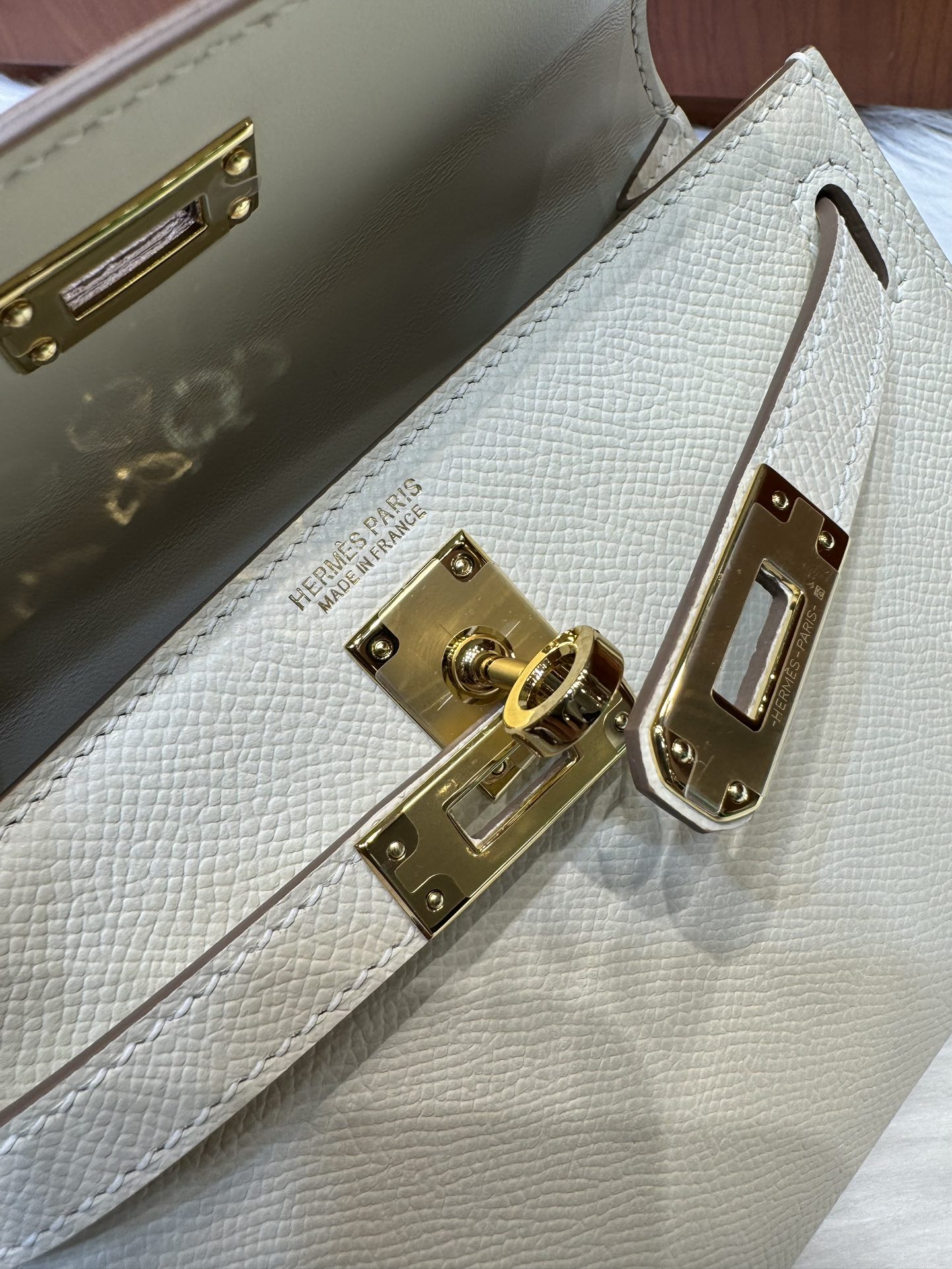 [에르메스] 켈리 19cm Epsom/ Nata – Gold