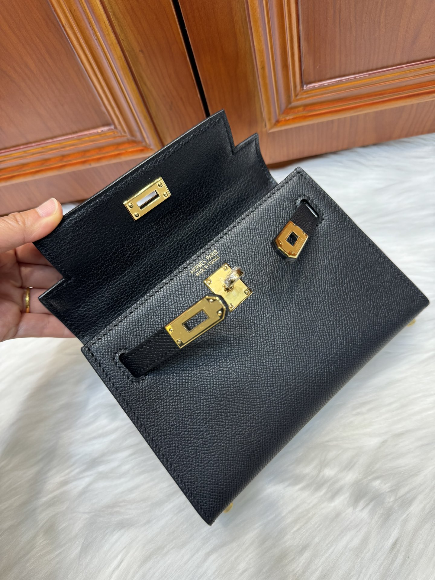 제품 이름: Kelly 사이즈: 19*14*6 가죽 종류: Epsom 색상: Noir