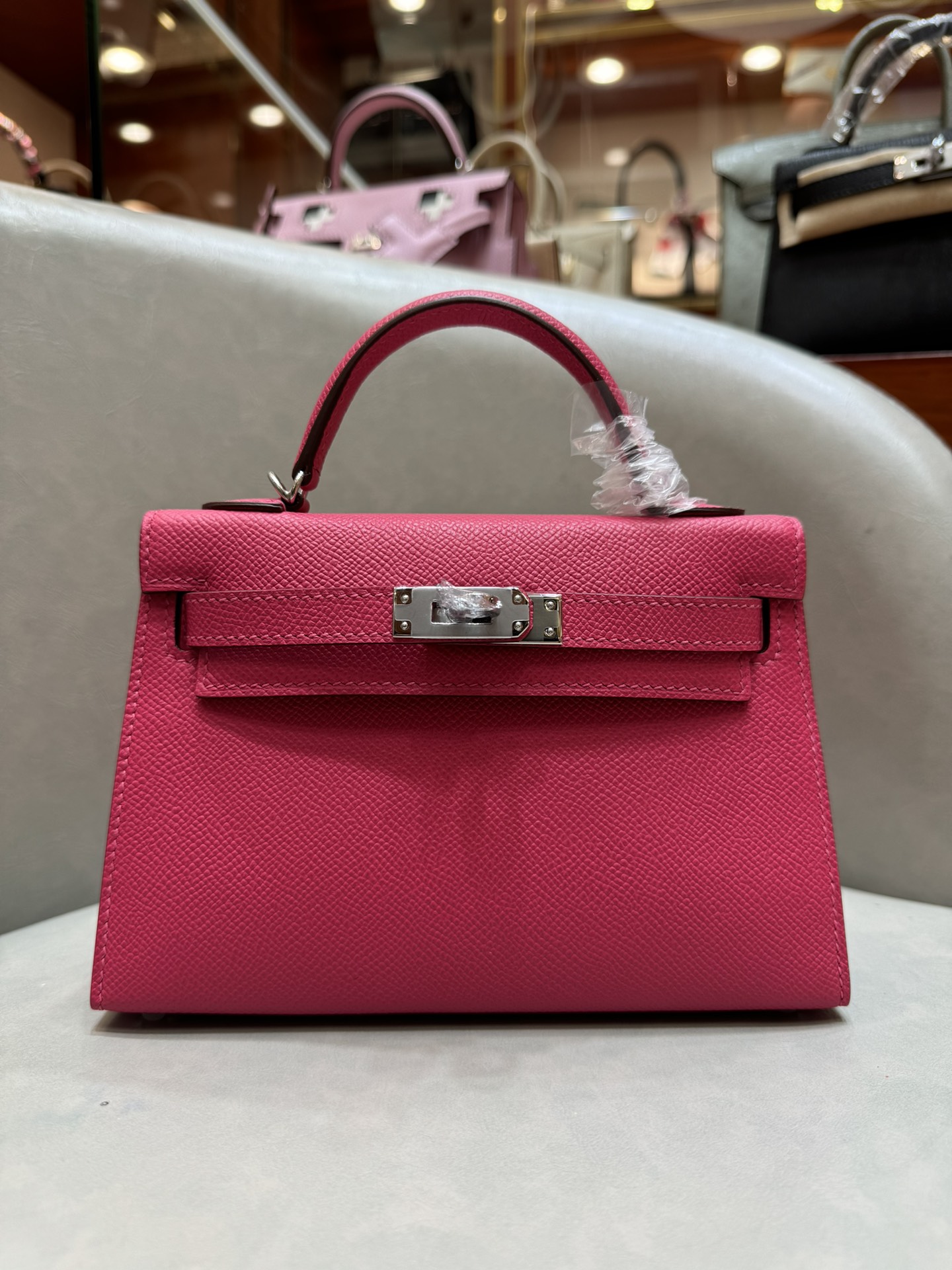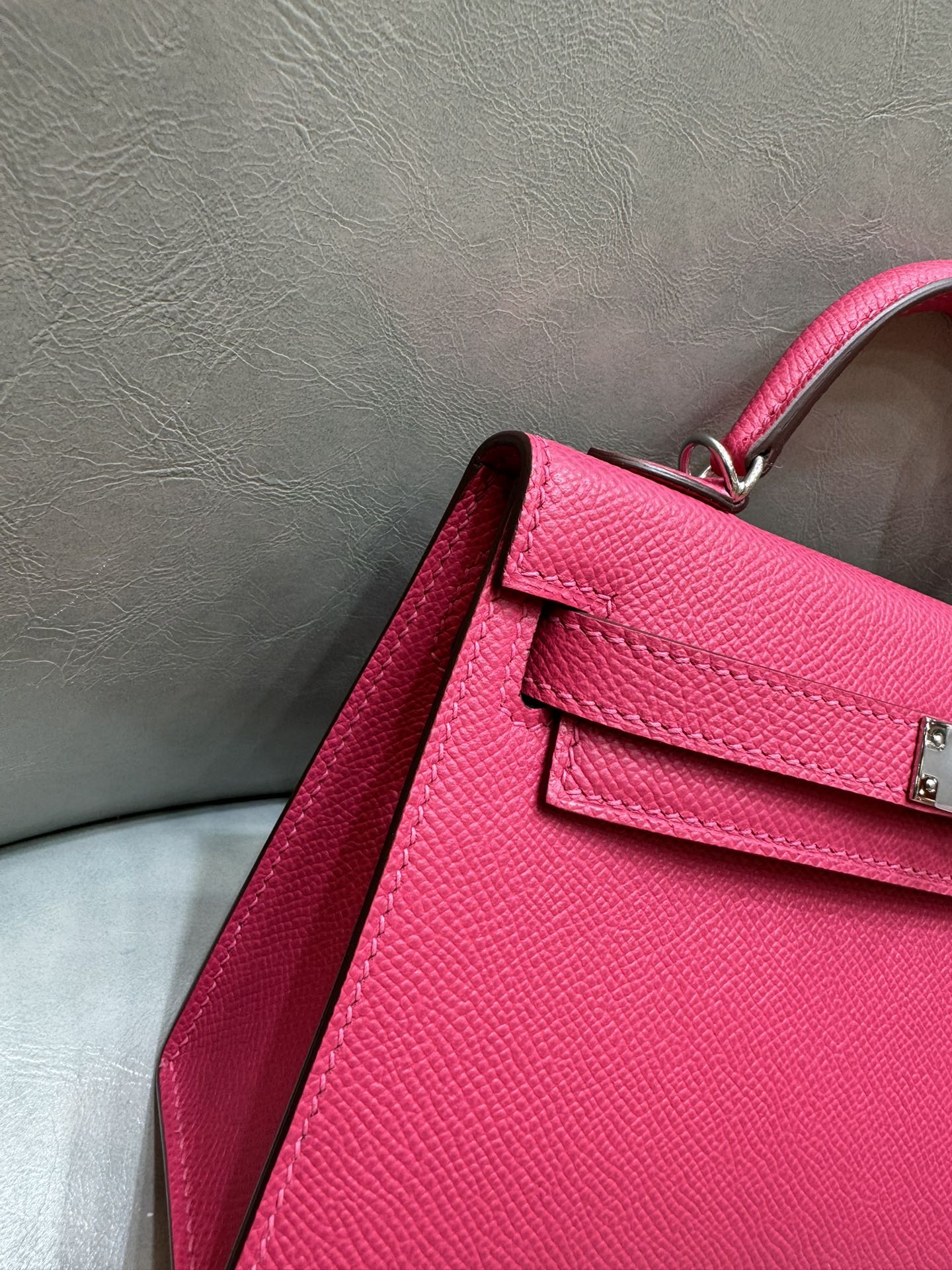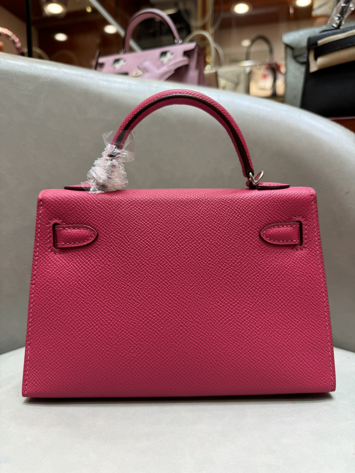 제품 이름: Kelly 사이즈: 19*14*6 가죽 종류: Epsom 색상: Rose Extreme