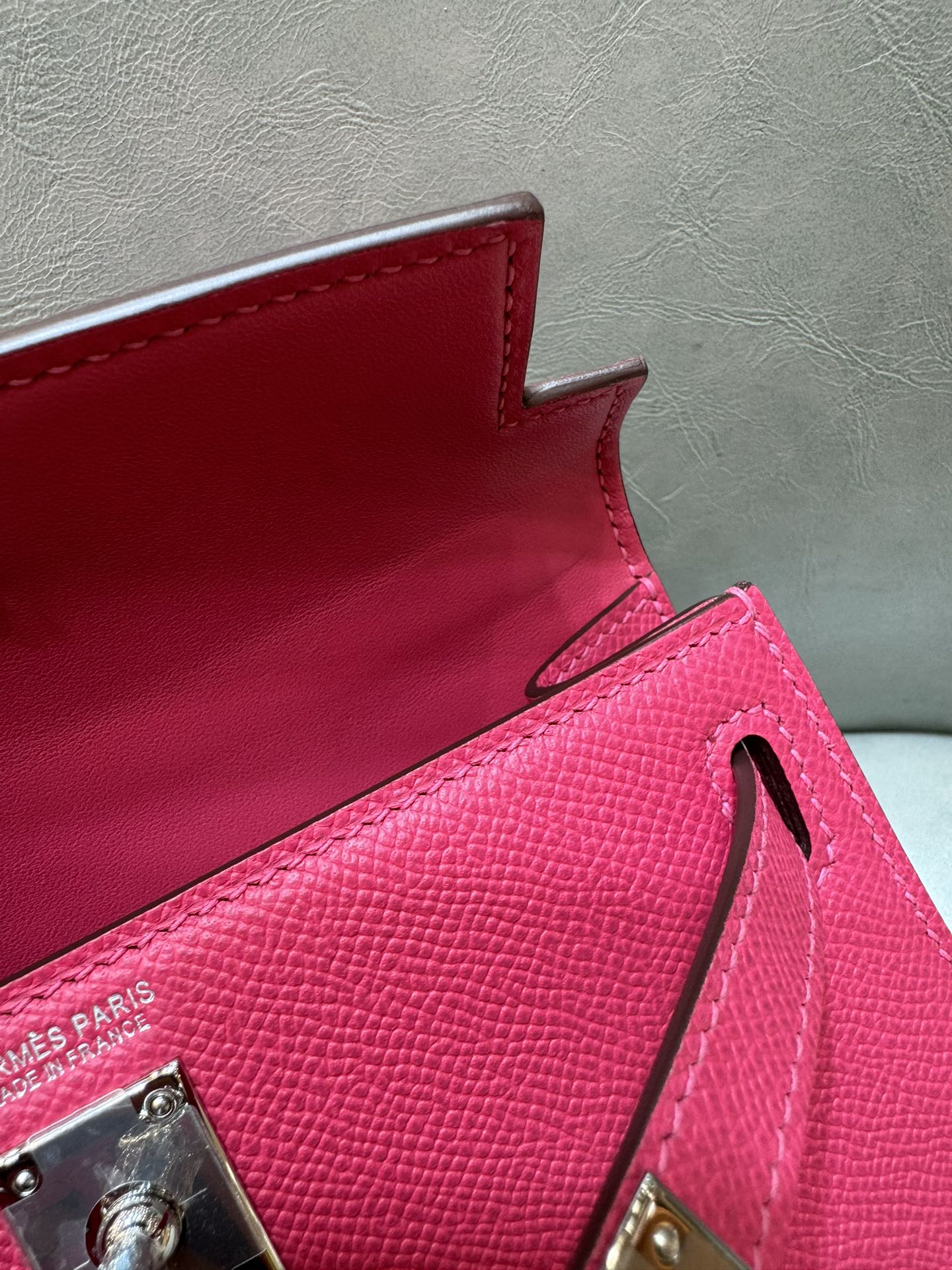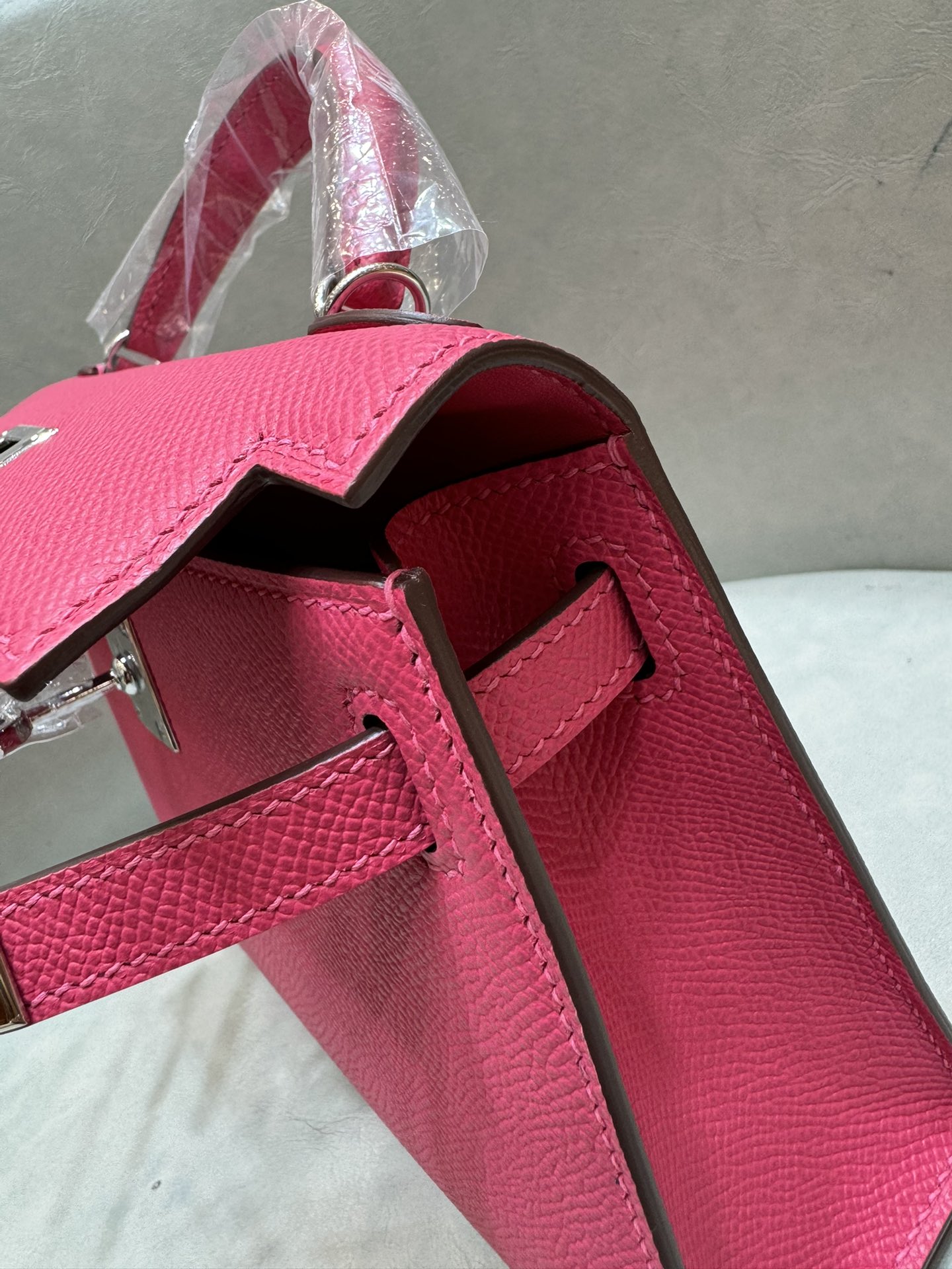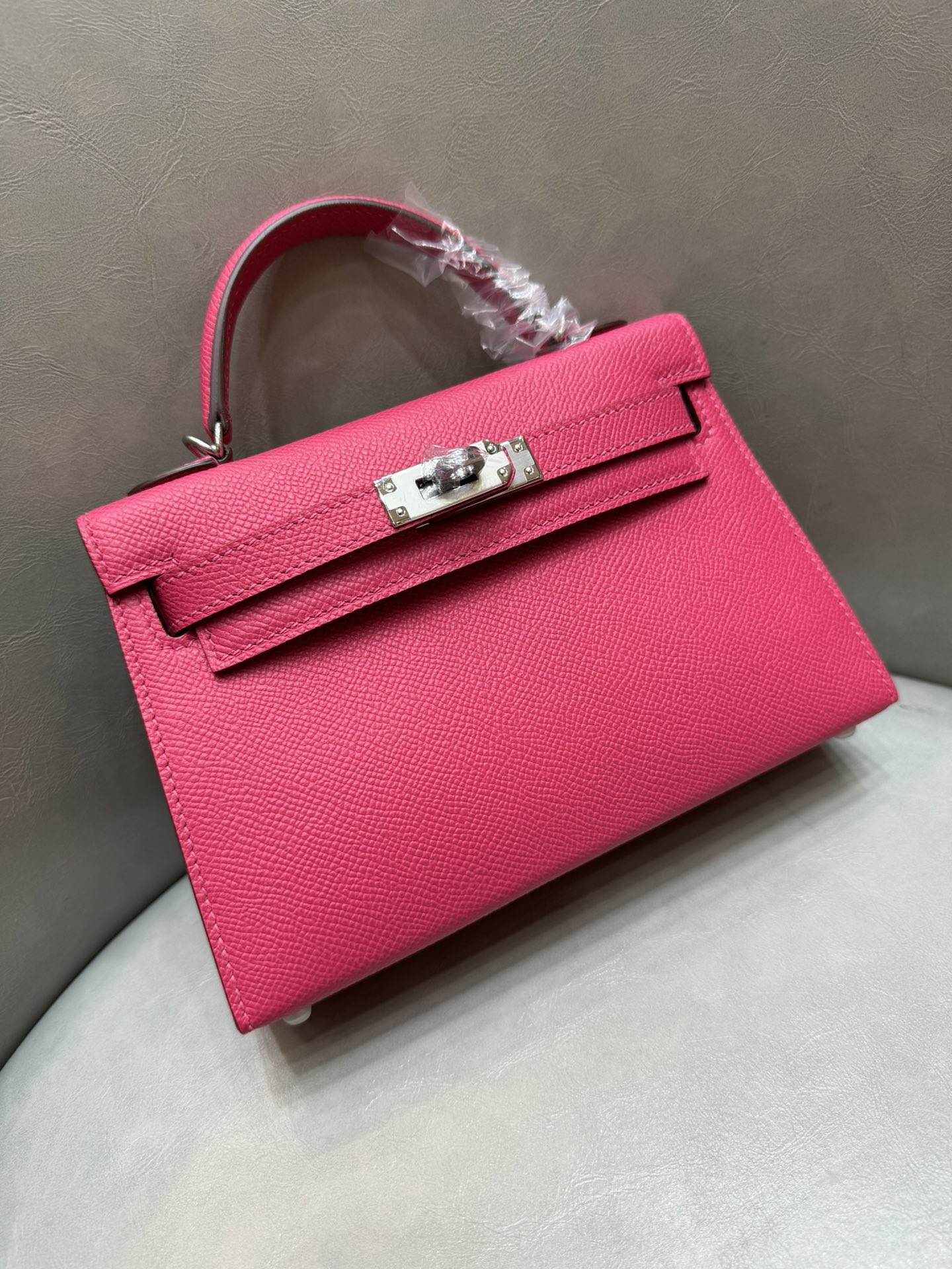 제품 이름: Kelly 사이즈: 19*14*6 가죽 종류: Epsom 색상: Rose Extreme