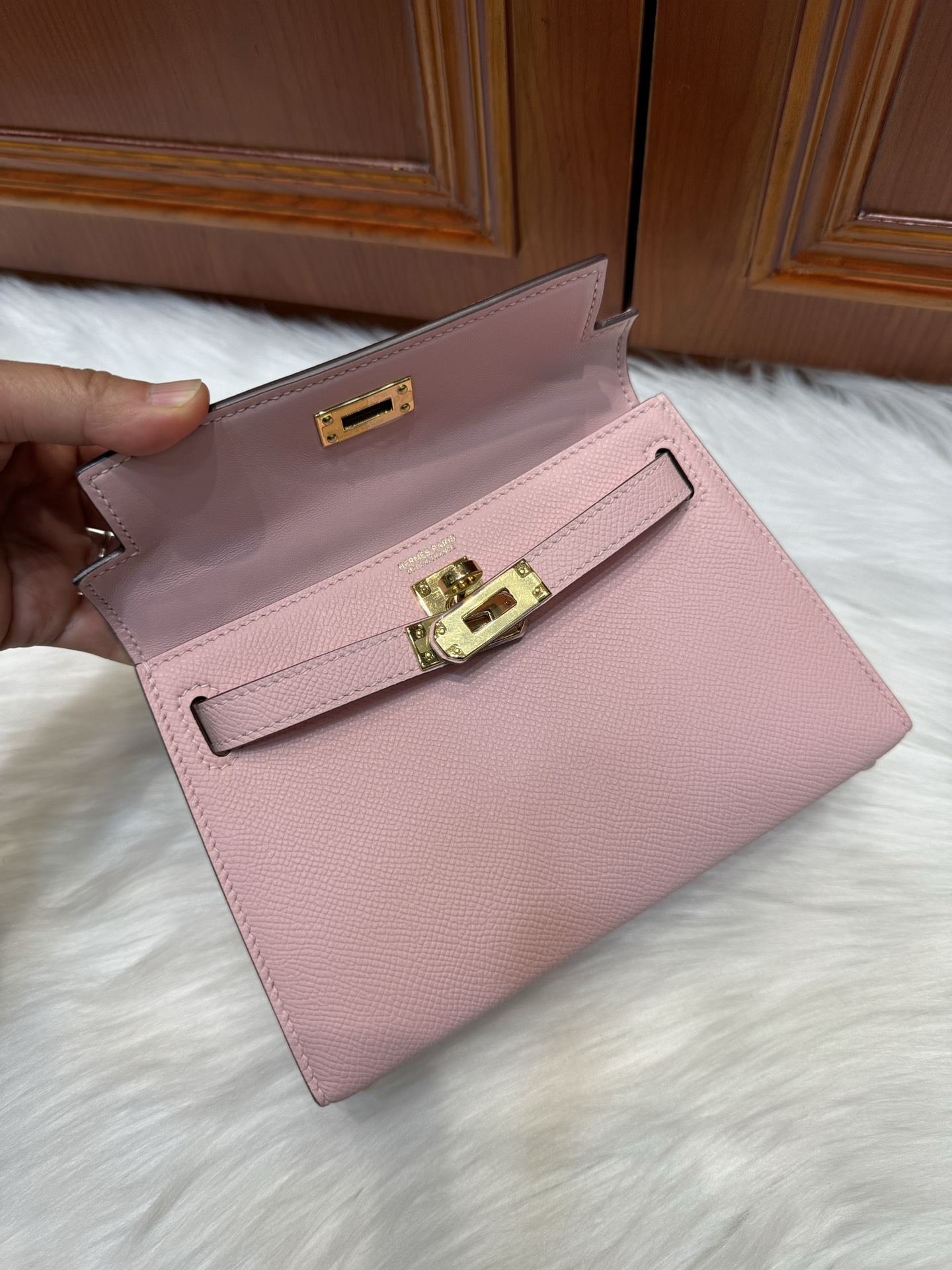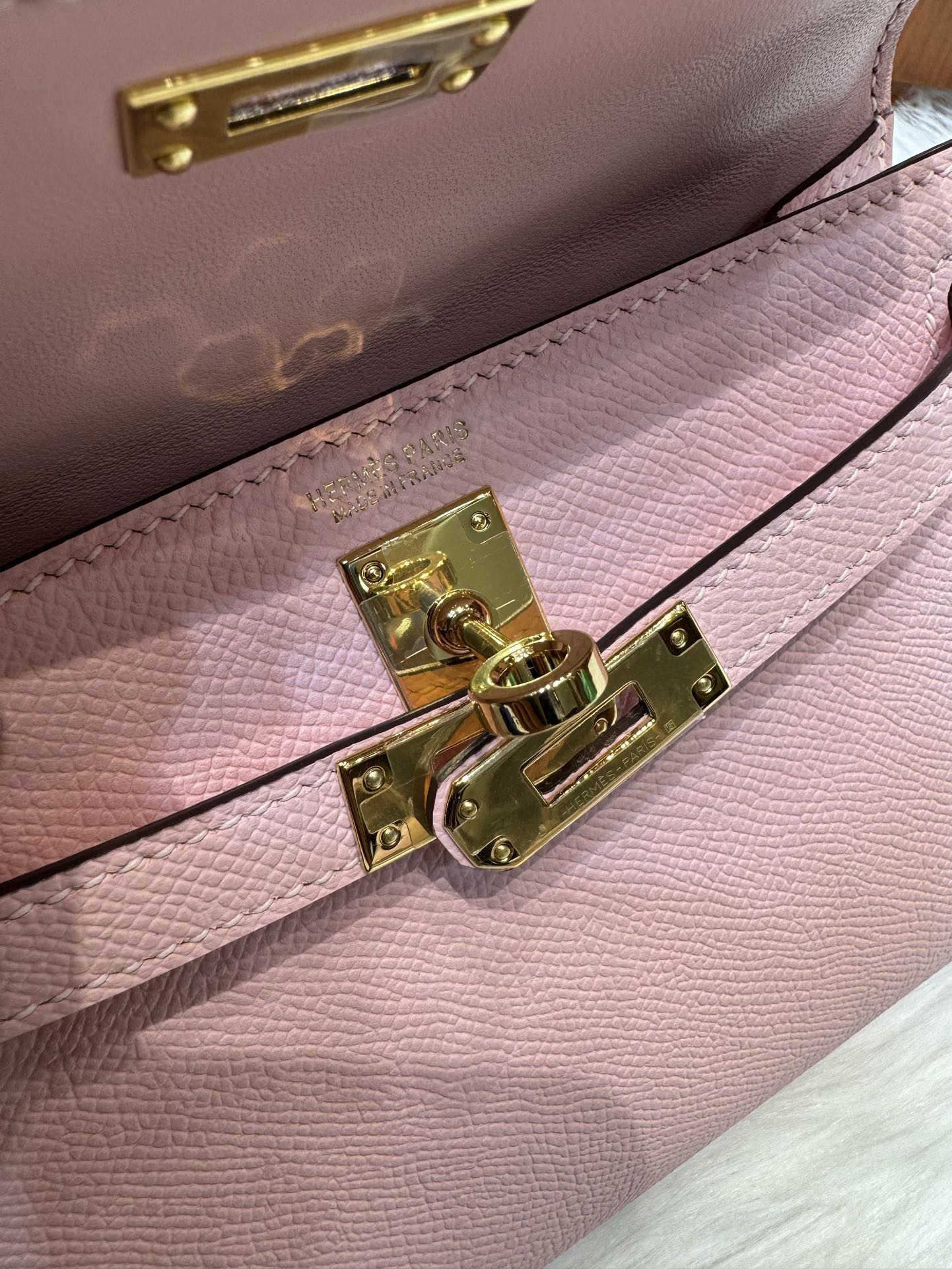 제품 이름: Kelly 사이즈: 19*14*6 가죽 종류: Epsom 색상: Rose Sakura