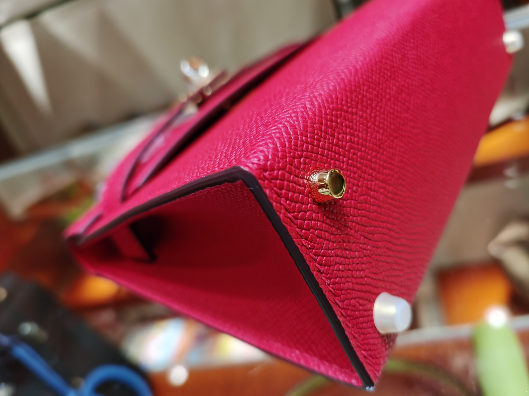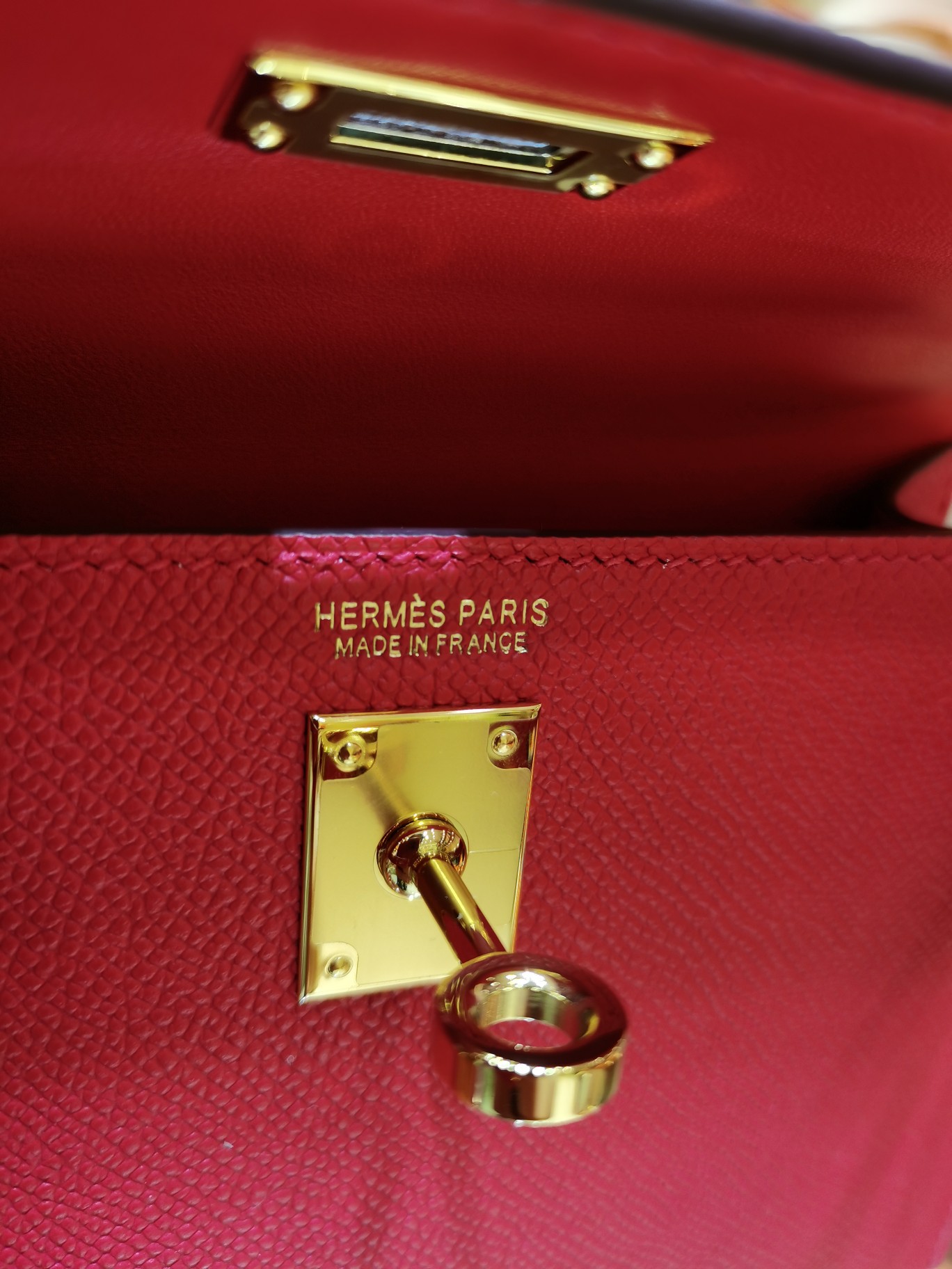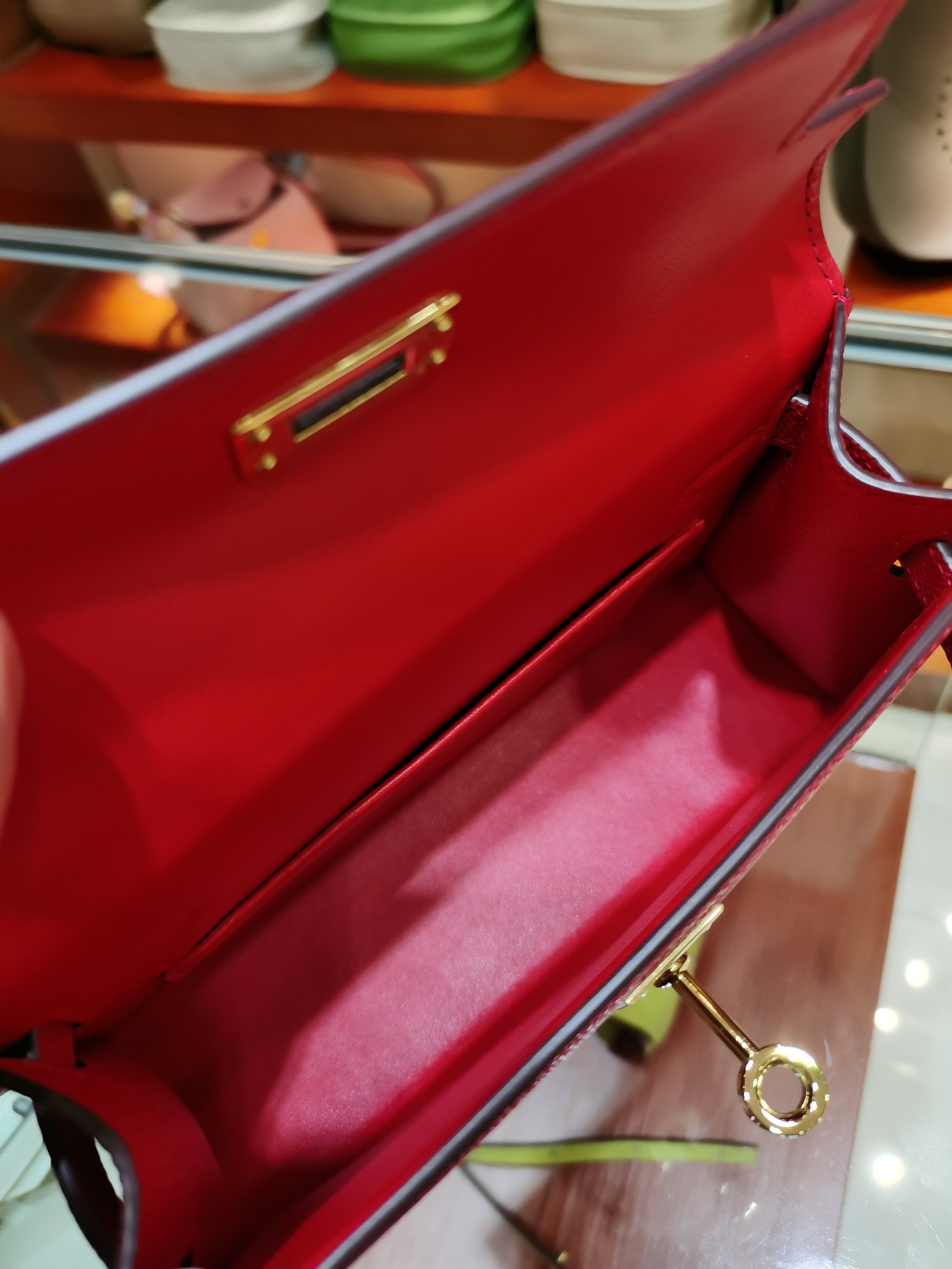 제품 이름: Kelly 사이즈: 19*14*6 가죽 종류: Epsom 색상: Rouge Cœur