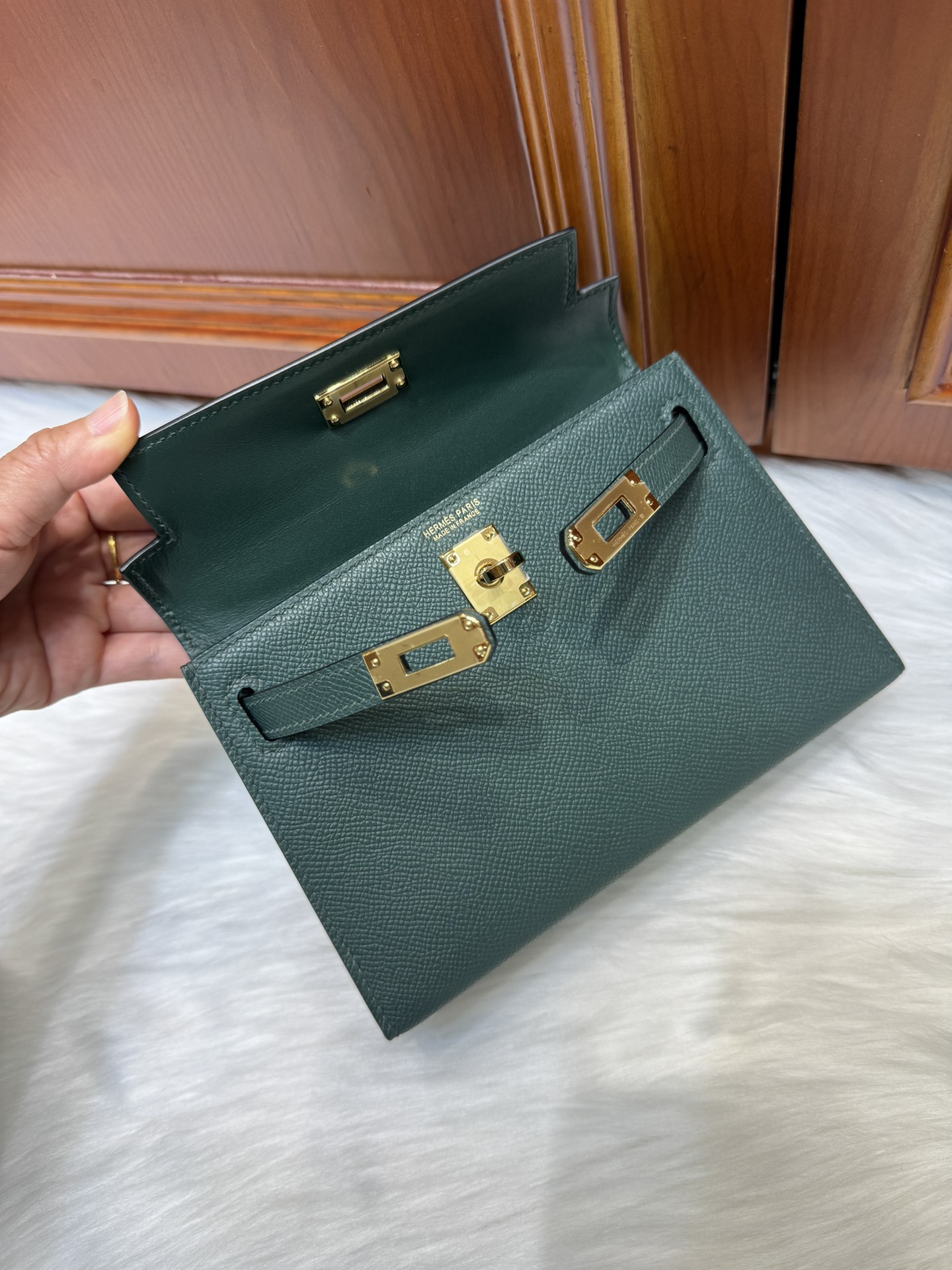 제품 이름: Kelly 사이즈: 19*14*6 가죽 종류: Epsom 색상: Vert Cypres