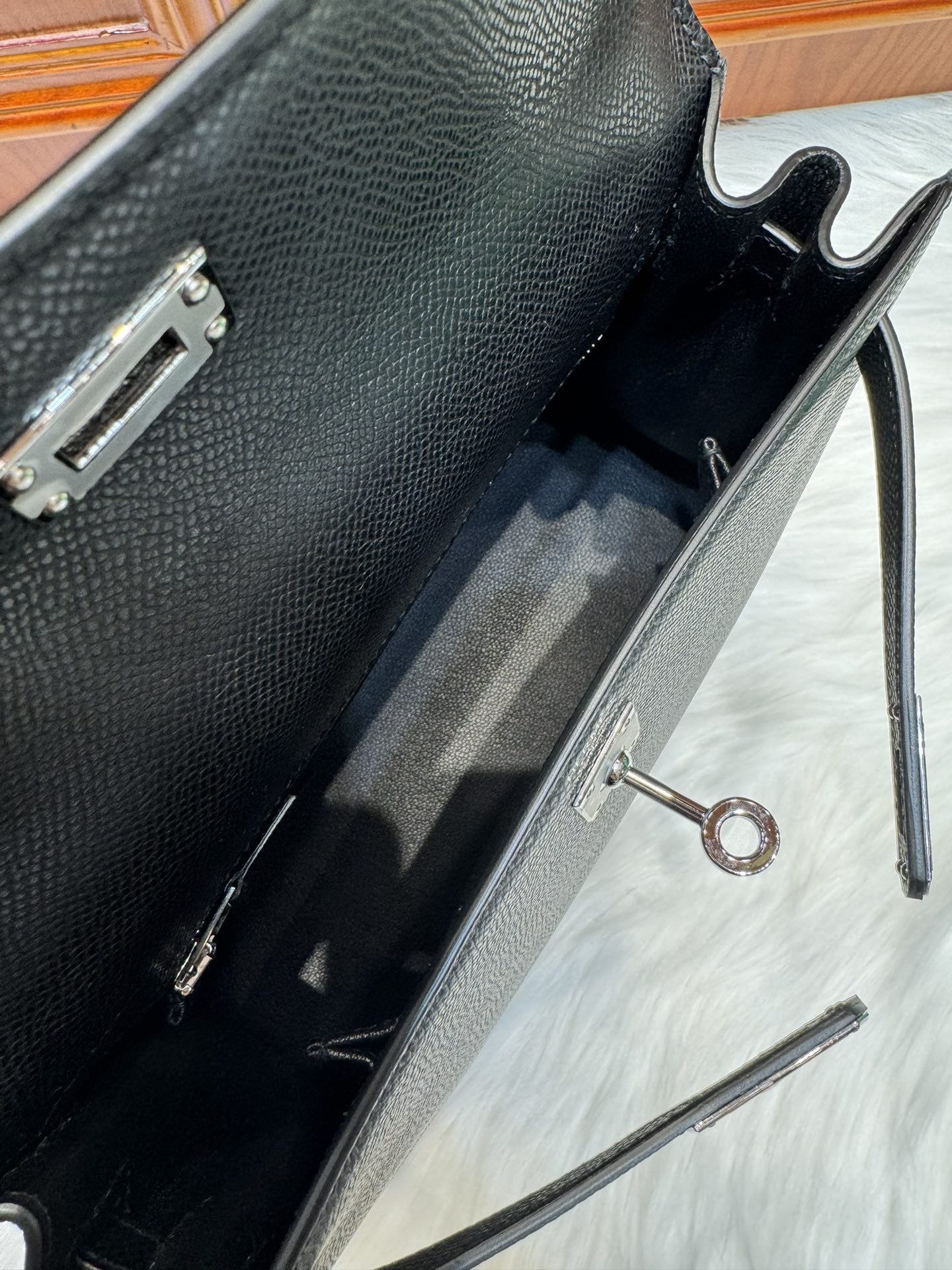 제품 이름: Kelly 사이즈: 25*18*10 가죽 종류: Epsom 색상: Noir
