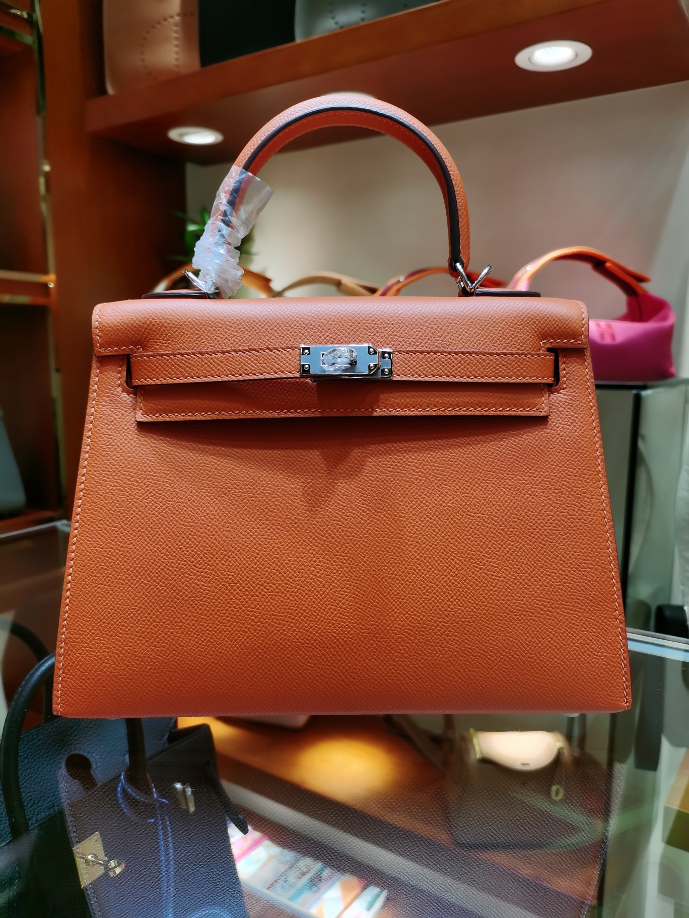 제품 이름: Kelly 사이즈: 25*18*10 가죽 종류: Epsom 색상: Orange