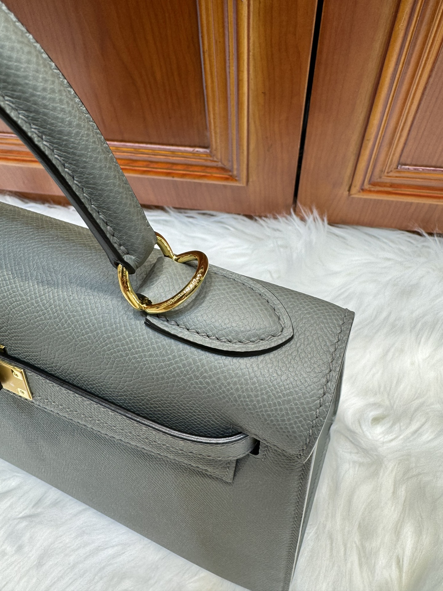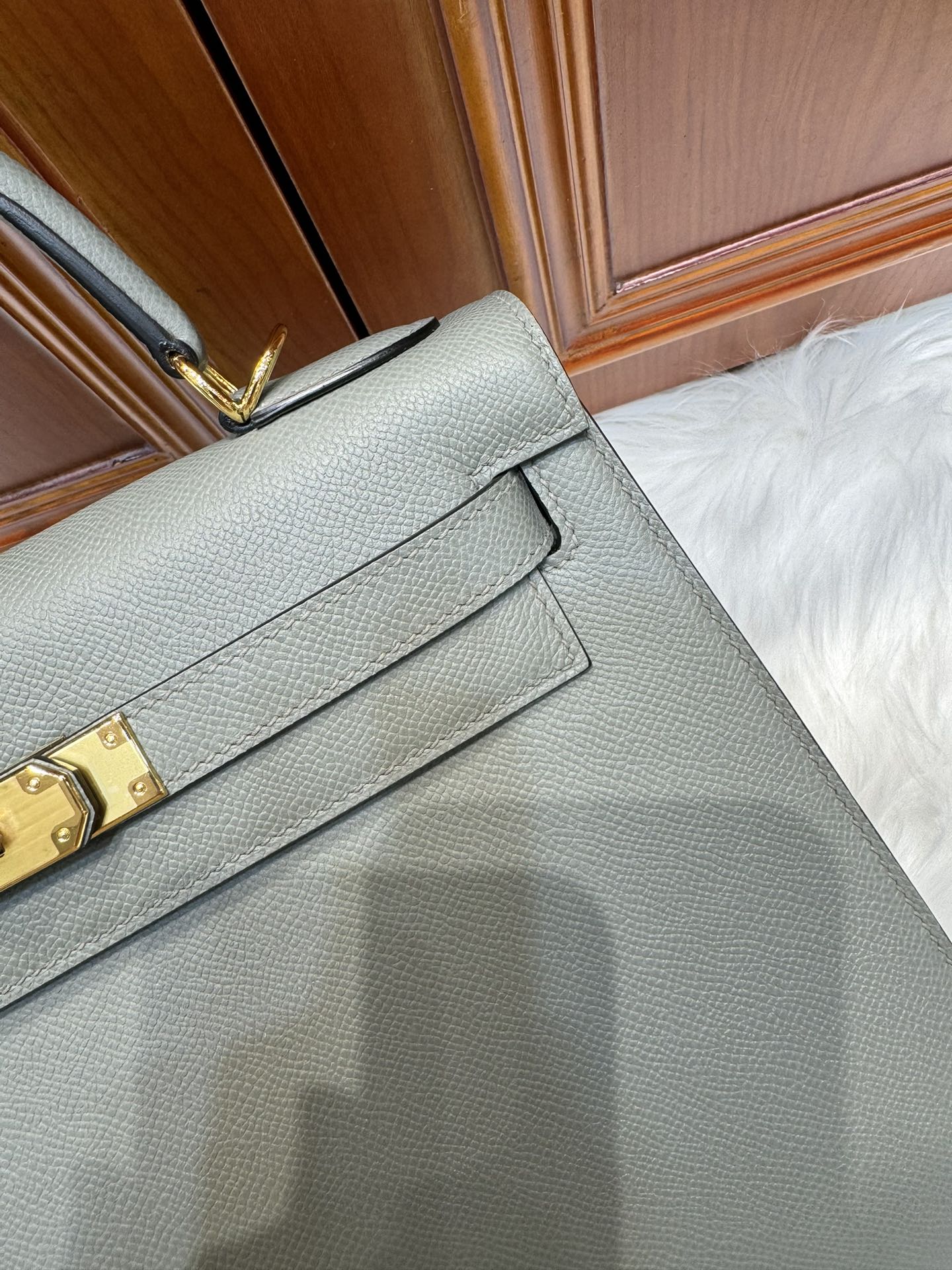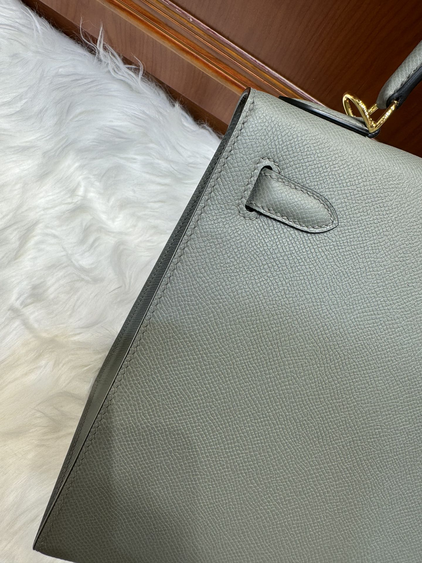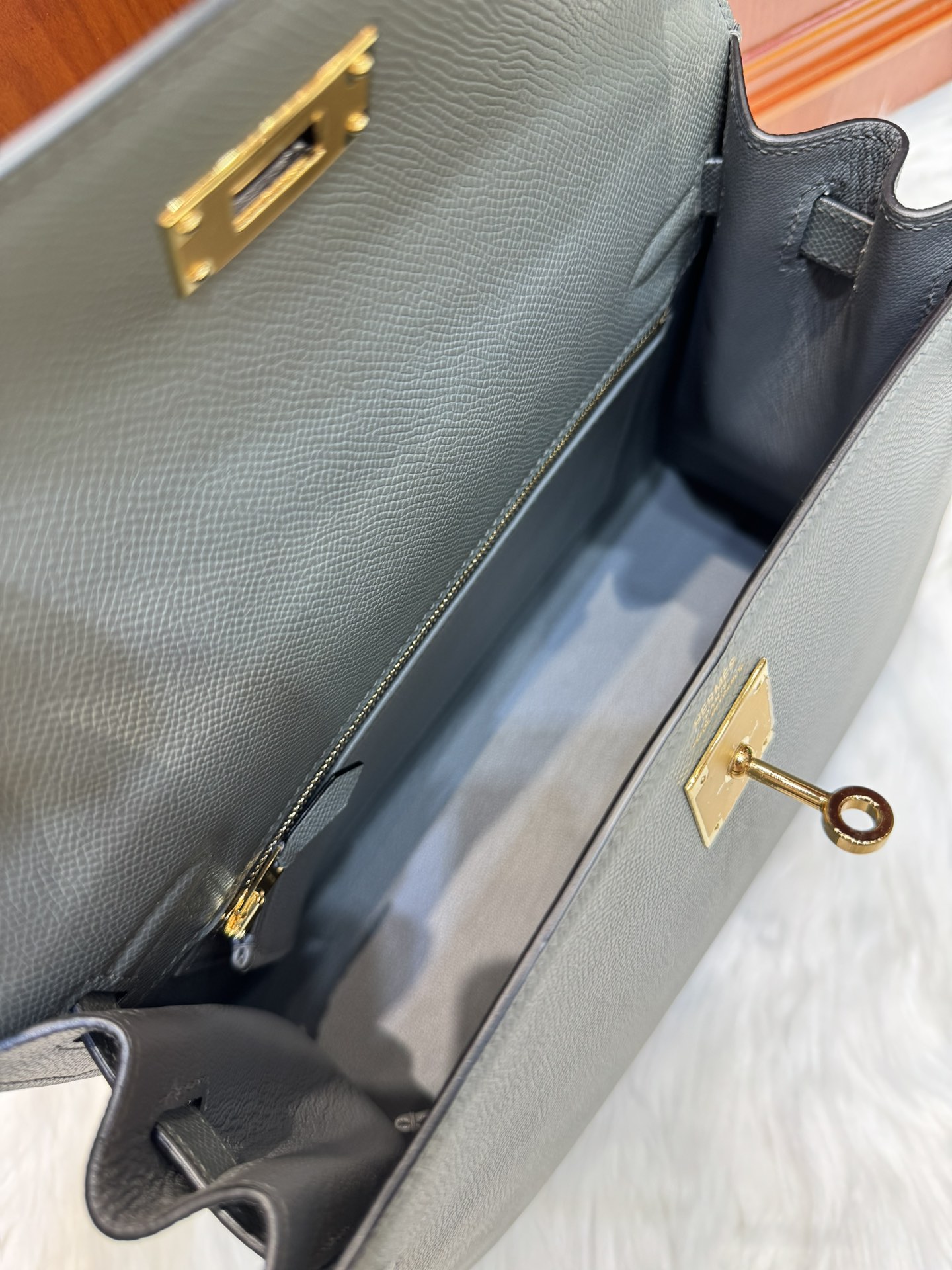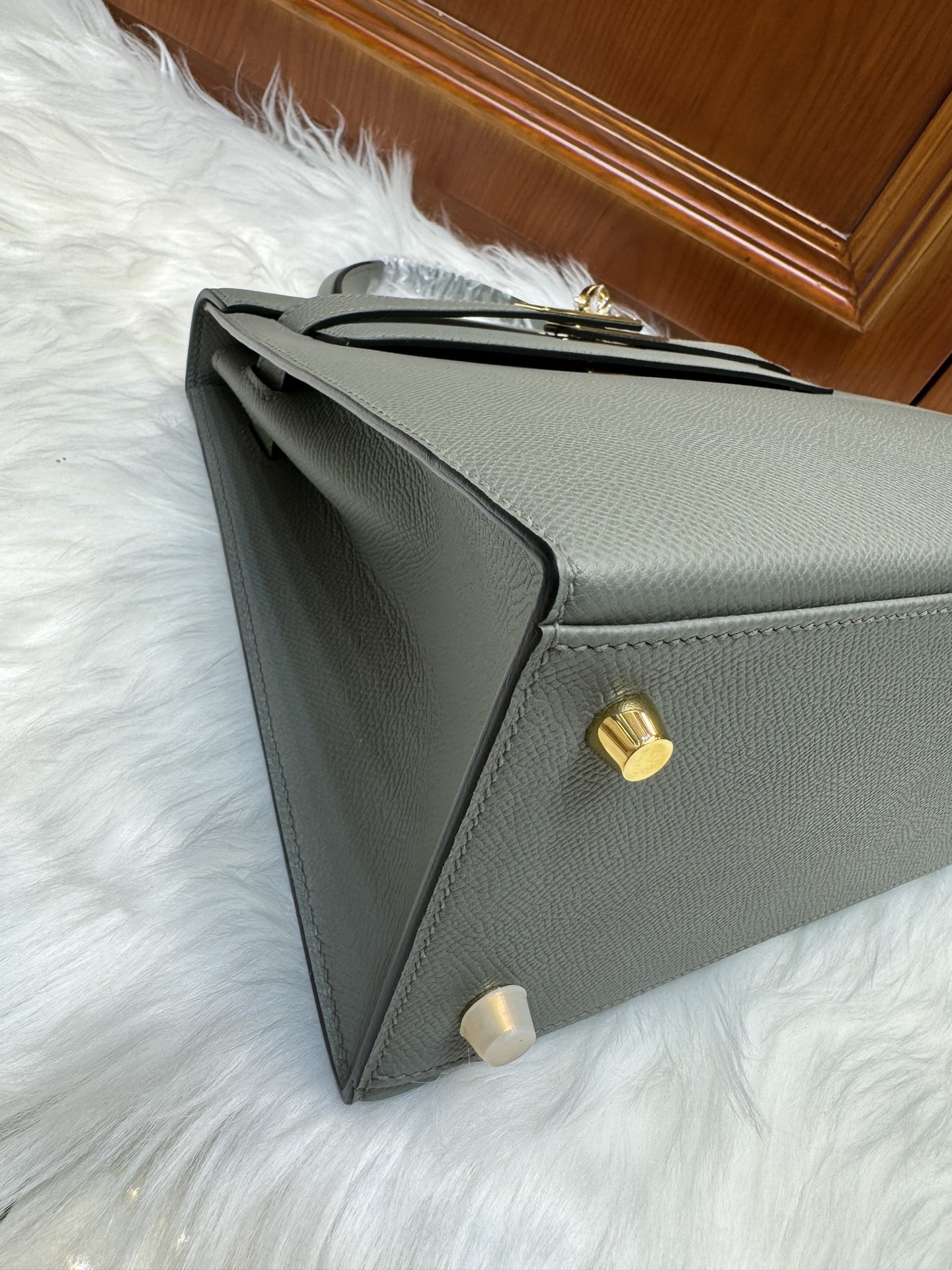 제품 이름: Kelly 사이즈: 28*16*4 가죽 종류: Epsom 색상: Gris Orage