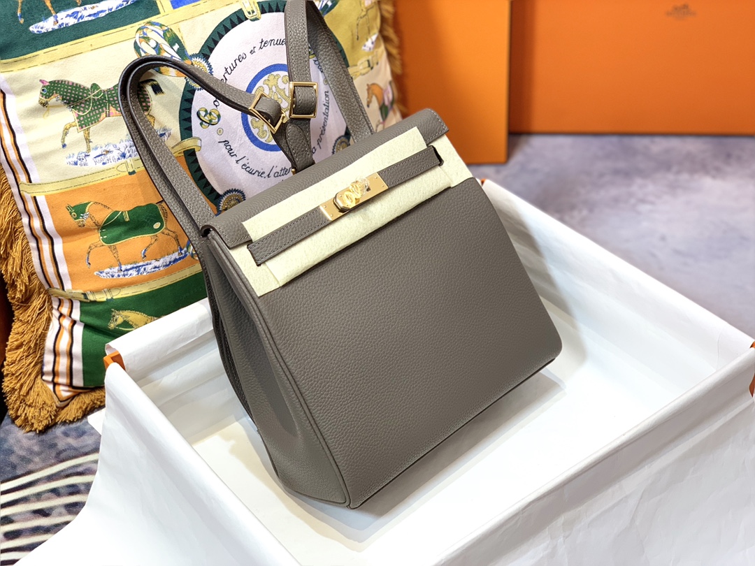 [에르메스] 켈리 Ado Backpack 22cm Togo/ Gris Meyer – Gold
