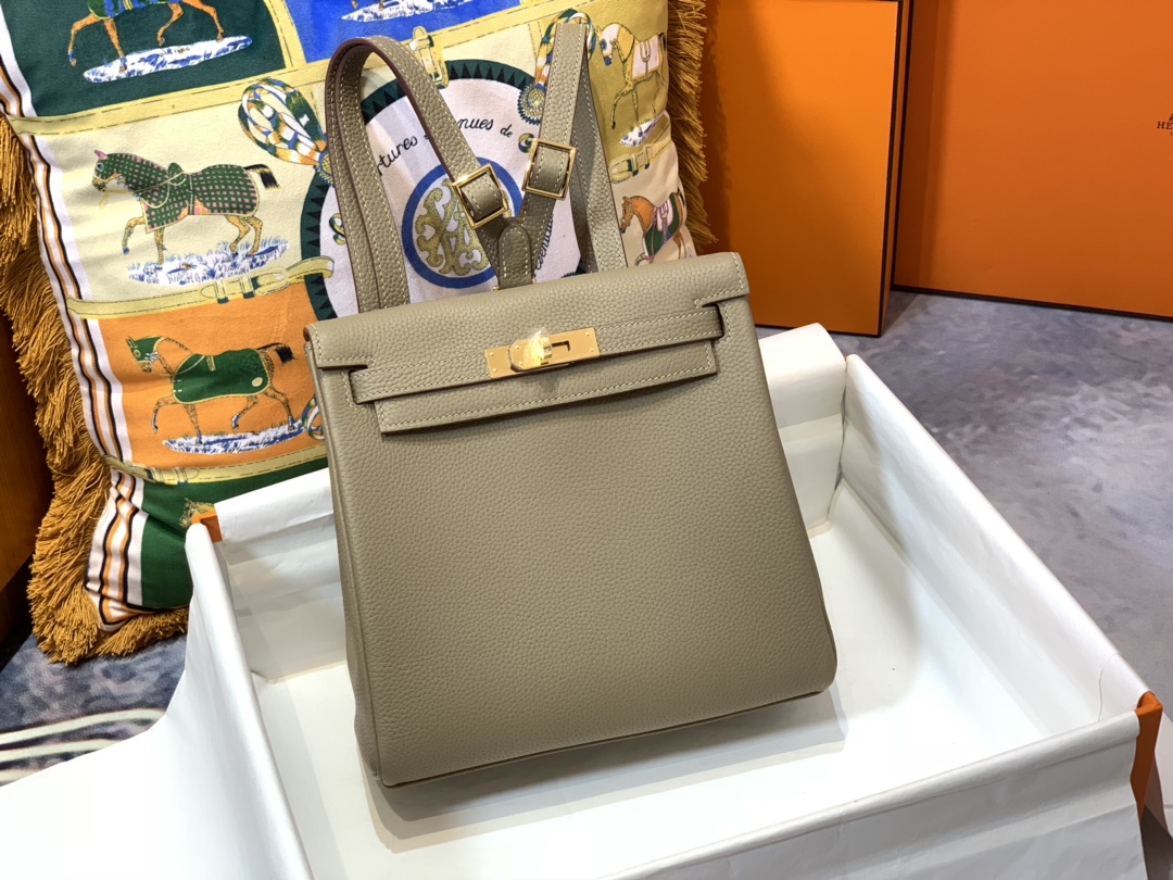 제품 이름: Kelly Ado Backpack 사이즈: 22*21.5*10 가죽 종류: Togo 색상: Gris Tourterelle