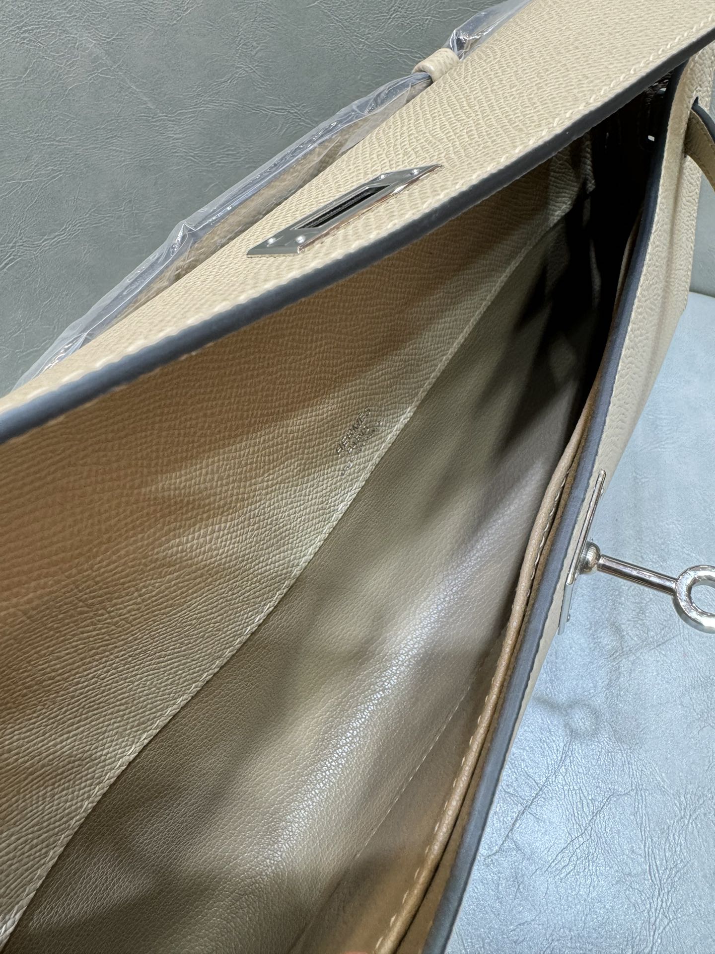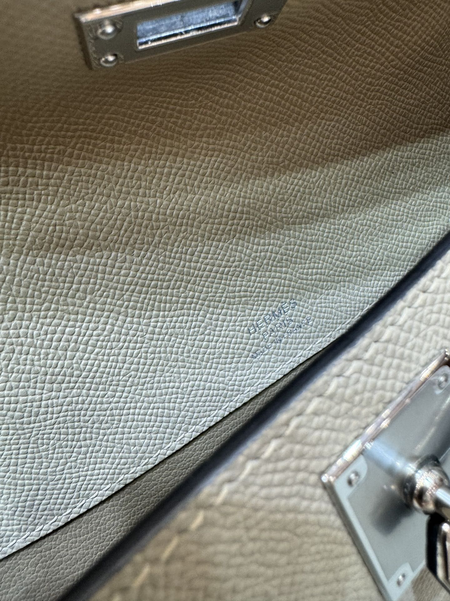 제품 이름: Kelly Cut 사이즈: 31*13*2.5 가죽 종류: Epsom 색상: Gris Tourterelle