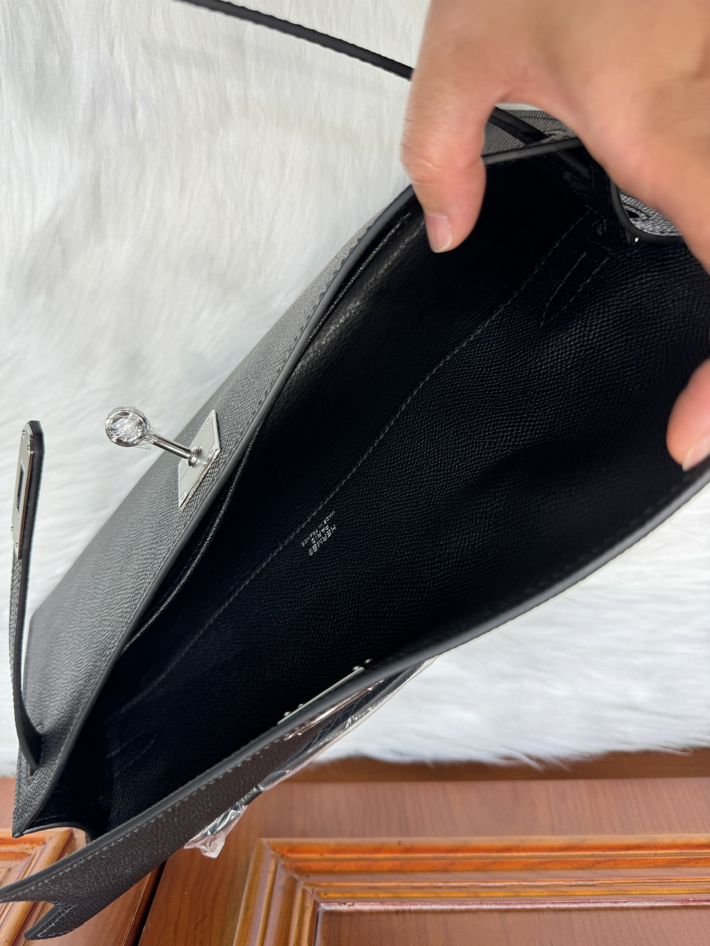 제품 이름: Kelly Cut 사이즈: 31*13*2.5 가죽 종류: Epsom 색상: Noir