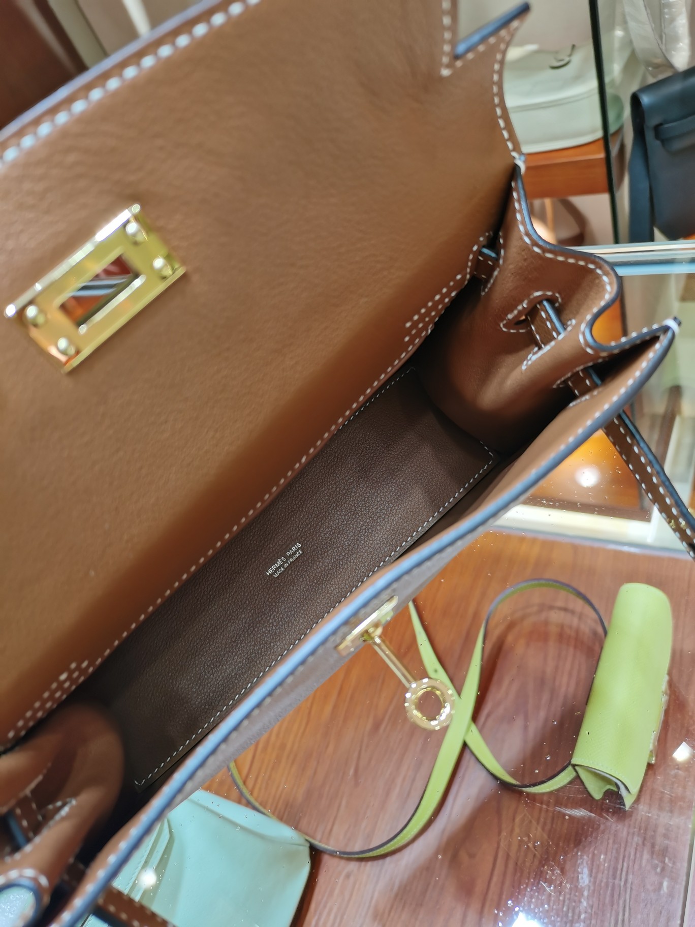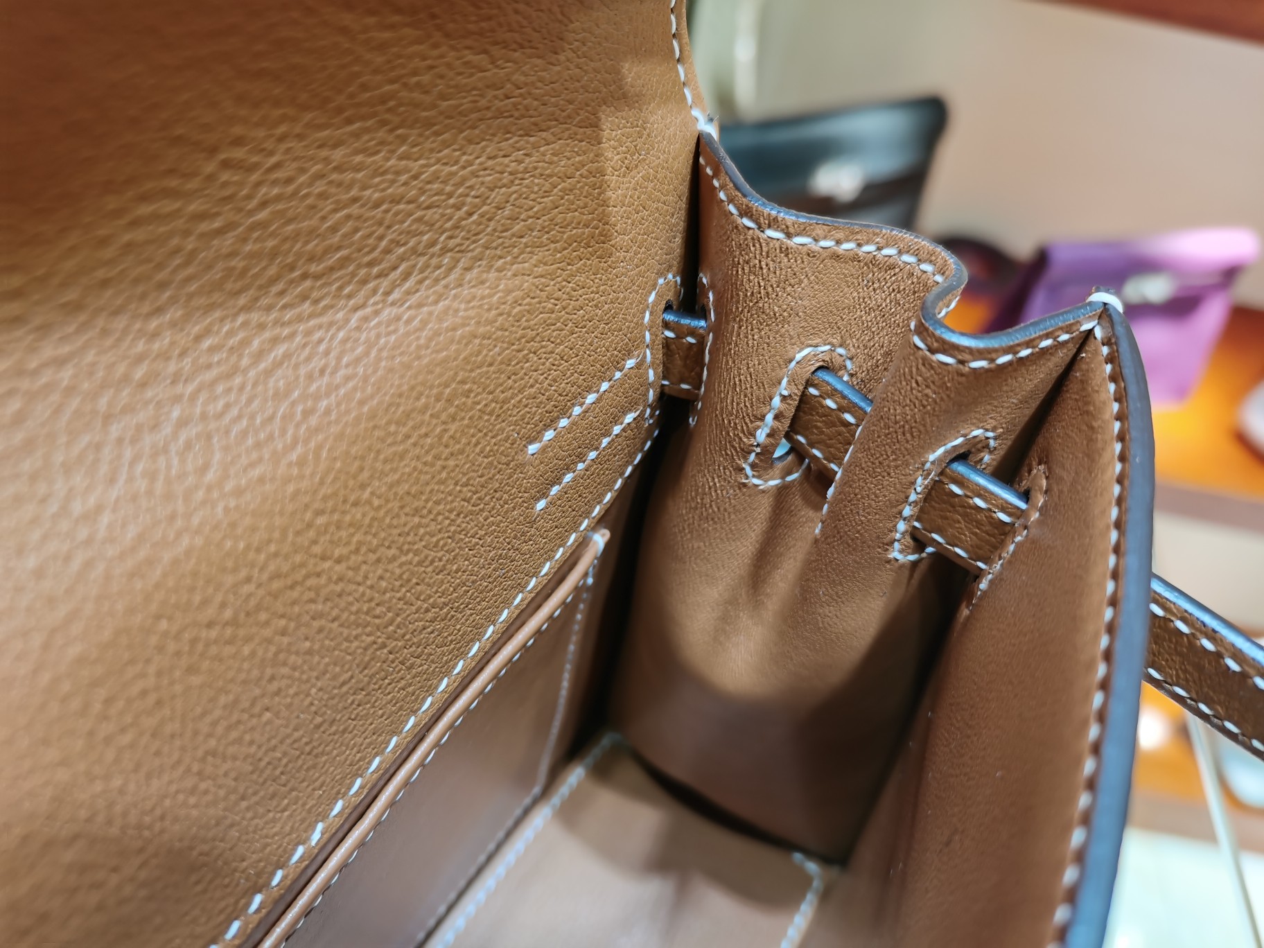 제품 이름: Kelly Dance 사이즈: 22*17*7 가죽 종류: Evercolor 색상: Chai