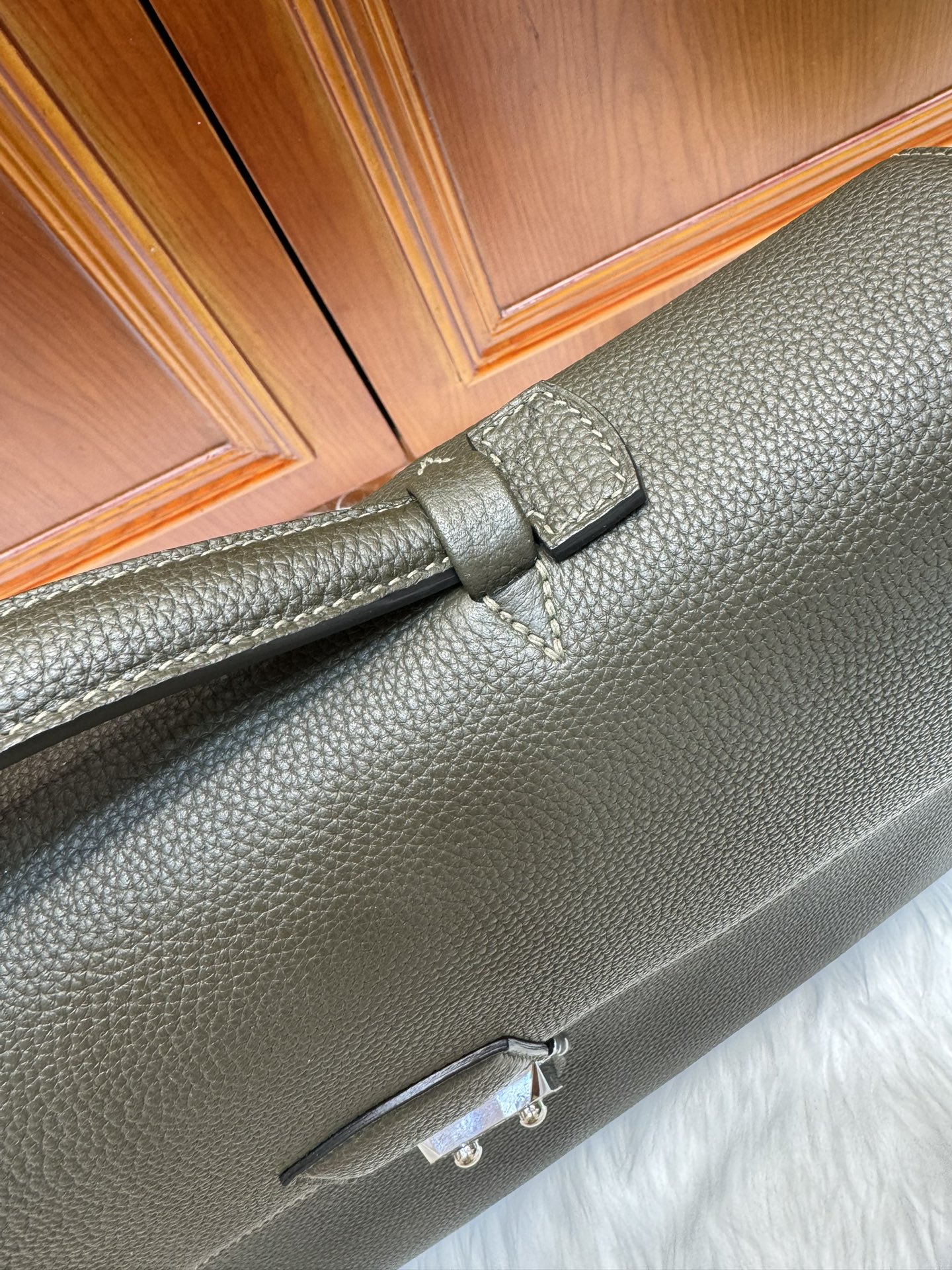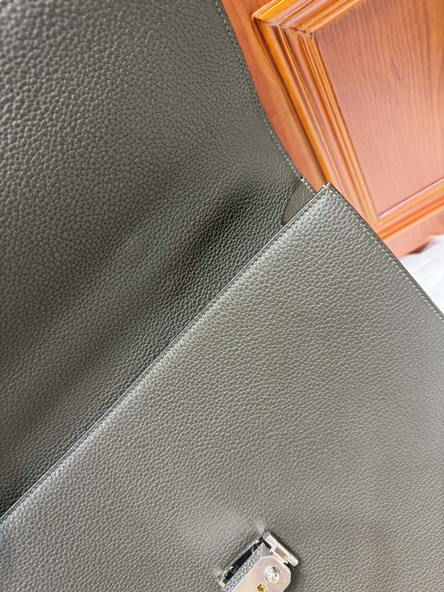 제품 이름: Kelly Depeches 사이즈: 38*30*8cm 가죽 종류: Togo 색상: Gris Etain