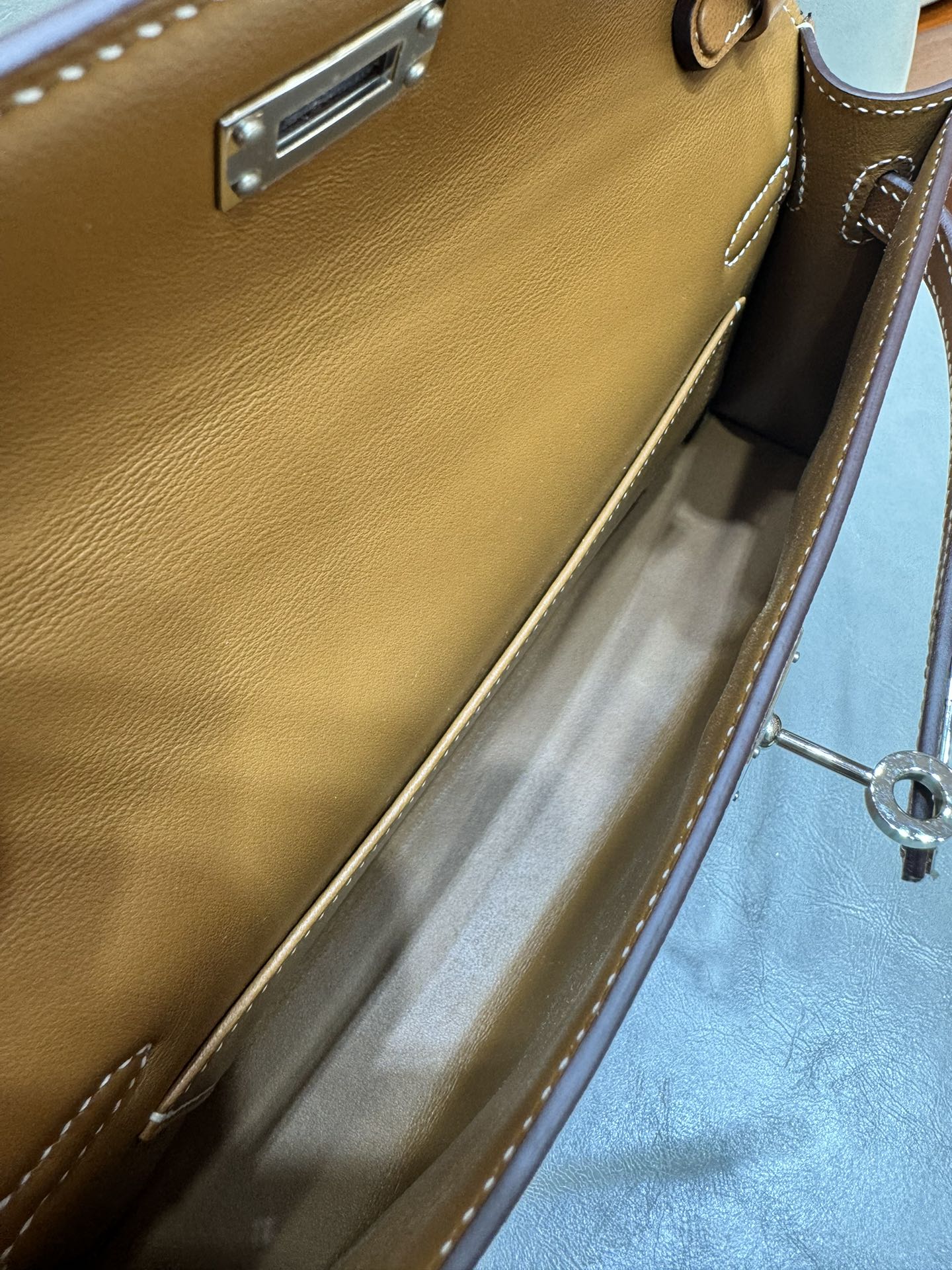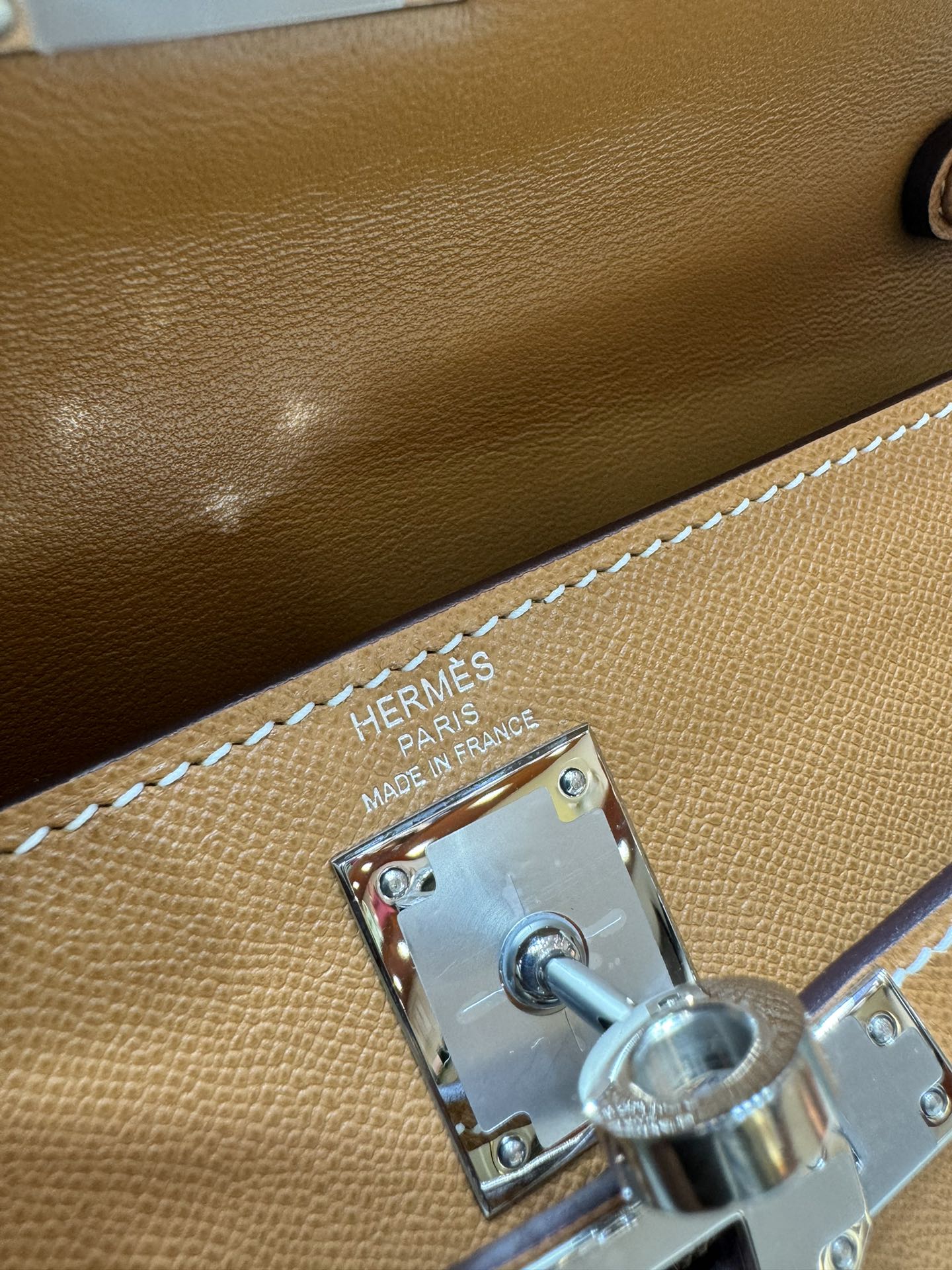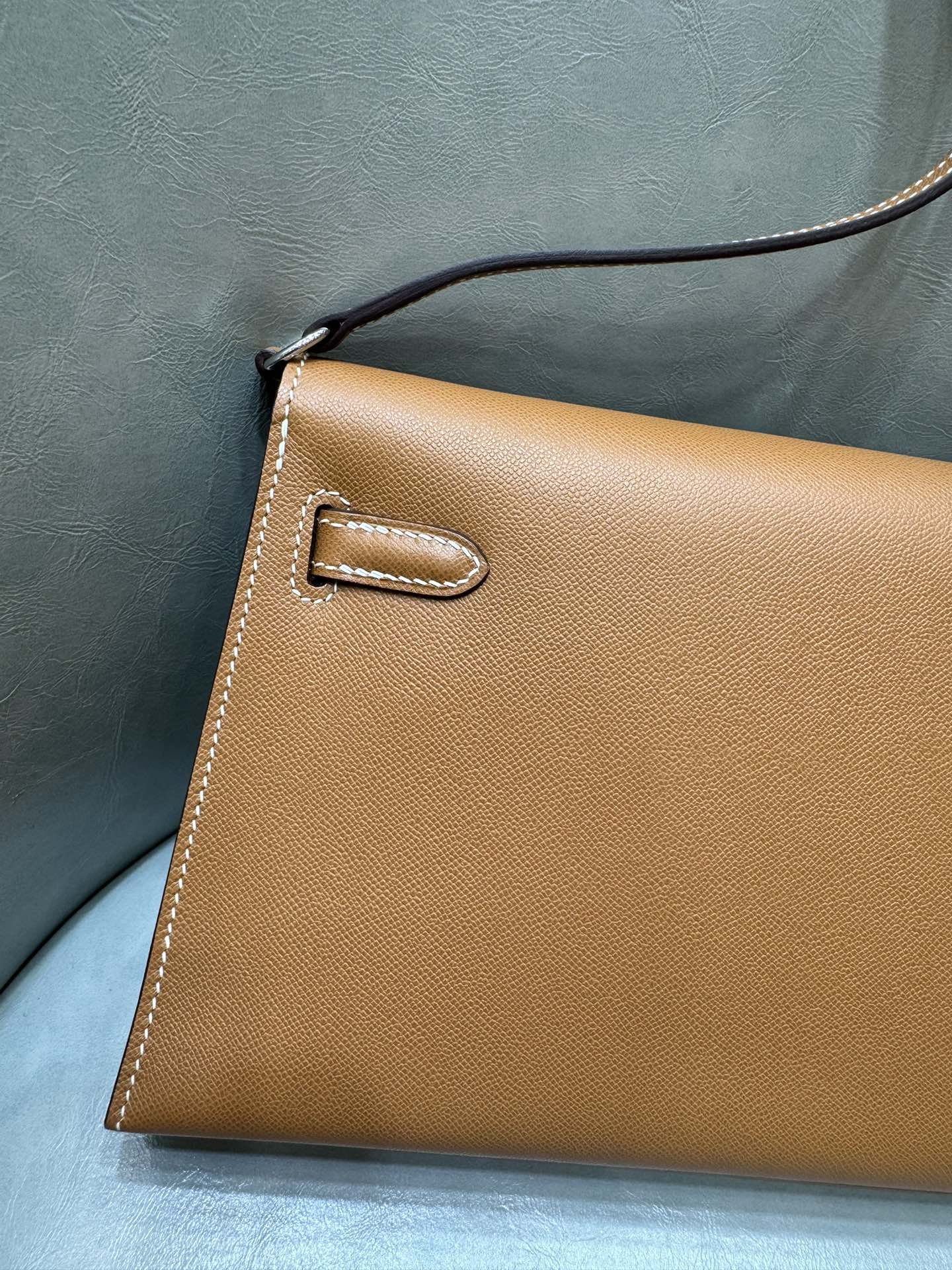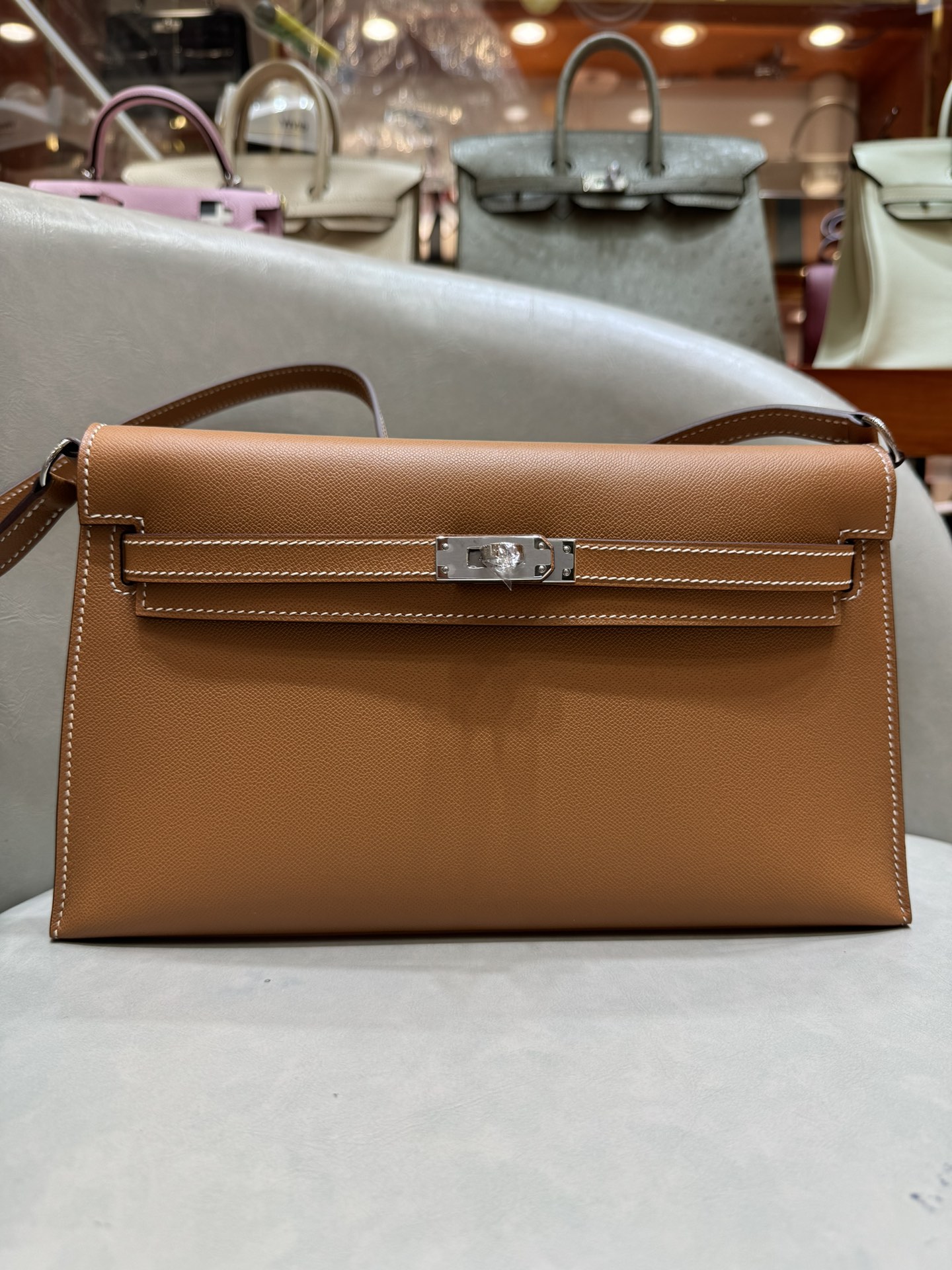 제품 이름: Kelly Elan 사이즈: 27*15*4 가죽 종류: Veau Madame 색상: Gold