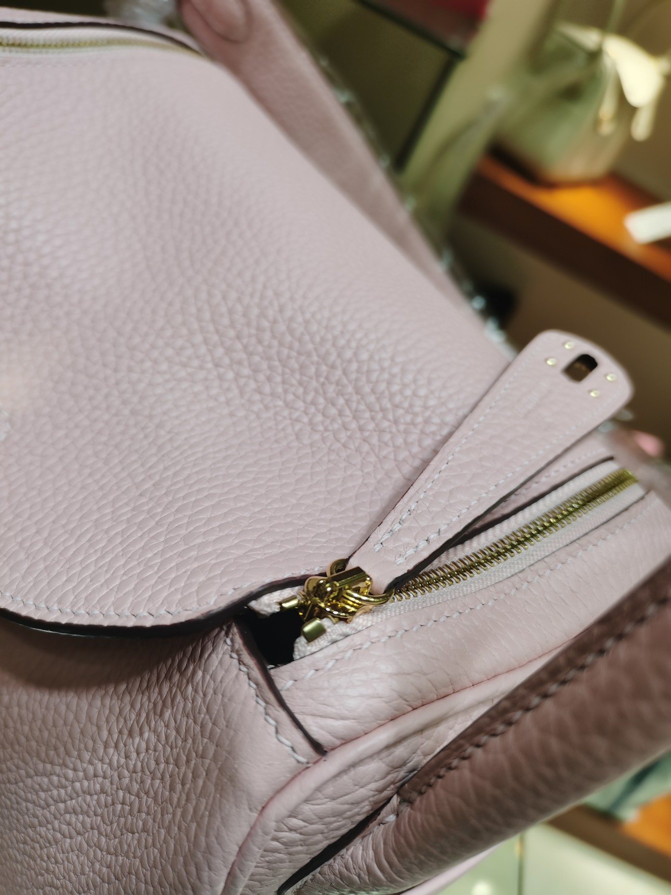 제품 이름: Lindy 사이즈: 26*18*14cm 가죽 종류: Taurillon Clemence 색상: Rose Sakura