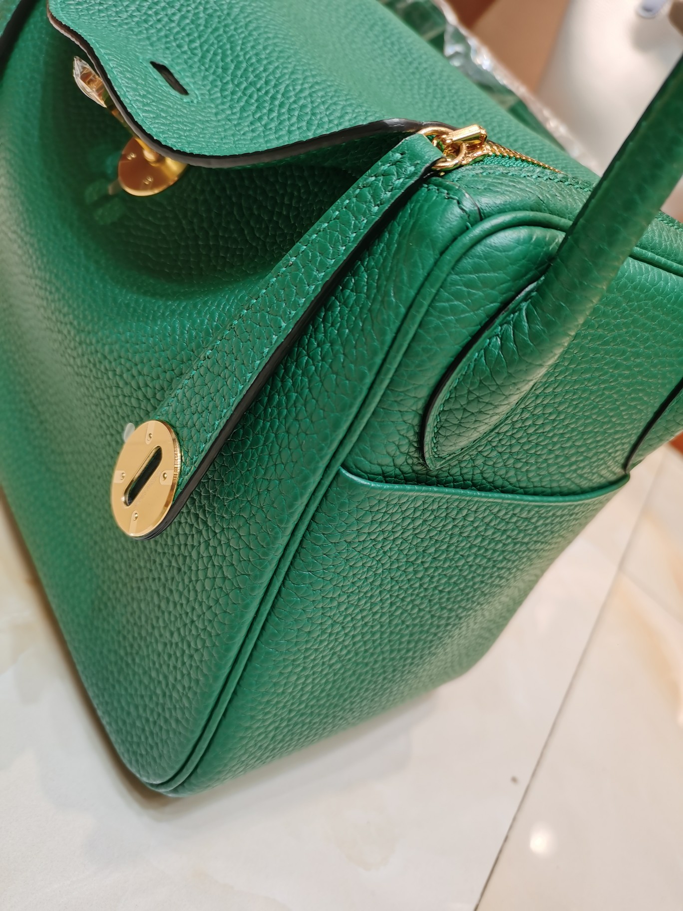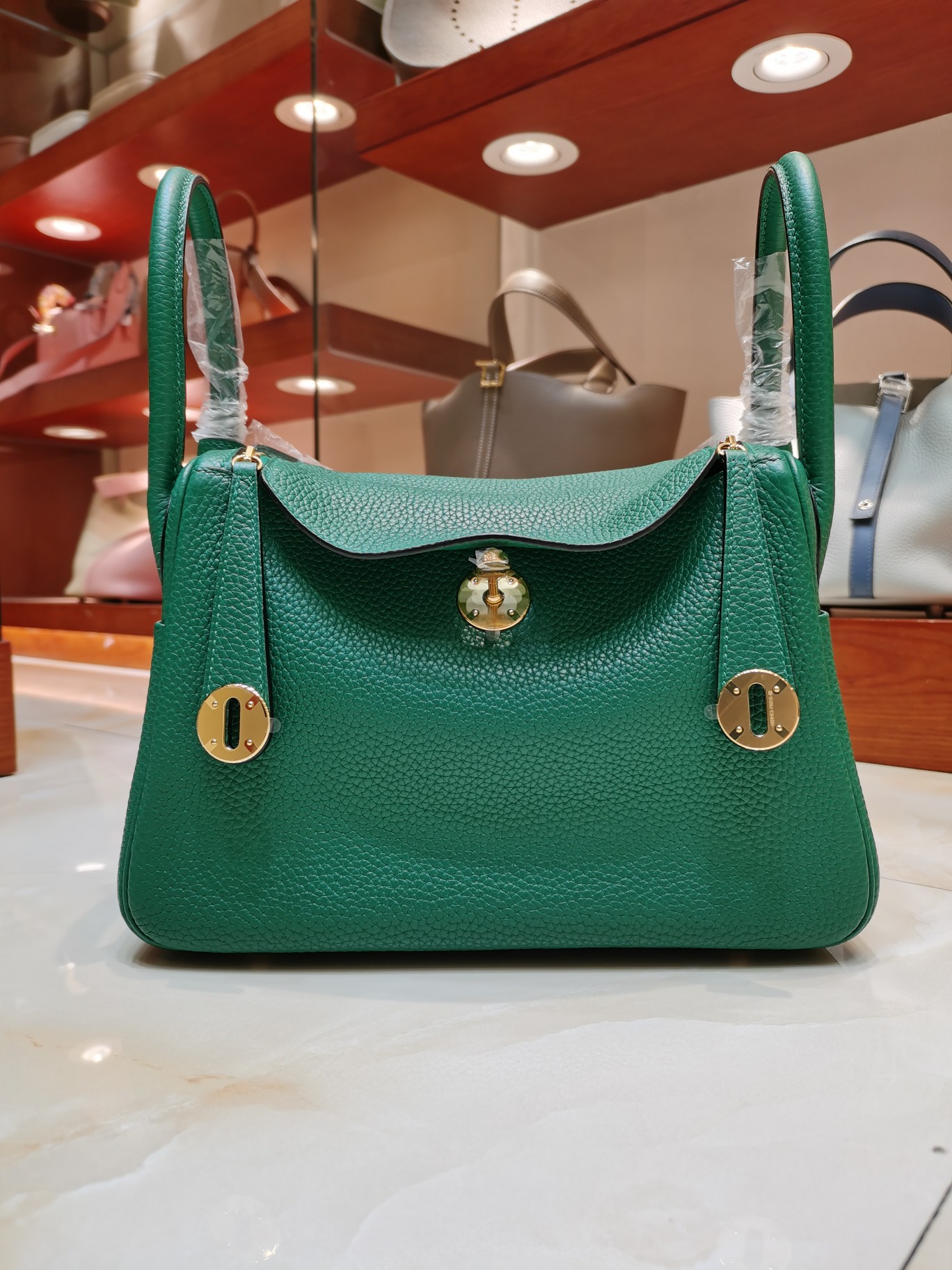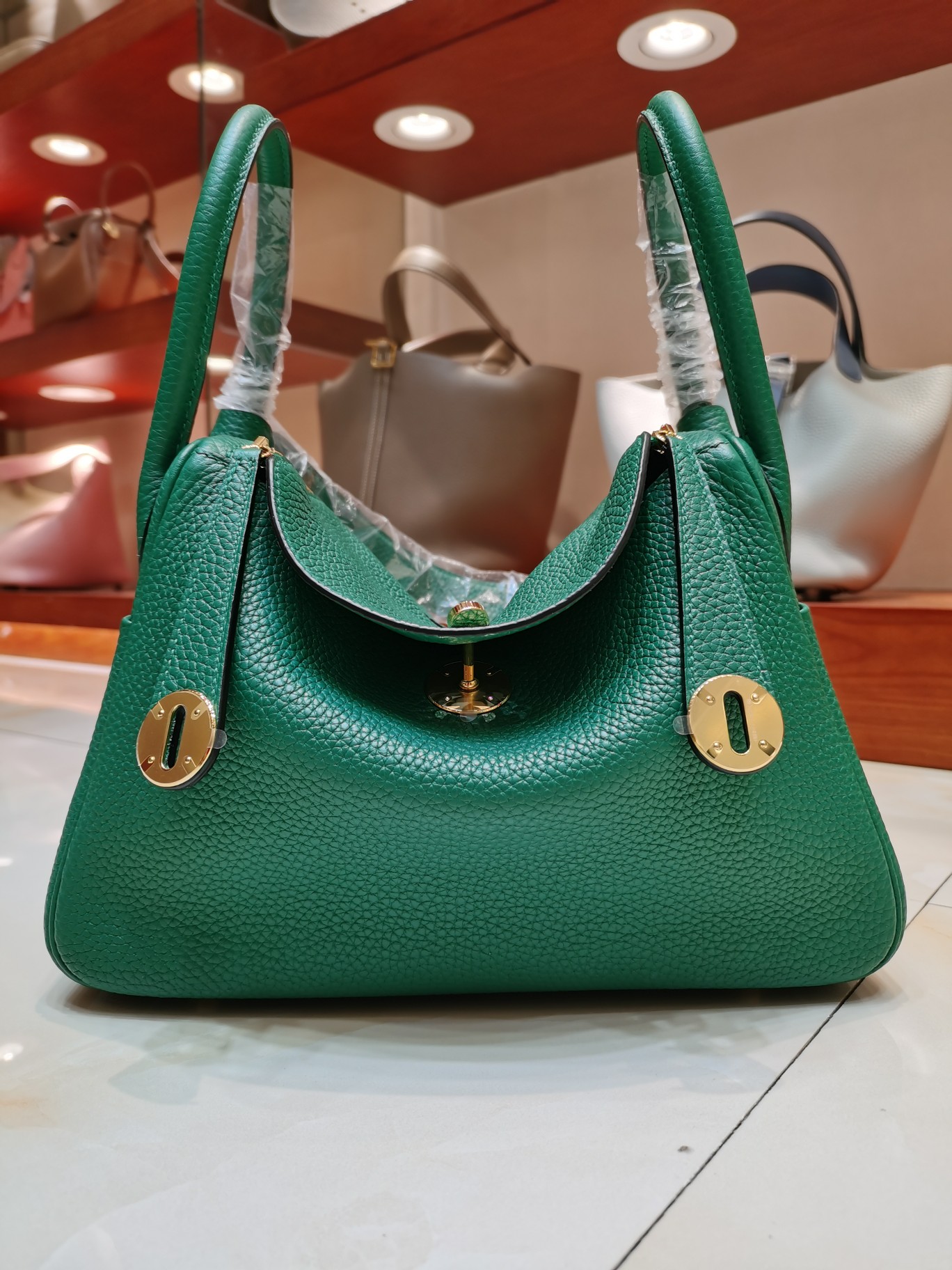 [에르메스] 린디 26cm Taurillon Clemence/ Vert Vertigo – Gold