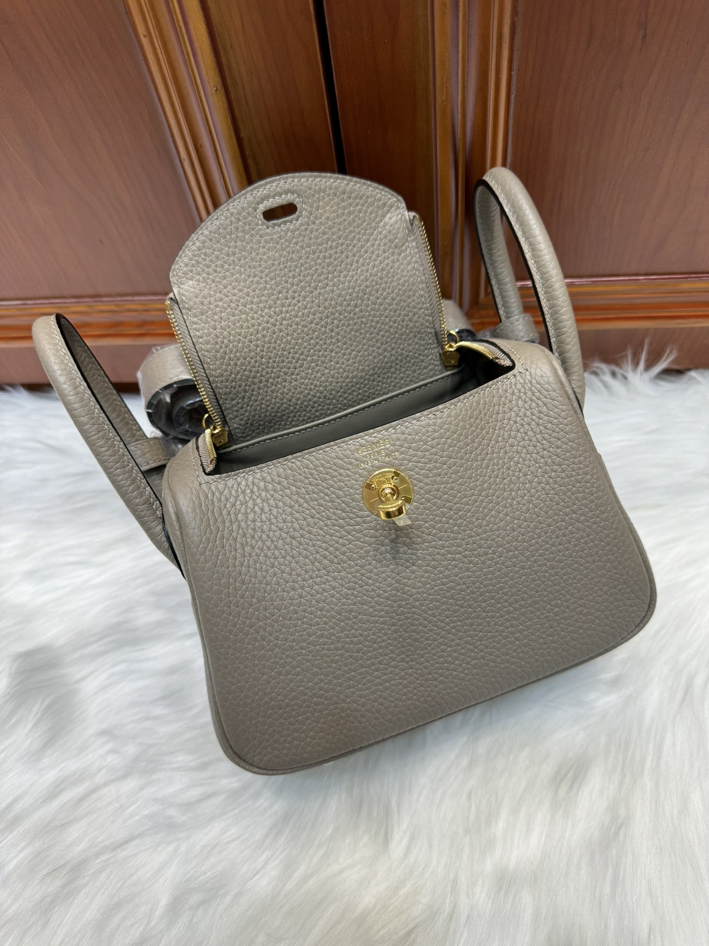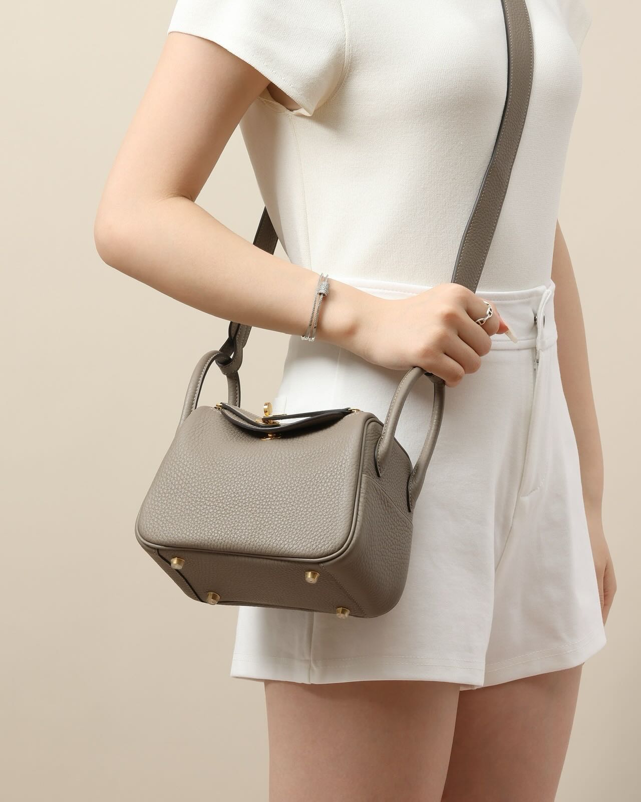 제품 이름: Lindy Mini 사이즈: 19*13*9cm 가죽 종류: Clemence 색상: Gris Asphalt