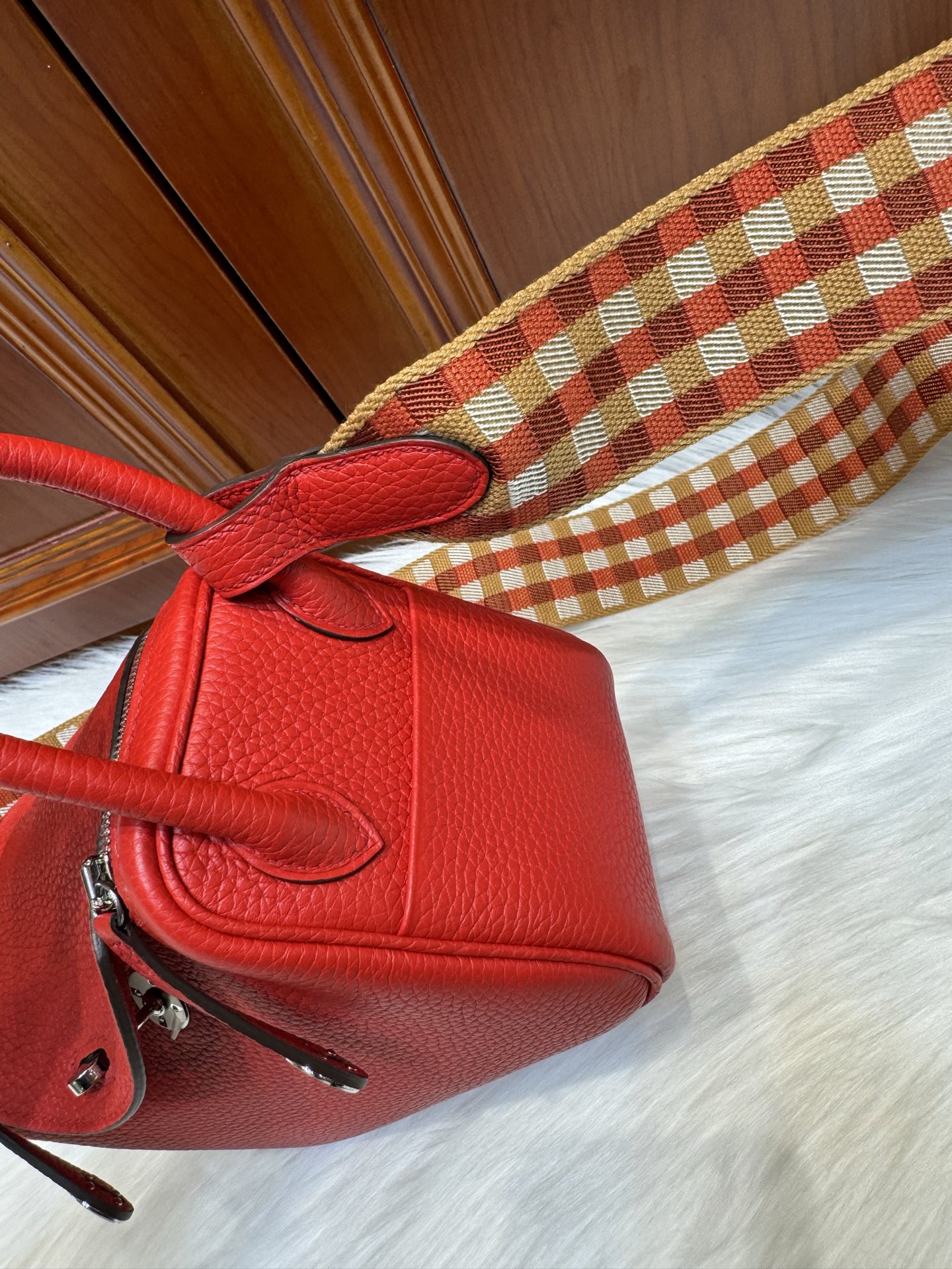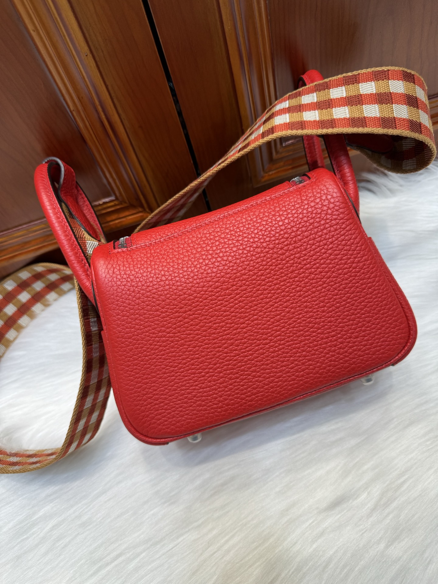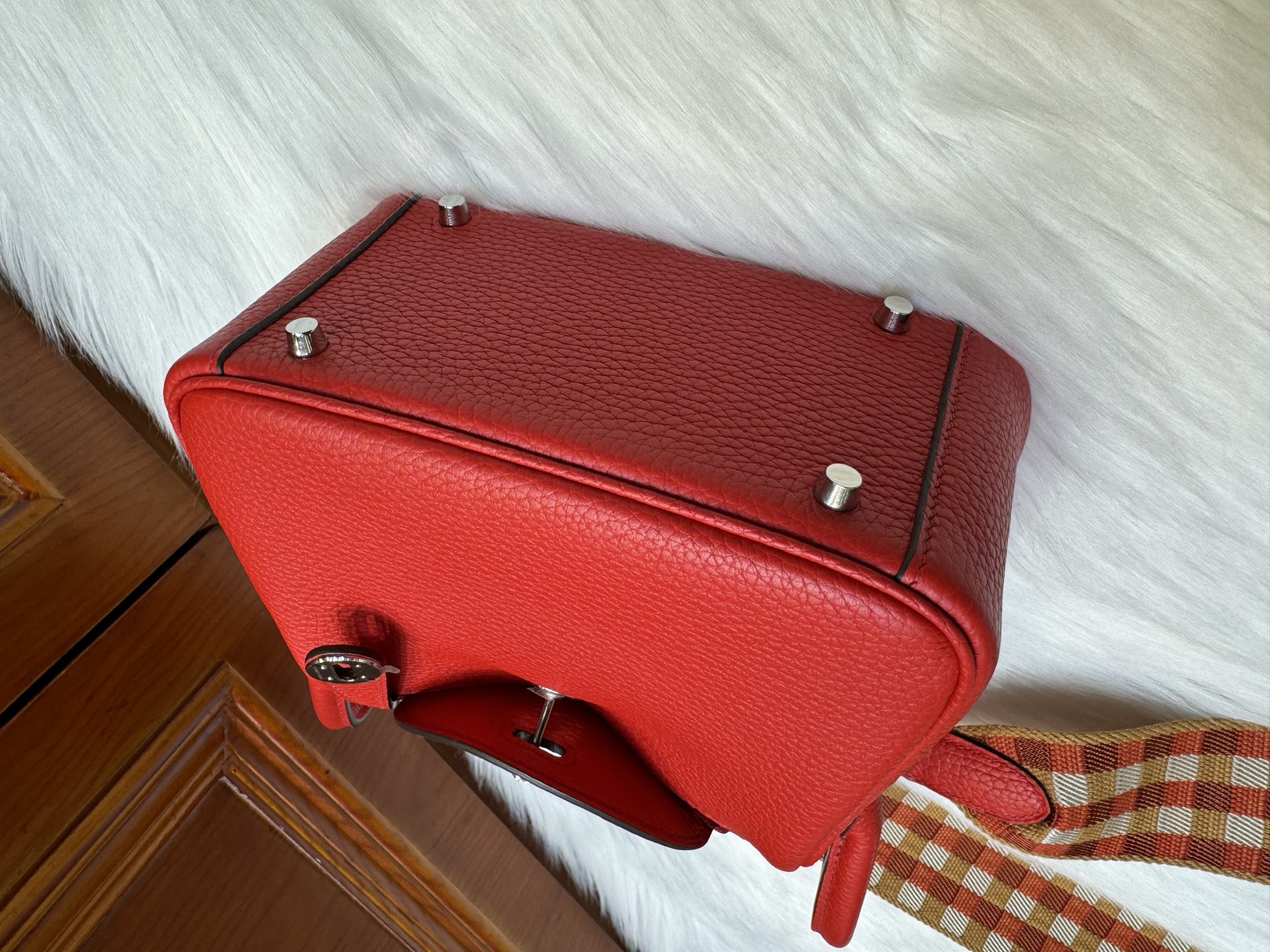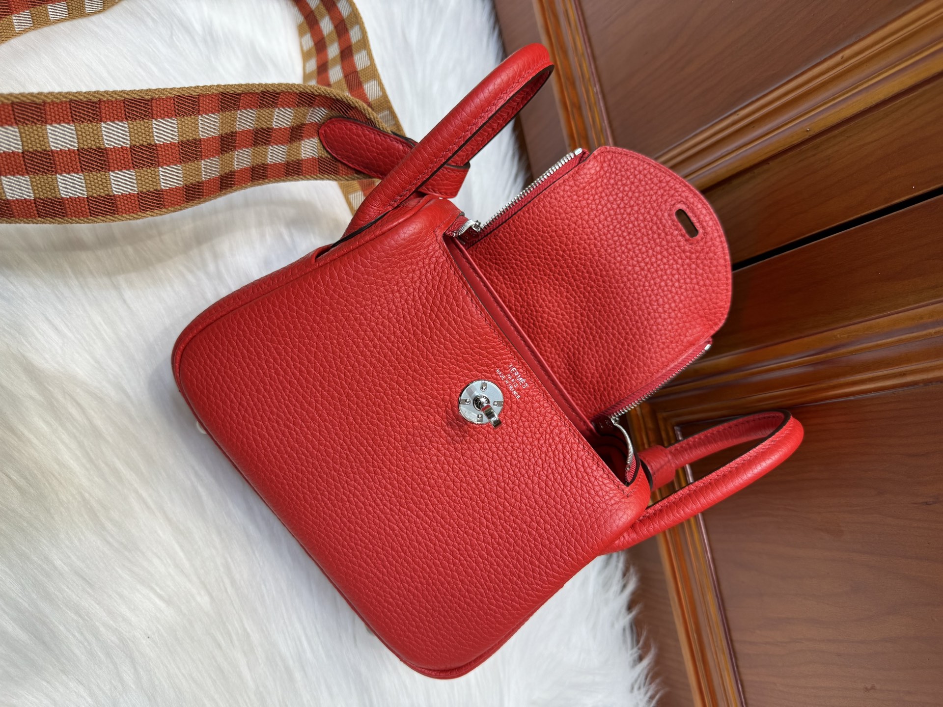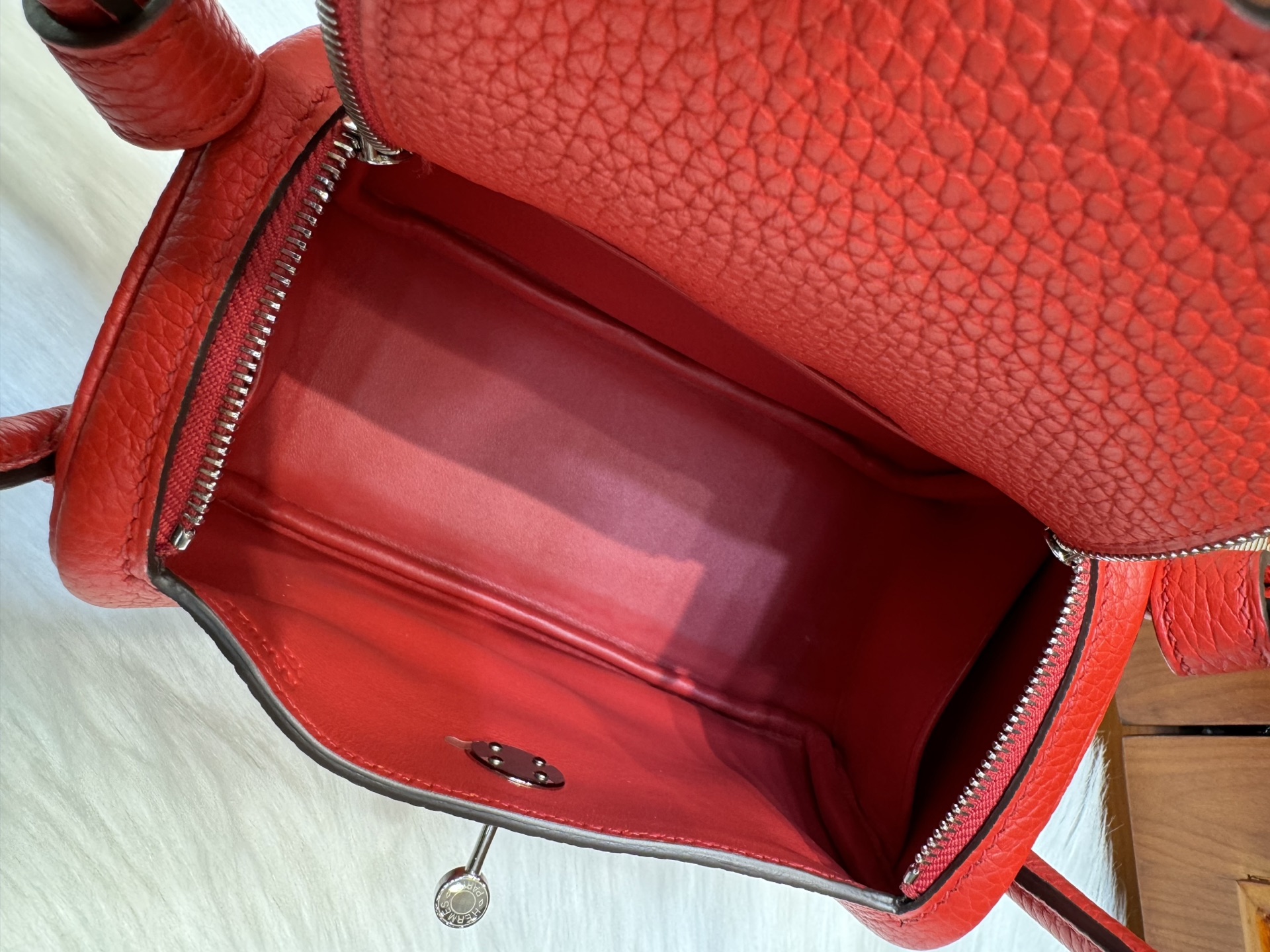 [에르메스] 린디 Mini 19cm Clemence/ Rouge Casaque – Silver