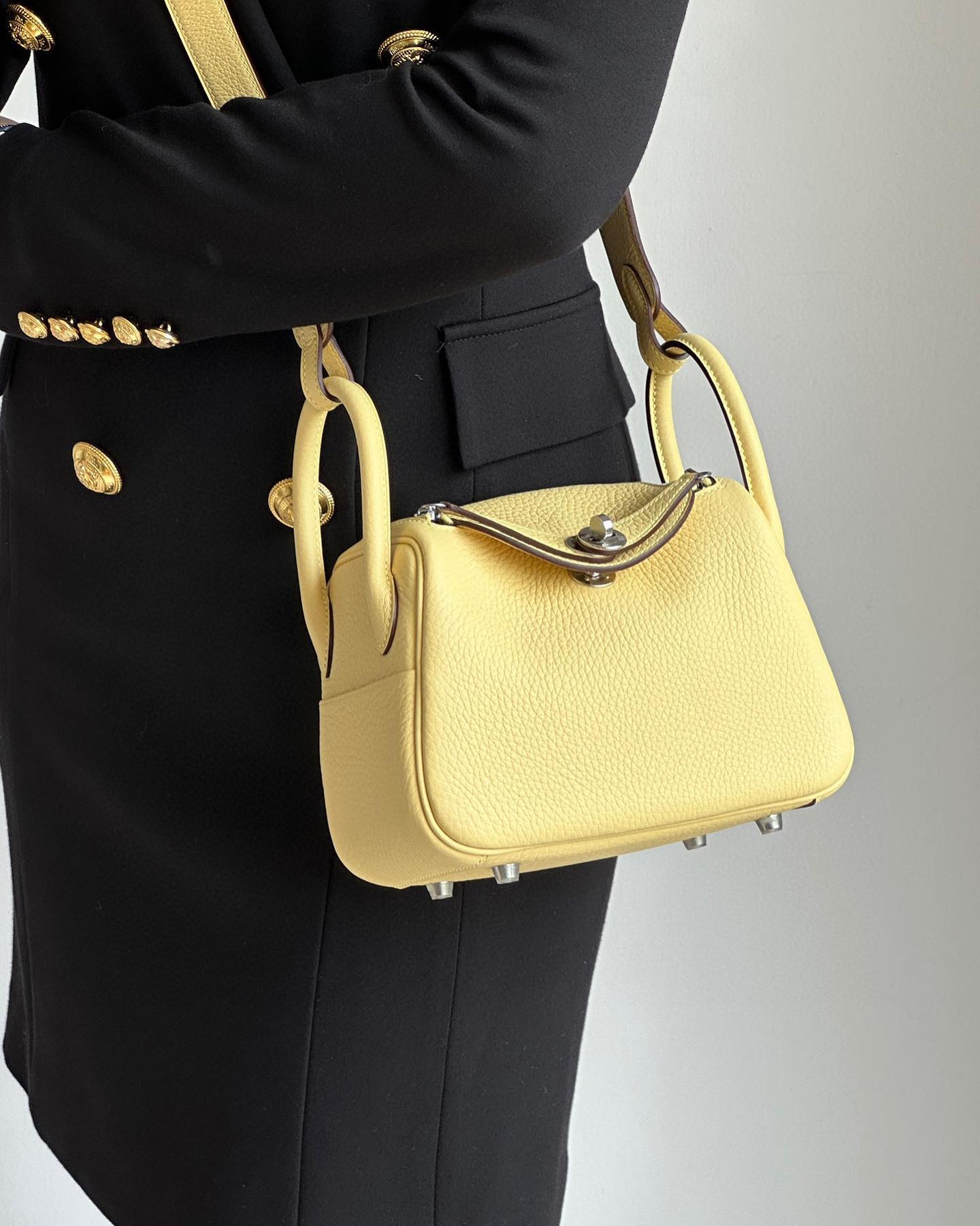 [에르메스] 린디 Mini 19cm Clemence/ Jaune Poussin – Silver