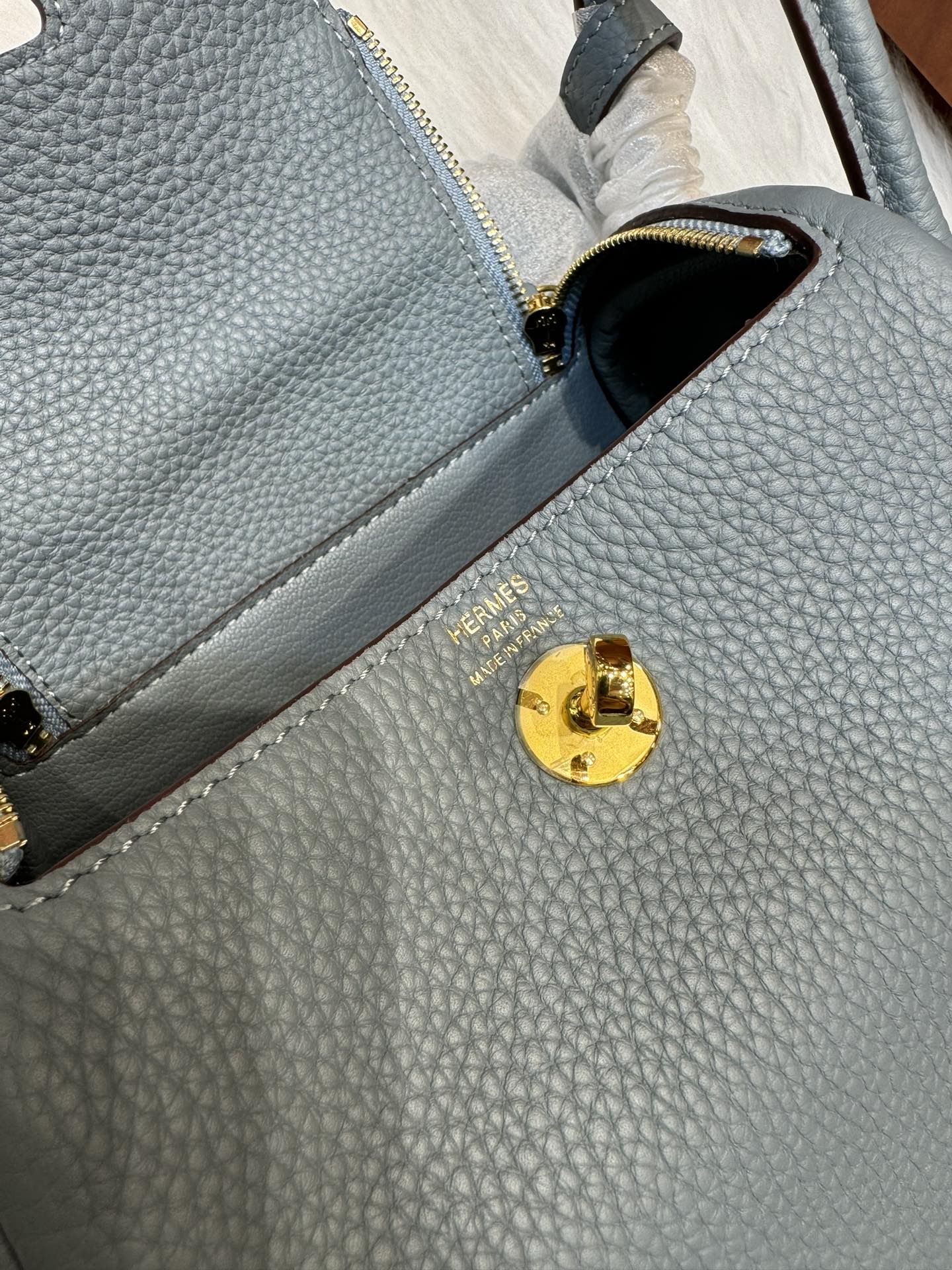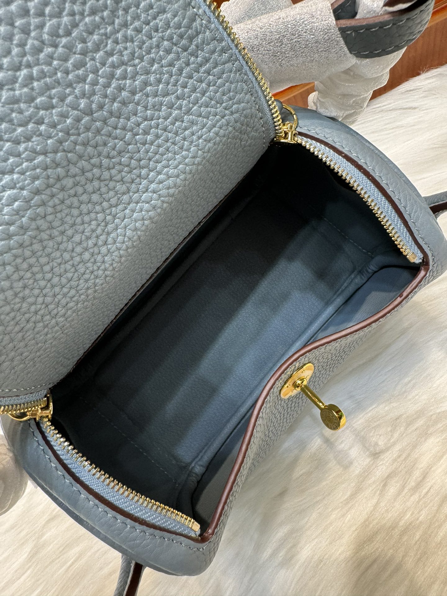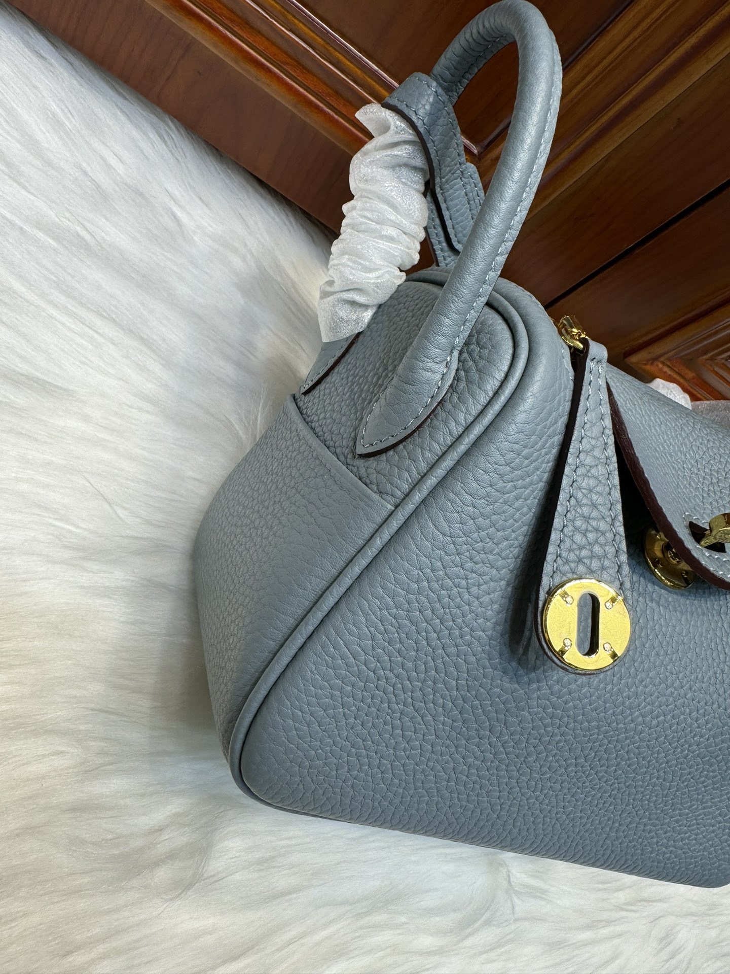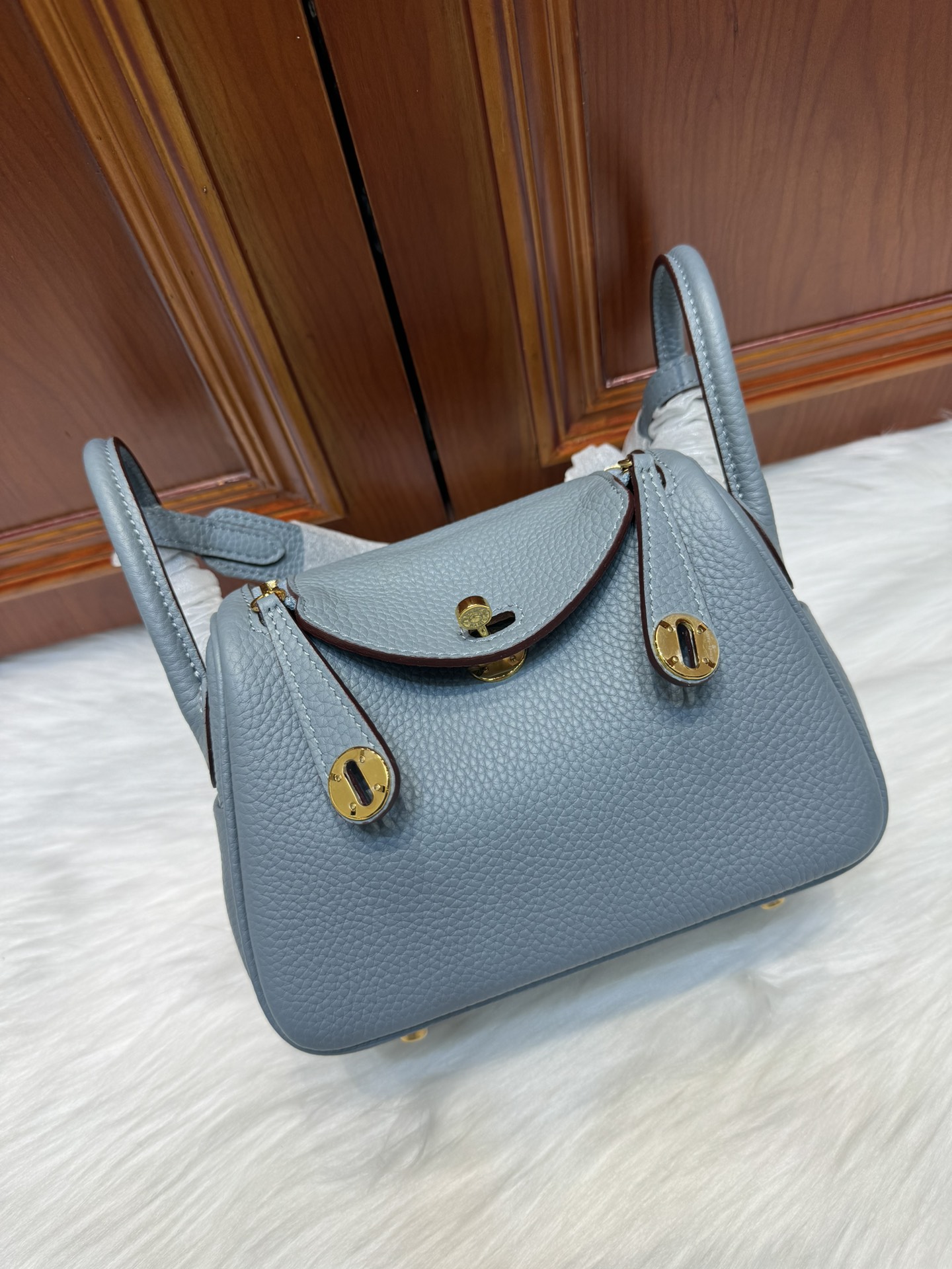 제품 이름: Lindy Mini 사이즈: 19*13*9cm 가죽 종류: Clemence 색상: Bleu Lin
