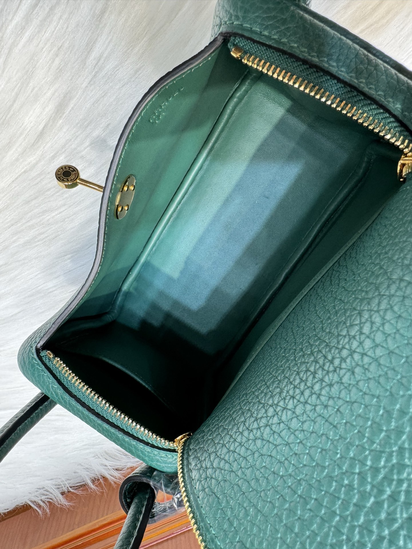 [에르메스] 린디 Mini 19cm Clemence/ Vert Vertigo – Gold