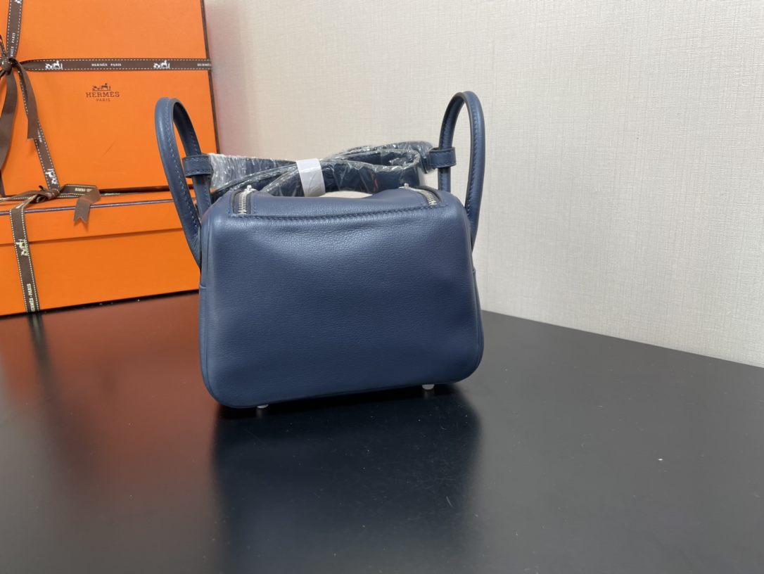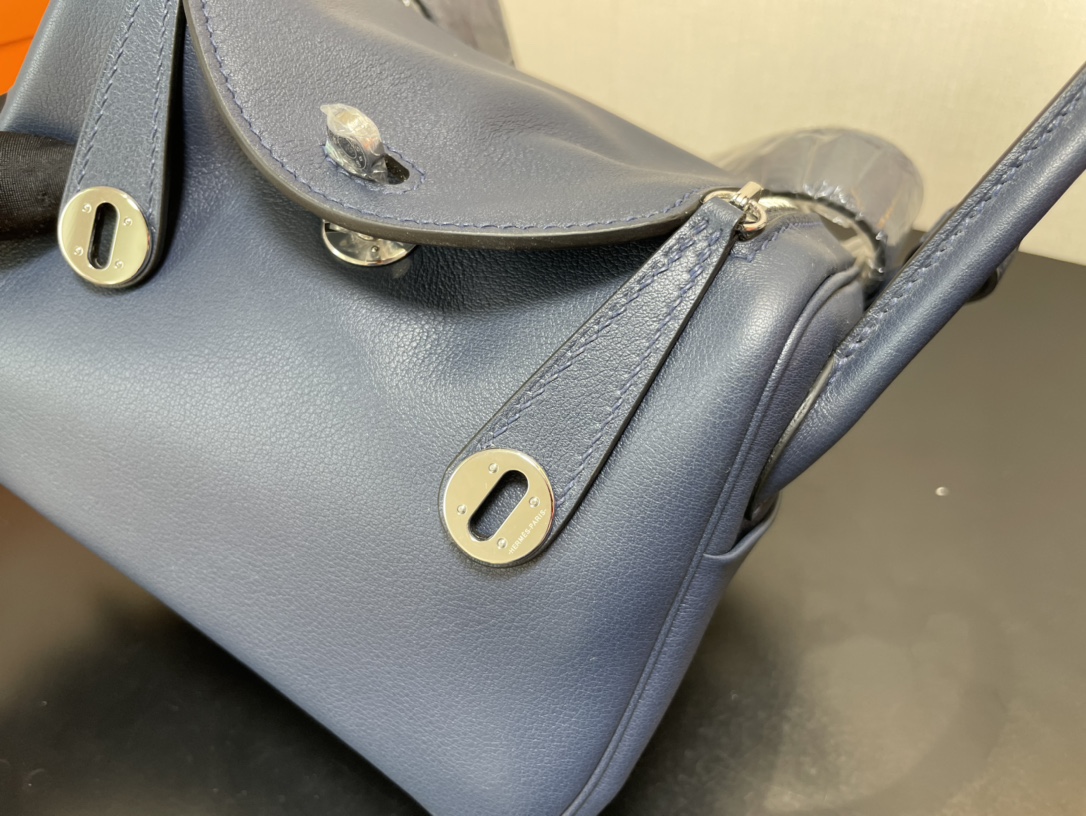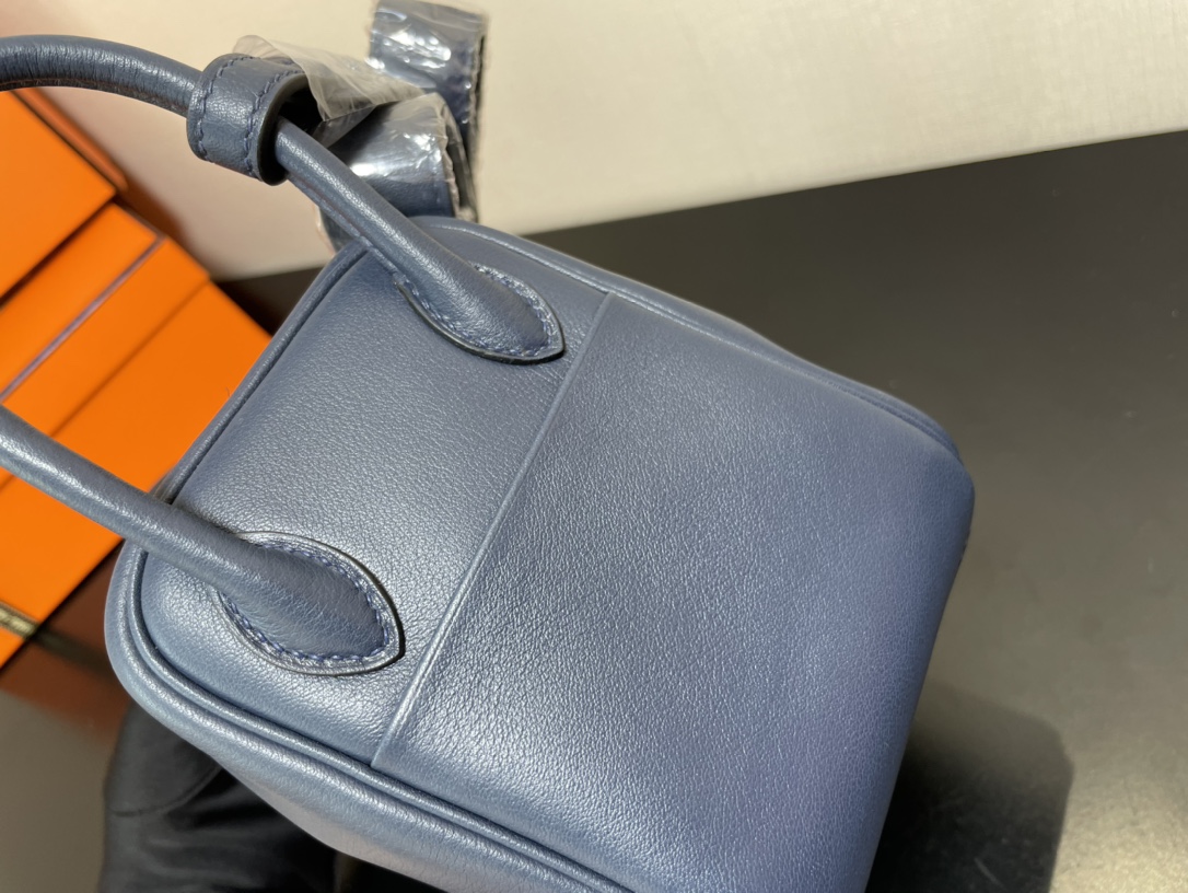 제품 이름: Lindy Mini 사이즈: 19*13*9cm 가죽 종류: Swift 색상: Bleu Saphir