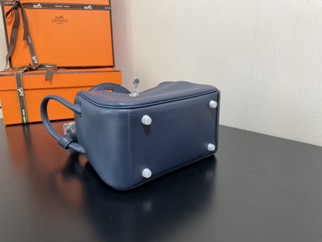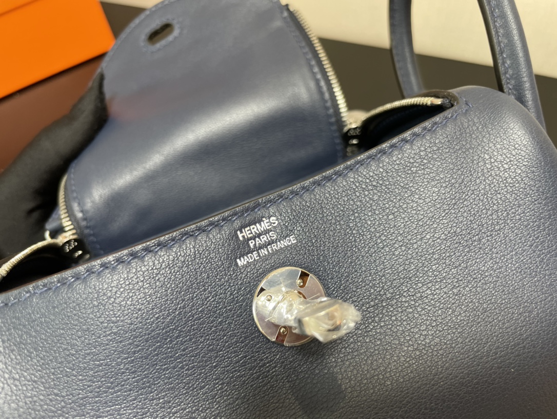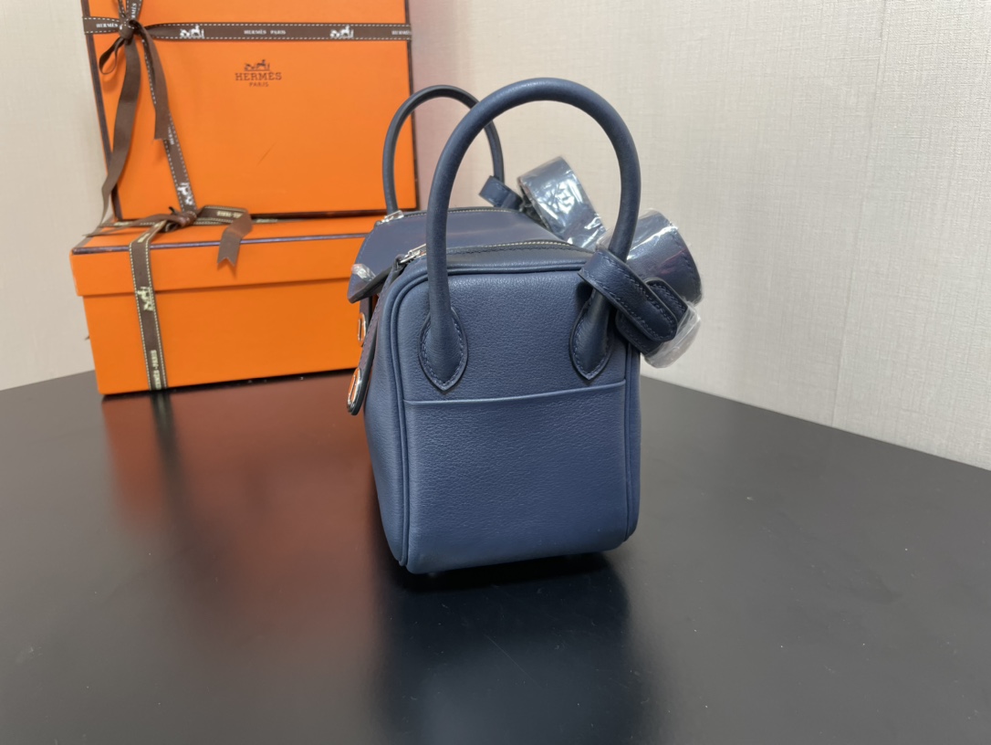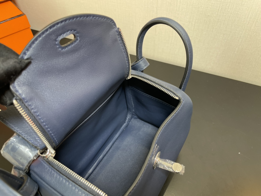 제품 이름: Lindy Mini 사이즈: 19*13*9cm 가죽 종류: Swift 색상: Bleu Saphir