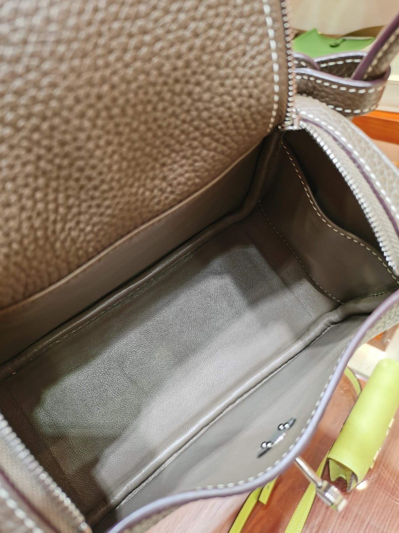 제품 이름: Lindy Mini 사이즈: 19*13*9cm 가죽 종류: Taurillon Clemence 색상: Etoupe