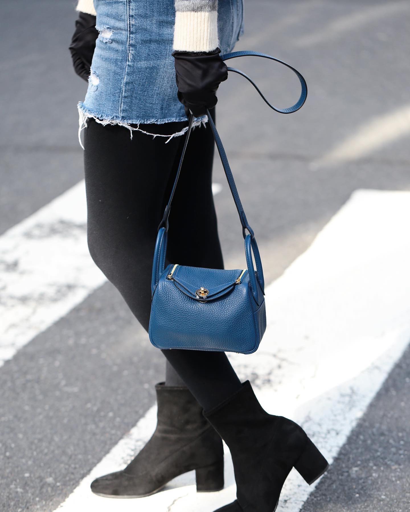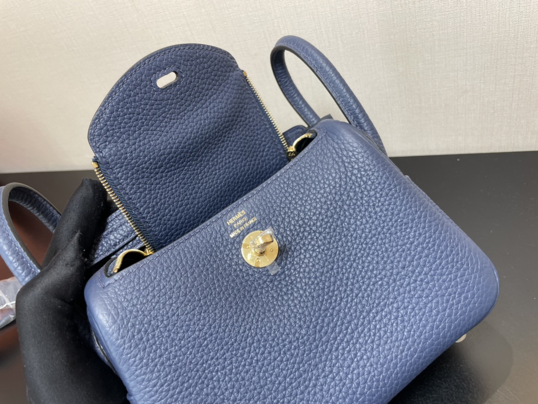 제품 이름: Lindy Mini 사이즈: 19*13*9cm 가죽 종류: Taurillon Clemence 색상: Bleu Saphir