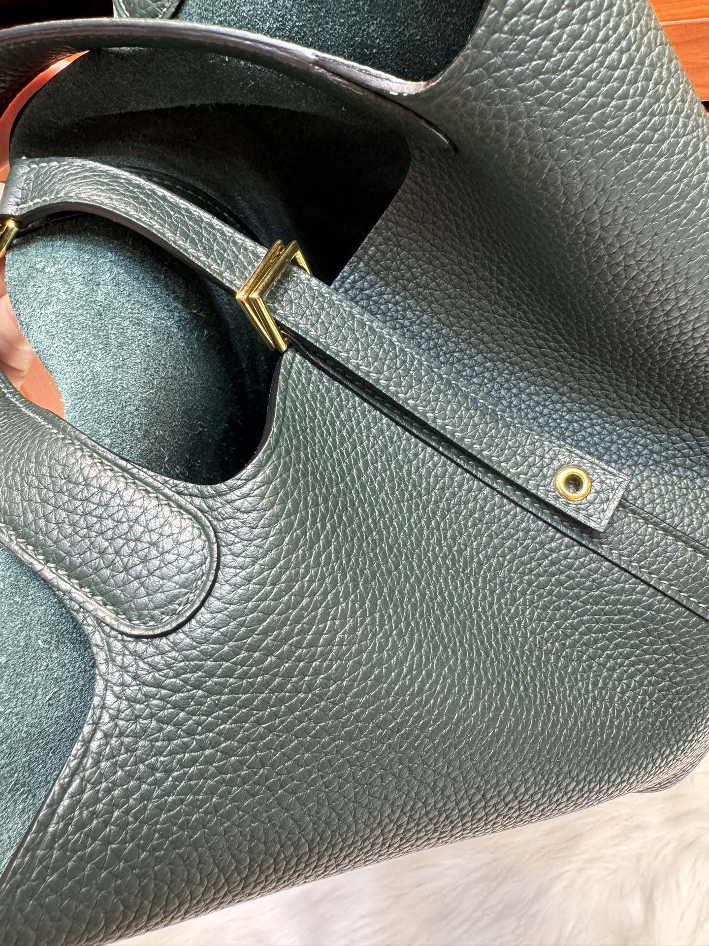 제품 이름: Picotin Lock 사이즈: 18*19*13 가죽 종류: Clemence 색상: Vert Fonce