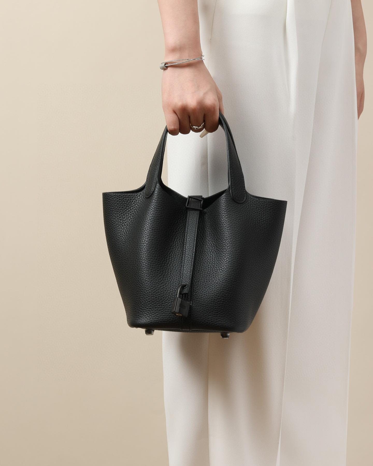 제품 이름: Picotin Lock 사이즈: 18*19*13 가죽 종류: Clemence 색상: Noir