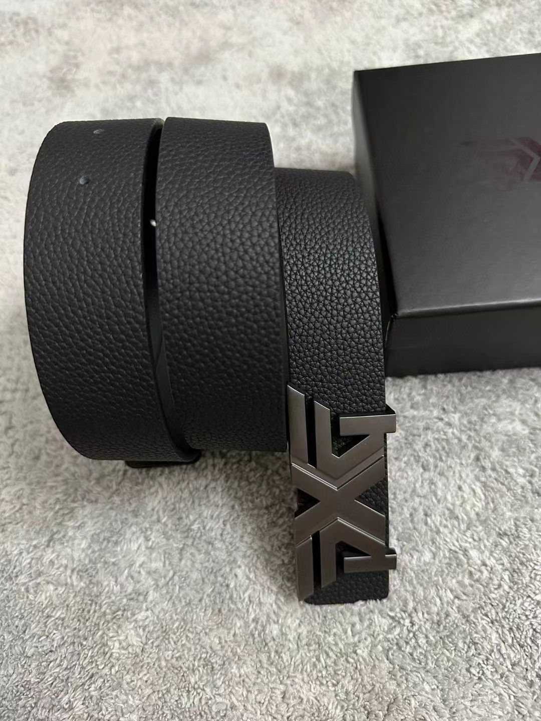 [PXG] 블랙 버클 로고 벨트 PGFPM870221