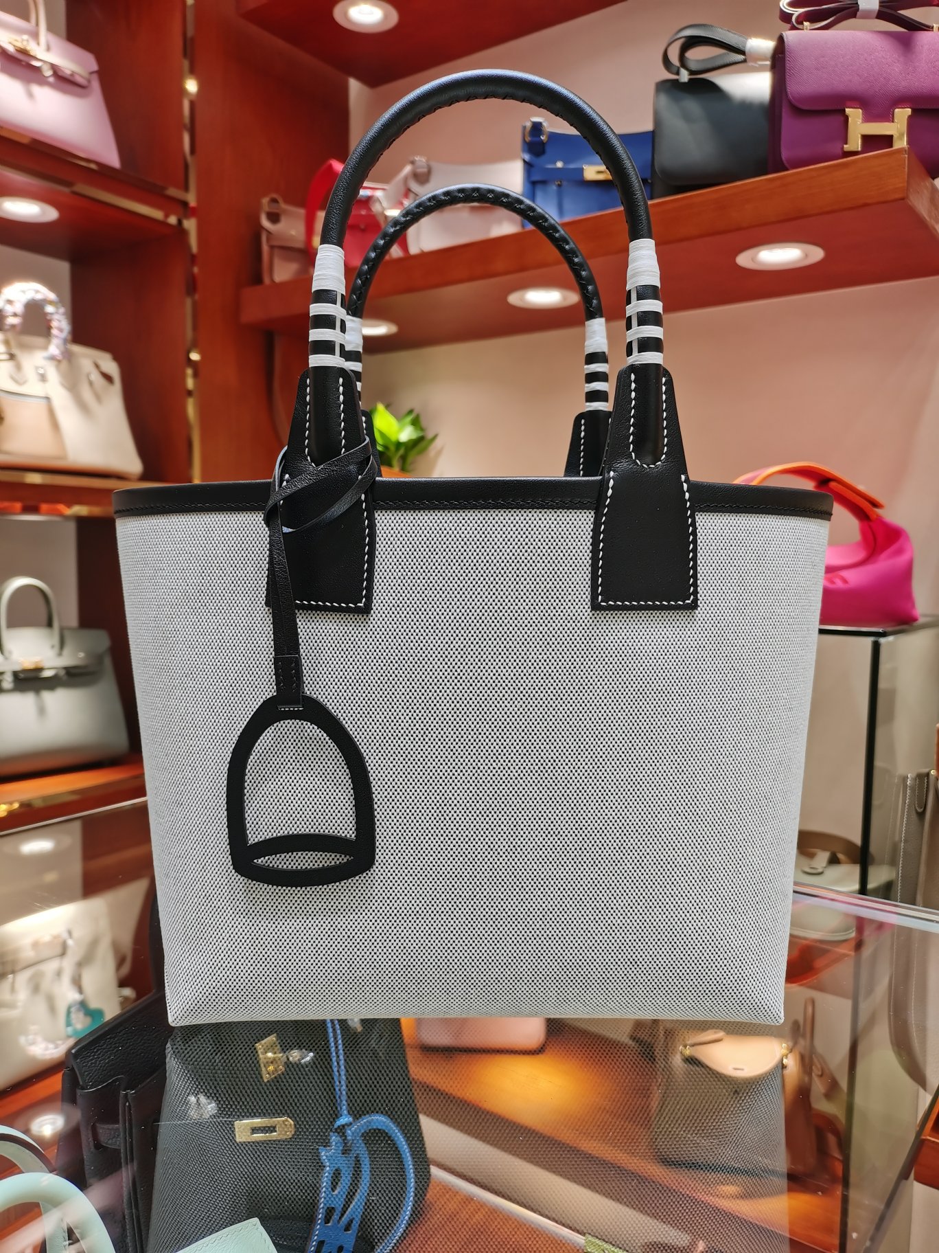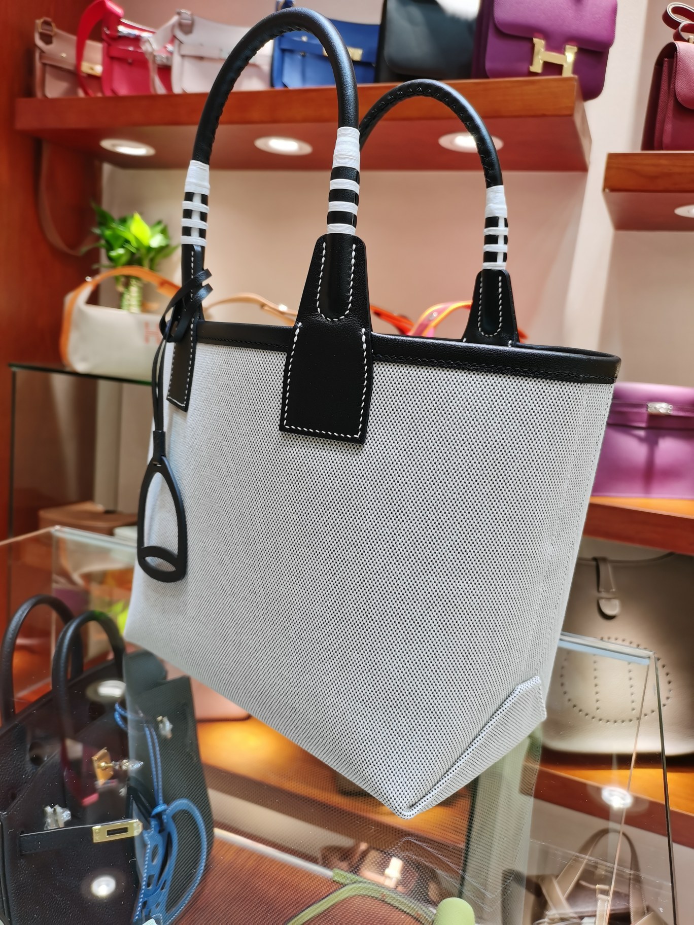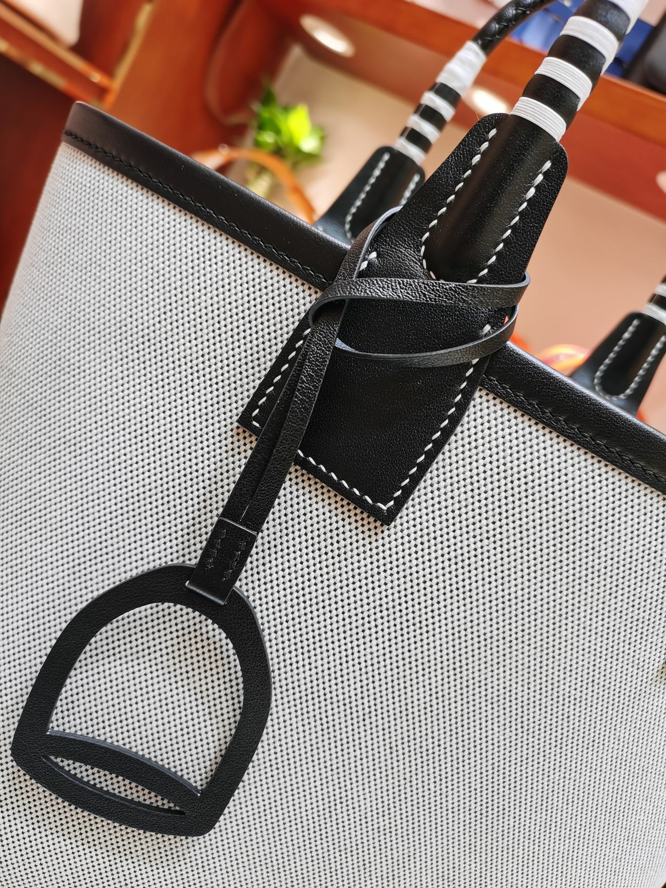 제품 이름: Picotin Lock 사이즈: 25*23*15 가죽 종류: Swift 색상: Ecru/Noir/Noir