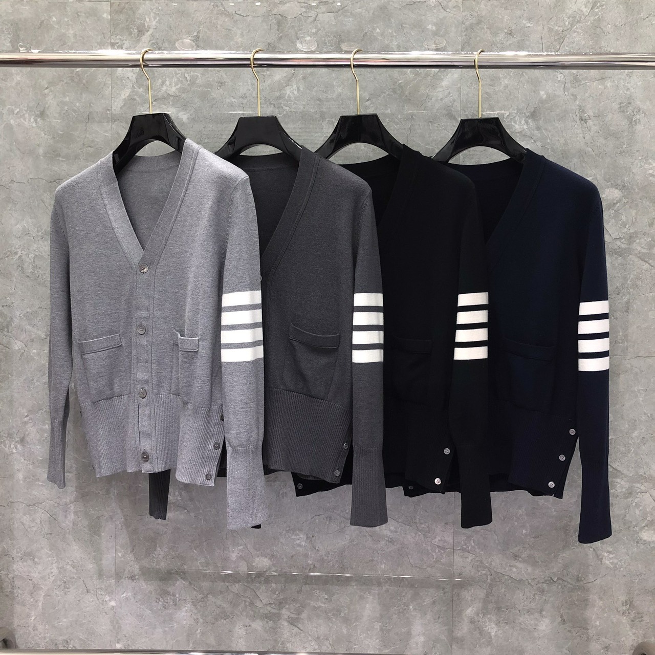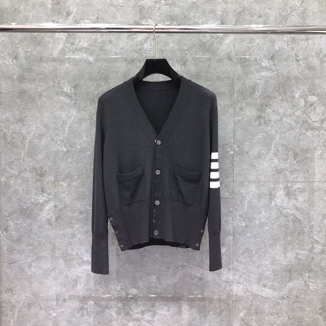 [톰브라운] 캐시미어 4선 숏 브이넥 가디건