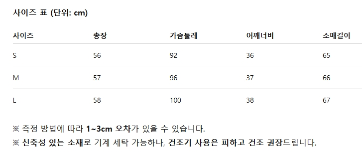 사이즈: 48 / 50 / 52 / 54 / 56